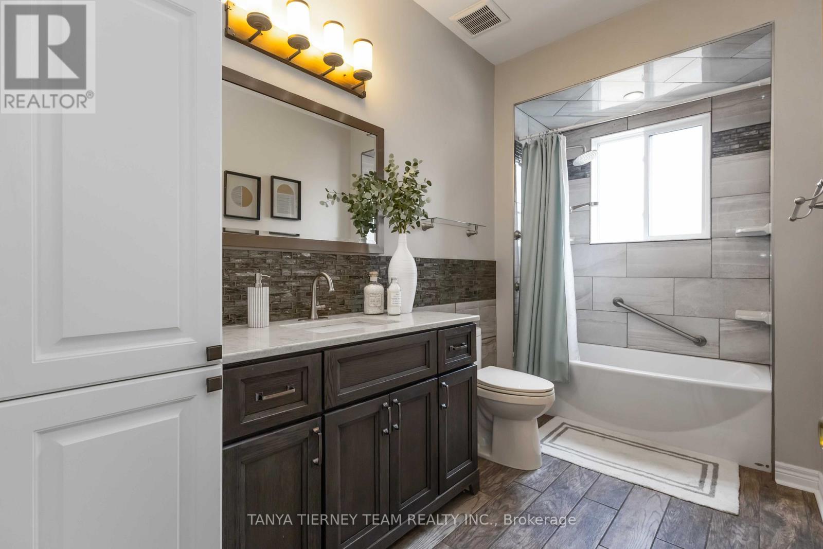 Welcome to 26 Wilshire Drive in the heart of Brooklin! This stunning 3+2 bedroom bungalow features a sun filled open concept main floor plan complete with 9ft ceilings, hardwood floors in the living room with gorgeous gas fireplace with custom mantle. Spacious formal dining room makes this home ideal for entertaining! Gourmet kitchen boasting quartz counters ('25), centre island with breakfast bar, backsplash, ceramic floors & spacious breakfast area with sliding glass walk-out to a private backyard with deck, gazebo, patio, garden shed & lush gardens! Convenient main floor laundry with garage access. Primary retreat featuring walk-in closet & renovated 4pc spa like ensuite with rainfall shower. Room to grow in the fully finished basement complete with 2 generous bedrooms, 4pc bath & huge rec room with pot lights & custom entertainment wall with electric fireplace! Situated in a demand community, steps to schools, parks, transits, downtown shops & easy hwy 407/418 access for commuters! (id:51158)