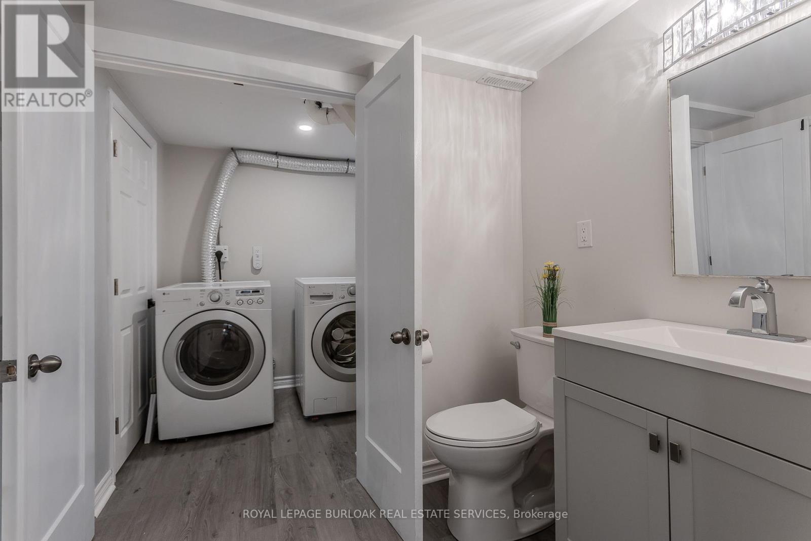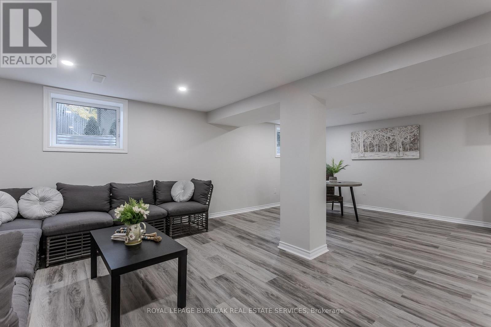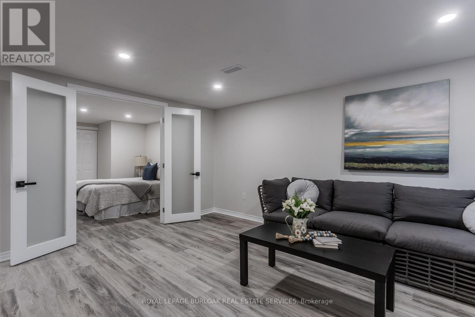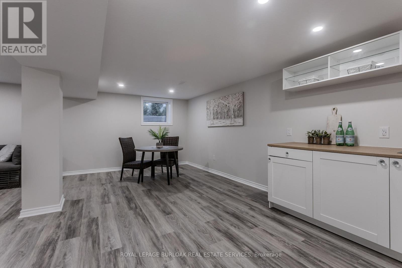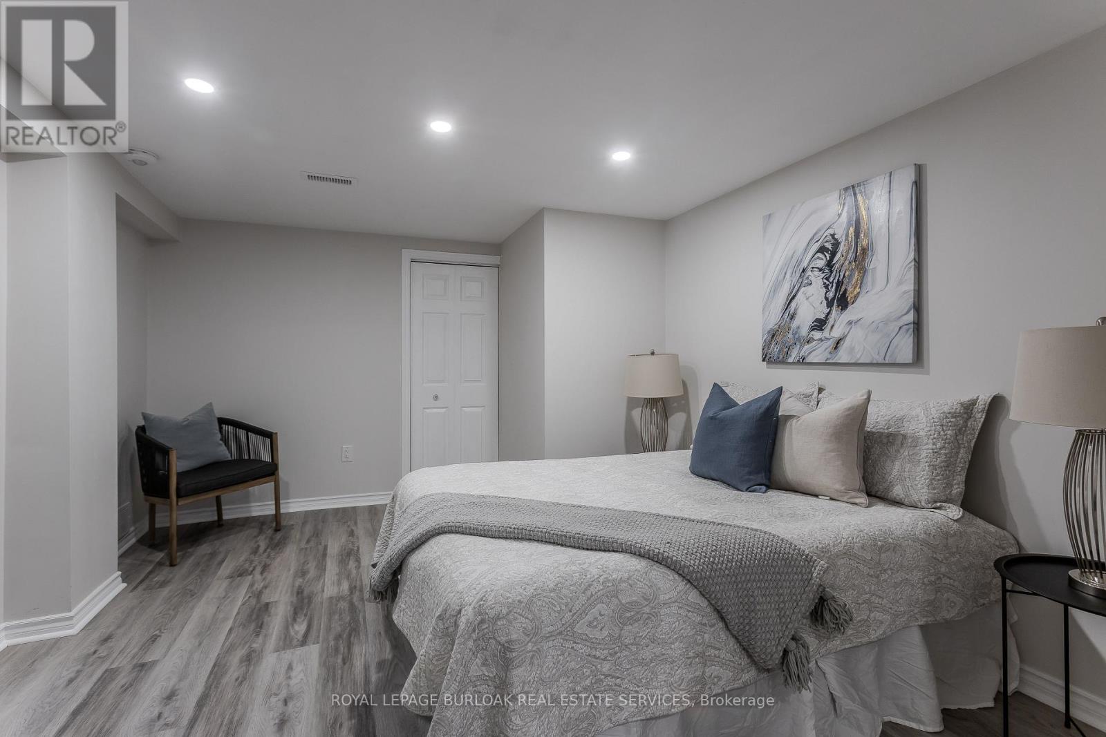 Welcome to this beautifully updated bungalow in one of Burlington's sought-after family-friendly neighbourhoods, just minutes from the lake, Burloak Waterfront Park, schools, and trails. Fresh curb appeal with coordinated professional painting of house and garage exterior (2025), smart app-controlled soffit lighting, a paved four-car driveway w/ no sidewalk, and a large 17' x 23' 1.5-car detached garage w/ new 50A panel (2025), hydraulic compressor system, loft storage, and excellent workshop/hobby potential. Inside, the home feels bright, modern, and move-in ready. The main level features new flooring and lighting (2025), a light-filled living and dining area, and an updated kitchen w/ stainless steel appliances and timeless tile backsplash. The spacious primary bedroom offers extensive closet space and ensuite privilege to the refreshed 4pc bath, w/ a second bedroom completing this level. The fully finished lower level (2024/2025) is ideal for multi-generational living, guests, or teens, w/ separate ground-level rear entrance, soundproofed ceilings, all new wiring, three wired smoke detectors, generous recreation space, new full-size egress windows, a wet bar that can be upgraded to a full kitchen, 3pc bath w/ walk-in shower, guest suite, laundry, and storage. Extensive upgrades provide comfort and peace of mind: full exterior foundation waterproofing w/ Delta membrane, 75% interior waterproofing tied to the sump pump, transferable 25-year waterproofing warranty, upgraded attic insulation to R60, and a new energy-efficient heat pump HVAC system. Outside, enjoy the large fully fenced 80' x 100' lot, mature trees, shed, and newly renovated tiered wood deck (2025). A beautifully updated home that blends style, comfort, and flexibility in a prime Burlington location. (id:51158)