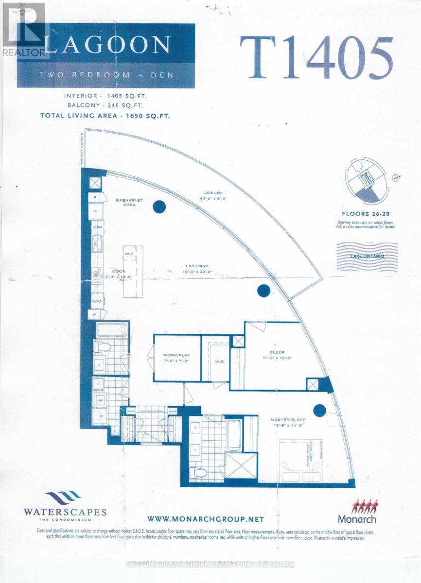 $1,285.14 MonthlyLocated at Toronto's prestigious Humber Bay Shores waterfront community!This suite offers a massive 1,650 Sq.ft. of living space (1405 interior + 245 exterior) This large 2 bedroom plus den features Unobstructed Panoramic 180 Degree views of the Lake, parks, the city and downtown. Featuring a Full size kitchen, full size ensuite laundry room, an extra large locker and plenty of closet space, you wont have any trouble fitting in here. Convenient parking spot close to the elevator and prepped to instal an EV charger. Wake up and watch the sun rise from your huge 245 sq.ft wrap around balcony with 3 seperate walkouts! (id:51158)