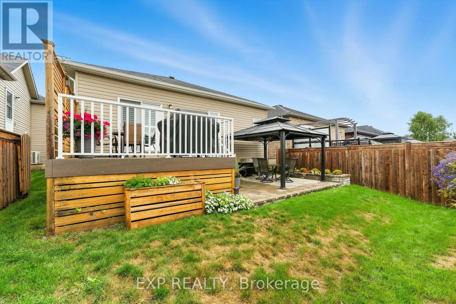Absolutely stunning bungalow built brand new in 2018 with eye catching features both inside and out, located in the very sought after East end of Ontario's Feel Good Town and newly constructed East Village Neighborhood Development. Aesthetically pleasing with an abundance of curb appeal, this amazingly landscaped 3-bedroom, 2-bathroom home with ample upgrades and allure will keep you coming back for more. The open concept main floor with 9' ceilings and premium flooring package is highlighted with an upgraded kitchen featuring custom cabinetry and granite counters that overlooks the beautifully designed living and dining spaces. Walkthrough the garden doors to the breathtaking backyard space complete with newly installed composite deck, interlocking stone, exquisite landscaping and private gazebo space; perfect for entertaining or enjoying some well-deserved rest and relaxation. Not to be forgotten and quite possibly the X factor in this listing, is the upgraded finished lower level. Complete with large family space, big and bright 3rd bedroom with egress window, 4-piece bathroom, multiple storage options and your very own in-house workshop/bench! Wonderfully positioned to be moments away from Cobourg's wonderful beach, downtown core, marina, boardwalks, schools, parks, shopping, Lake Ontario and so much more!! (id:51158)