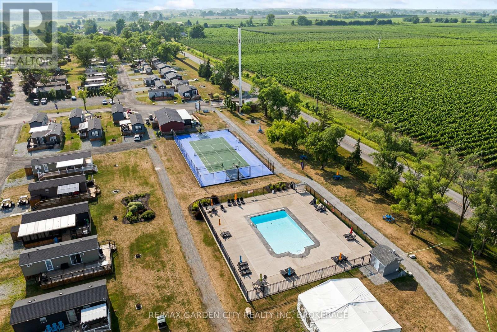 Location, Location, Location! Welcome to your perfect seasonal escape or income-generating investment opportunity the "Breckenridge Finlife Ridge Mobile Home" is situated on a premium lot, located at Vineridge Resort in beautiful Niagara-on-the-Lake. This fully furnished 2-bedroom, 1- bath resort cottage offers 545 sq. ft. of indoor living space plus a massive 545 sq. ft. covered patio, ideal for entertaining, relaxing, or al fresco dining. Enjoy a rare private lot backing onto a tranquil vineyard with breathtaking sunset views, a peaceful retreat all just minutes from the QEW. The open-concept layout features a well-equipped kitchen, cozy living/dining area, and a 4-piece bathroom, all ready for your family to move in or guests to enjoy. The extended outdoor space includes a full cooking area, dining area, lounge area to kick your feet up. In the yard, a bonus, a fire pit to enjoy on cozy summer evenings. Top it off with a storage shed, and parking for two vehicles. Whether you are hosting family, enjoying a weekend getaway, or renting for income, the possibilities are endless. Resort amenities include a heated in ground pool, splash pad, multi-sport areas; tennis/pickleball/basketball courts, playgrounds, picnic zones, kids Club, scenic walking/biking trails, laundry facilities, EV charging, and available golf cart rentals. Land Leased; Season runs May 1st to Oct 31st. Maintenance fees cover hydro, water, and full access to all resort features. Do not miss this opportunity to own a slice of seasonal paradise in one of Ontario's most desirable vacation destinations, wine country! Visit My Website for further information about this Listing! (id:51158)