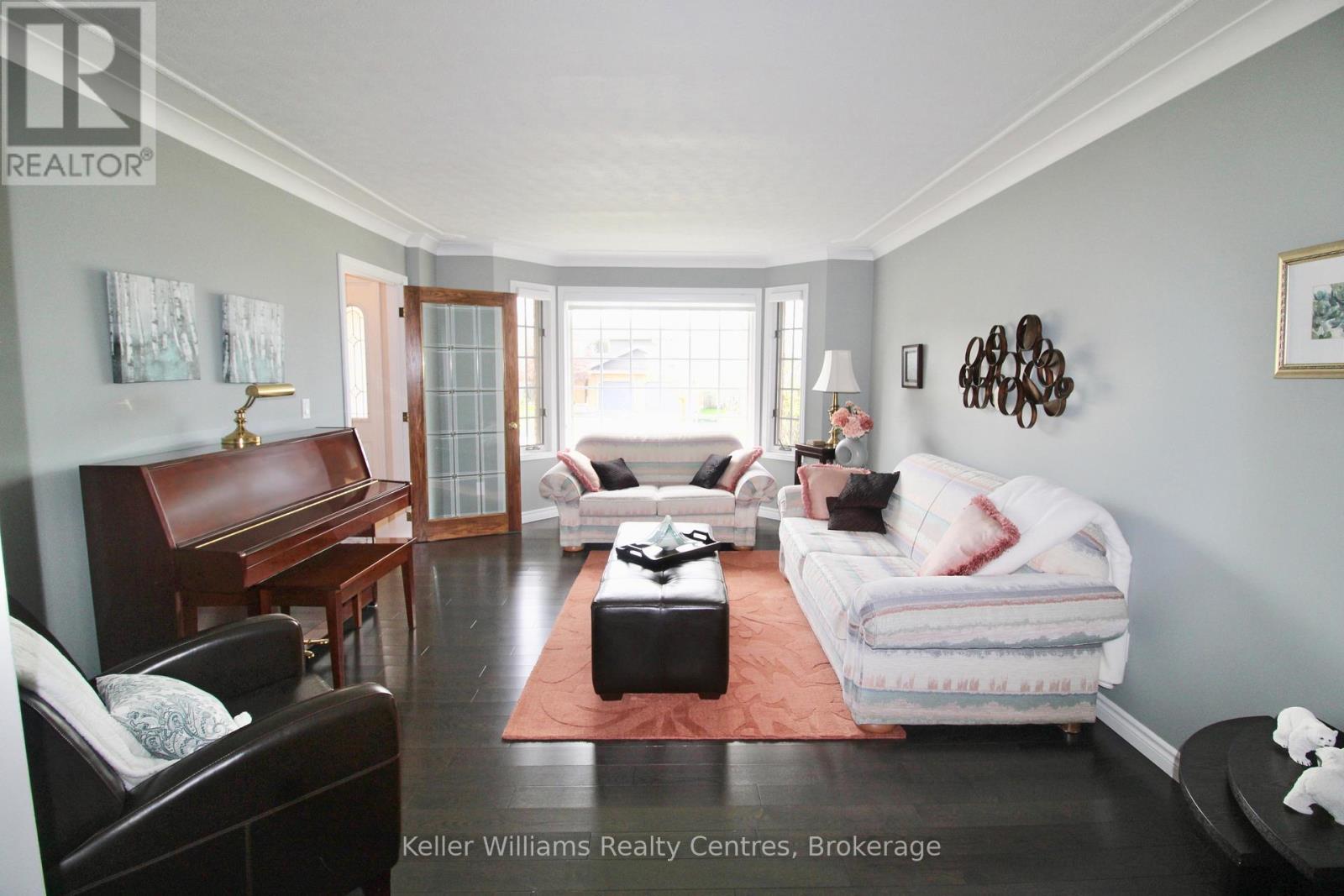 Custom built and meticulously cared for by its original owners, this 2 storey home is sure to impress. Located in one of Hanovers most desired subdivisions at the edge of town, just steps away from the walking trail along the saugeen river. As you enter through the front door you'll notice the 2 level foyer and so much natural light coming into the home. There have been many updates throughout including hardwood floors, stone countertops, and an updated kitchen with beautiful white cabinets and stainless steel appliances included. Enjoy walkouts to your back deck from both the eat-in kitchen and the living room which also offers a gas fireplace. The formal dining room is adjacent to your kitchen and connects to the family room, a great layout for hosting company. Also on the main level is a powder room, and laundry/mudroom which provides access to the 2 car garage. Heading upstairs you'll find 4 bedrooms, including the spacious primary bedroom with bay window, walk-in closet, and an ensuite with standalone shower and tub with tiled surround. A 4pc bath supports the remaining bedrooms, and down the hall you'll find another great room which would make a perfect office, hobby room, or a 5th bedroom. The full basement is currently unfinished but offers the potential should you desire more space, with a rough in present for an additional bathroom. On sunny days you'll be sure to enjoy your back yard, lined with fencing, gardens and mature trees. Come see this home for yourself! (id:51158)