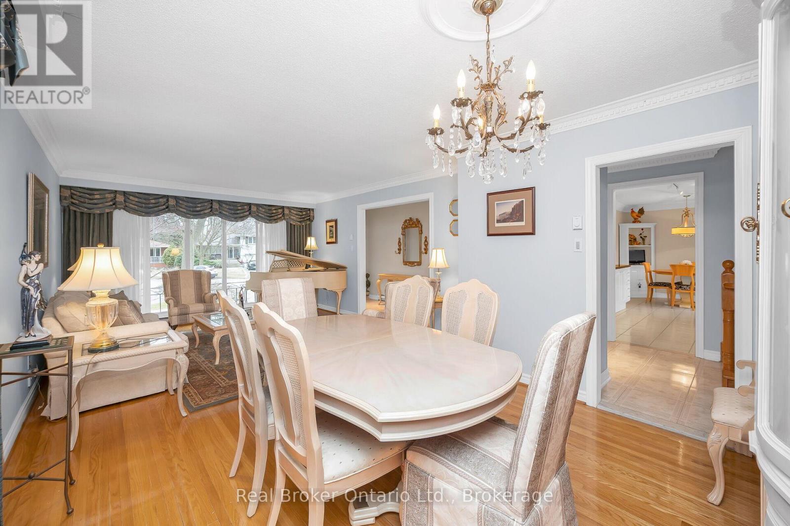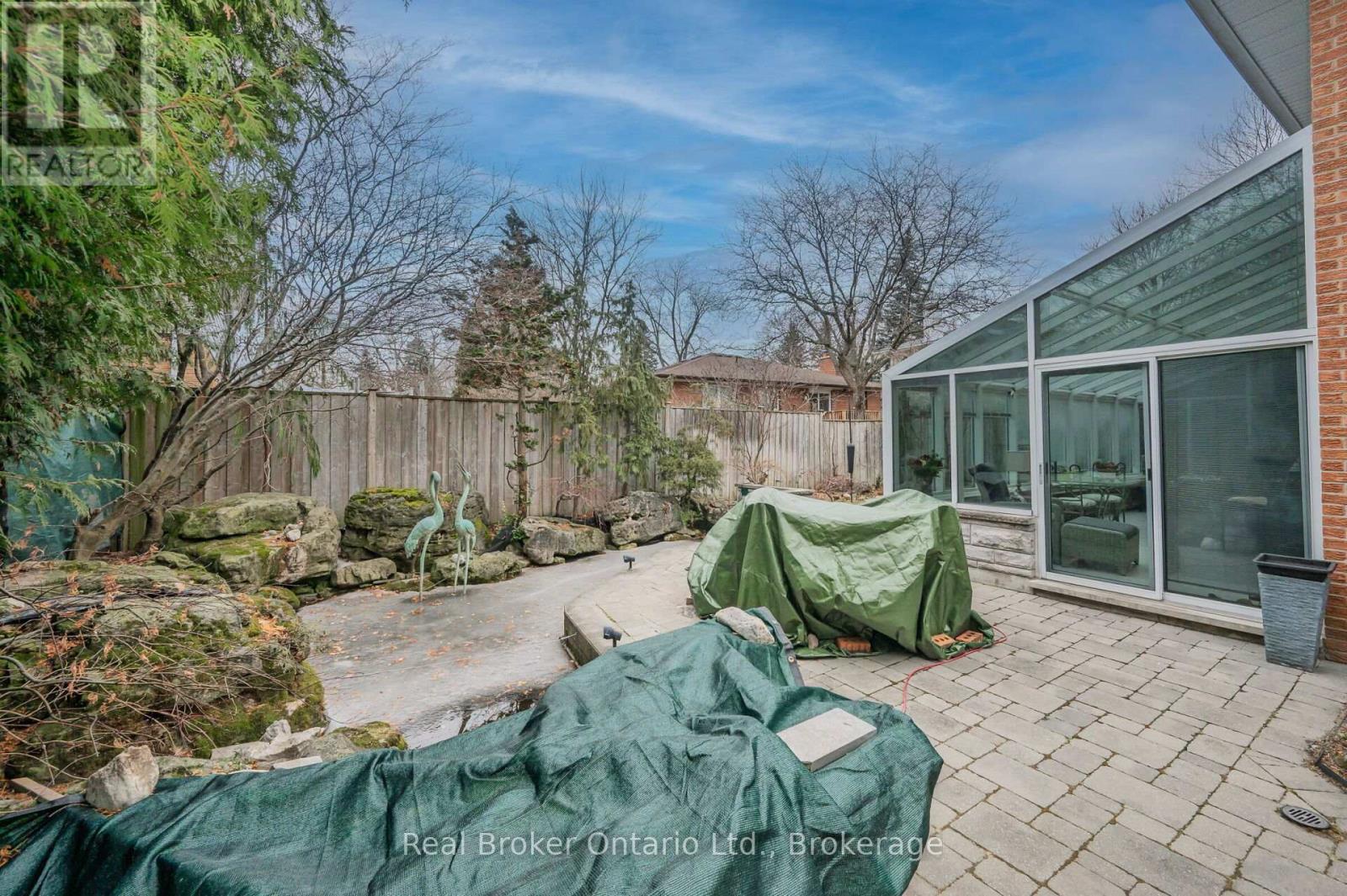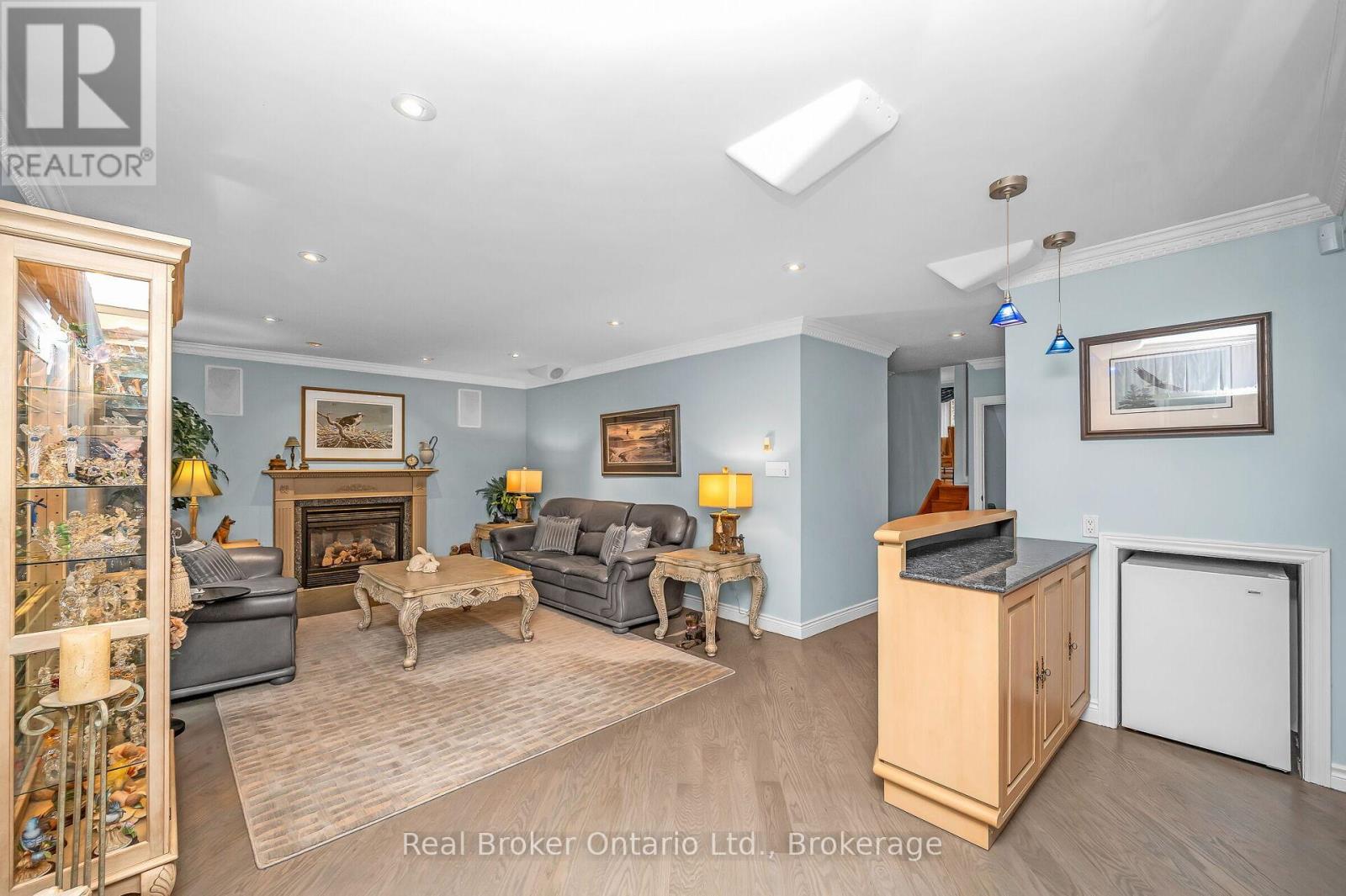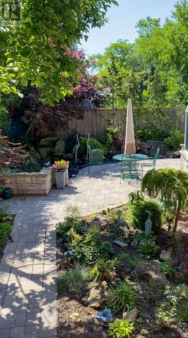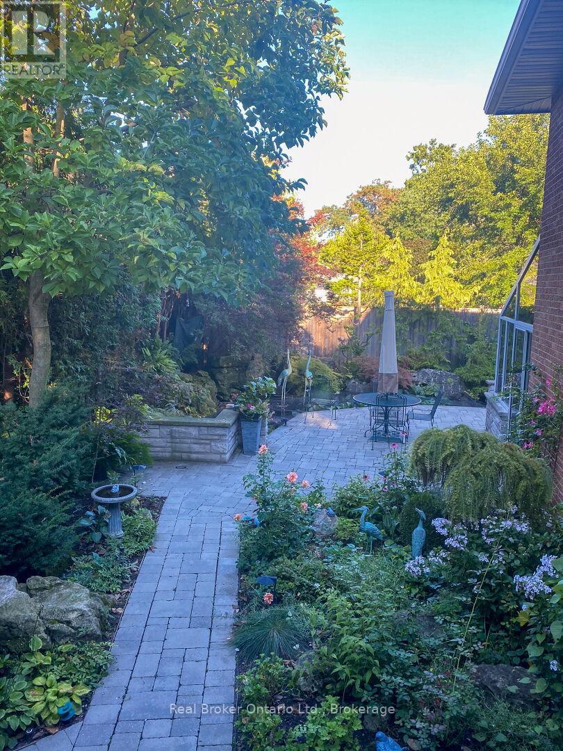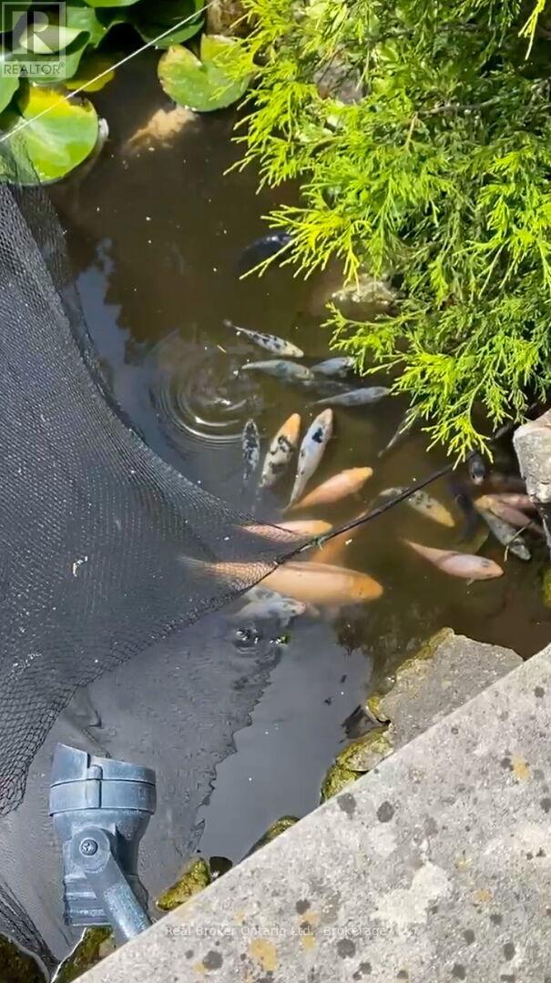Beautifully maintained 4-level backsplit, 4-bed, 3-bath home on a deep, private lot in sought-after Mineola. Excellent curb appeal with double-car garage, double driveway, and rare 4-car garage parking with two car lifts. The main floor offers a spacious foyer, bright living room with bay window, and formal dining room. The kitchen features granite countertops, Sub-Zero fridge, JennAir downdraft range, Miele dishwasher, and custom cabinetry for exceptional storage. Inside entry from the garage and side door access add convenience. Crown molding throughout adds a refined finish. An oak and maple staircase leads to the upper level. The upper level includes 3 generous bedrooms and a 4-pc bath with jacuzzi tub. The lower level offers a large office or additional bedroom with custom built-ins, a 2-pc powder room, and a spacious family room with bar, gas fireplace, surround sound, and custom cabinetry. A UV-protected glass solarium with dual-pane glass and heat pump with A/C (2025) overlooks the private backyard. The outdoor retreat features interlock patio and driveway, stone porch and steps, landscape lighting, irrigation, and a stunning 2,500-gallon stainless steel koi pond with waterfalls, lighting, remote controls, UV filtration (2025), and mature Japanese koi. The finished basement includes a large rec room or additional bedroom, laundry with custom cabinetry and Miele washer/dryer, a 3-piece bath with walk-in glass shower, cold cellar, and crawl space storage. Home is equipped with a security system. Close to parks, schools, MiWay transit, Port Credit GO Station, amenities, and Hwy 401 & 403. (id:51158)