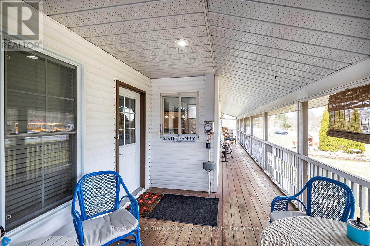 This immaculately upgraded bungalow offers over 2,000 sq ft of beautifully finished living space, blending comfort, style, and functionality. With 4 bedrooms (2+2) and 2 modern bathrooms, the home is perfect for families and entertainers alike. The spacious open-concept layout is highlighted by a fully renovated kitchen featuring a large breakfast bar with seating for four, skylights, and a bright eat-in dining area. A standout feature is the screened-in front veranda (52 x 8.4), ideal for enjoying morning coffee or unwinding in the evenings. The main floor also includes convenient laundry, updated laminate flooring in the living room, and a freshly renovated bathroom. Downstairs, the finished basement provides incredible versatility with a generous rec room, cozy gas fireplace, new vinyl flooring, and a private walk-up entrance offering great potential for an in-law suite. Updates include newer A/C (2020), septic pump (2017), window wells, and remodeled basement bathroom and flooring (2022). Outside, enjoy your own backyard oasis with a covered rear veranda (10 x 27), heated saltwater above-ground pool, and a brand-new solarium, perfect for year-round relaxation. This exceptional home offers thoughtful upgrades, generous space, and a peaceful setting; truly a must-see! (id:51158)