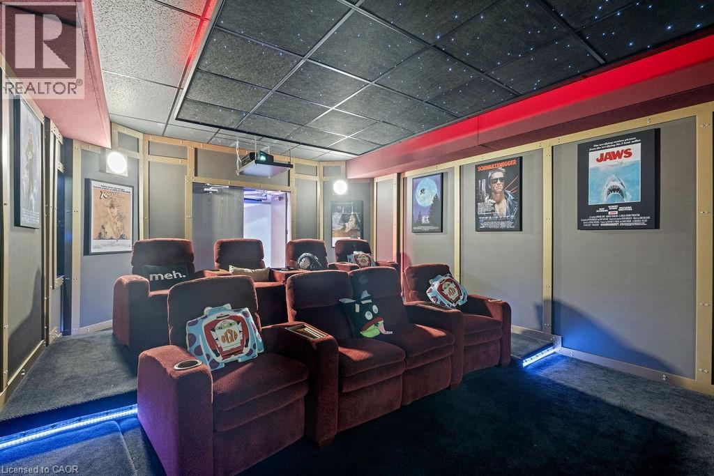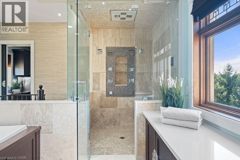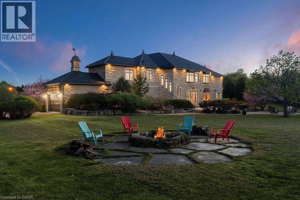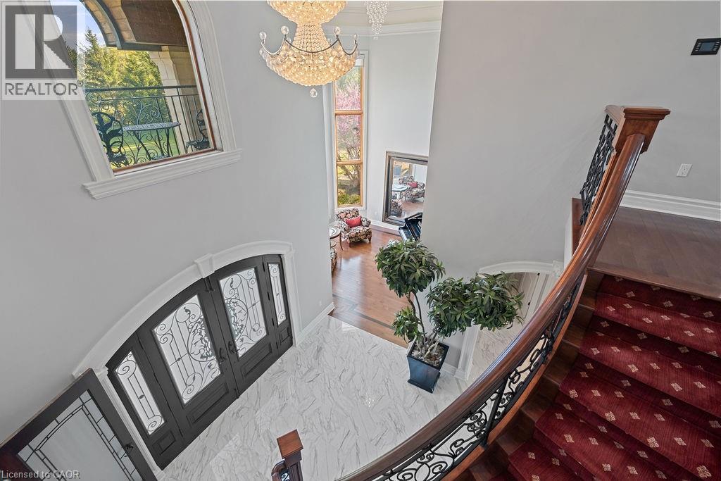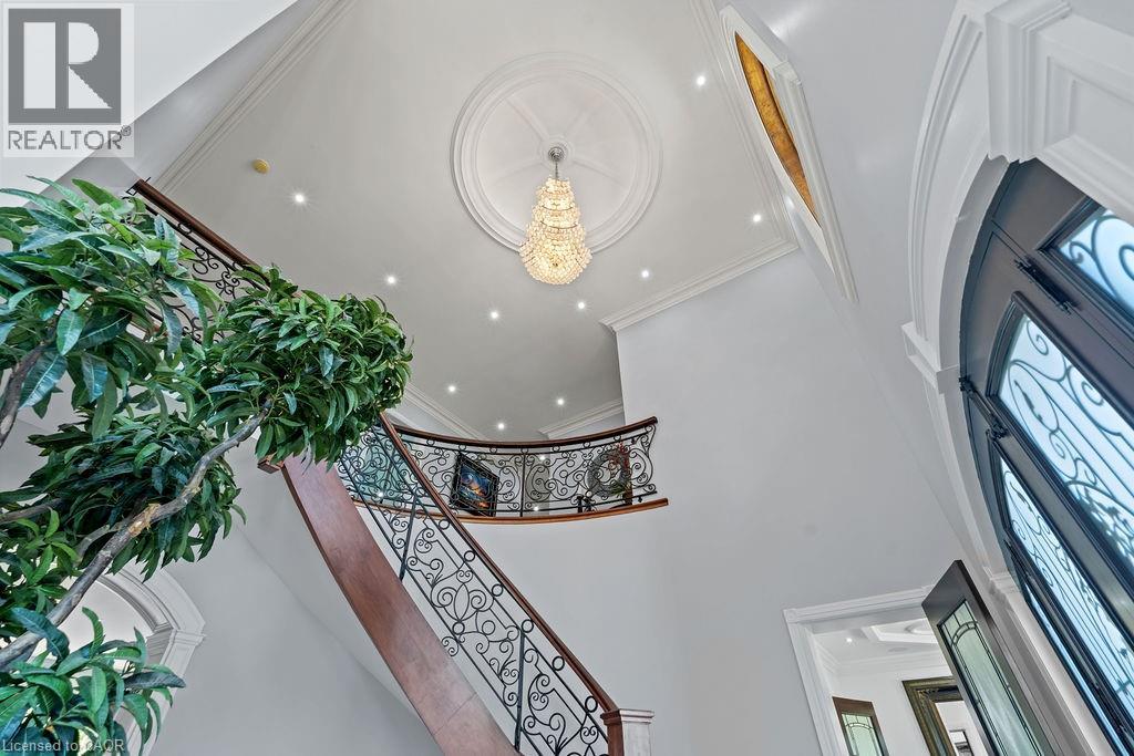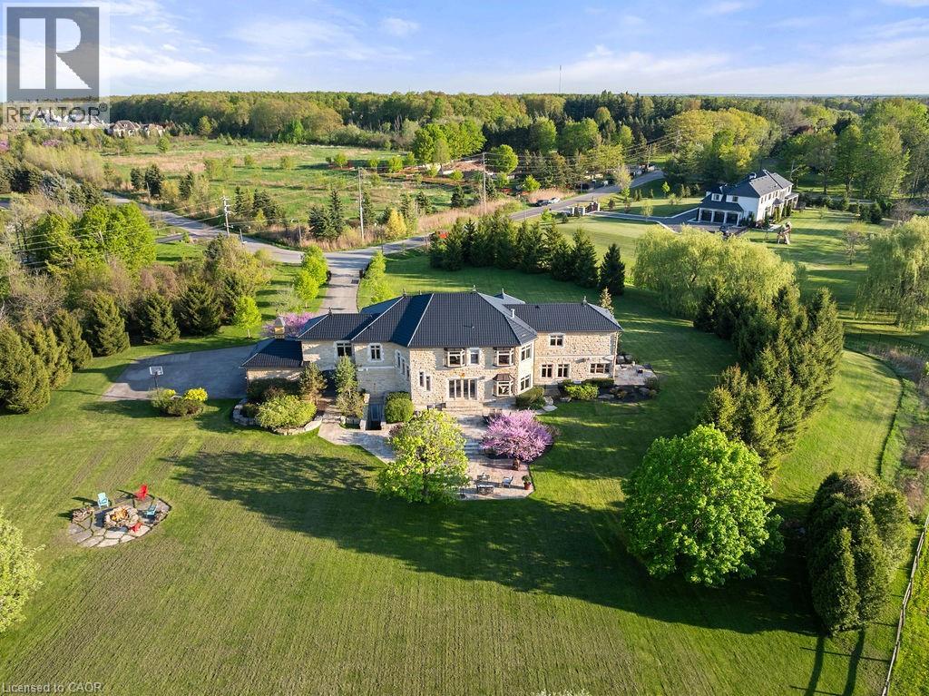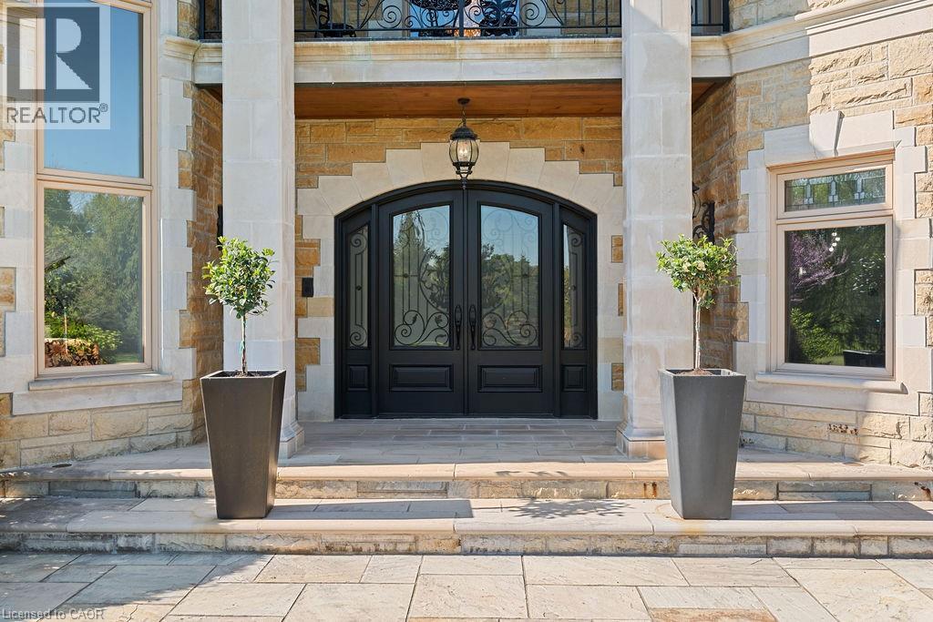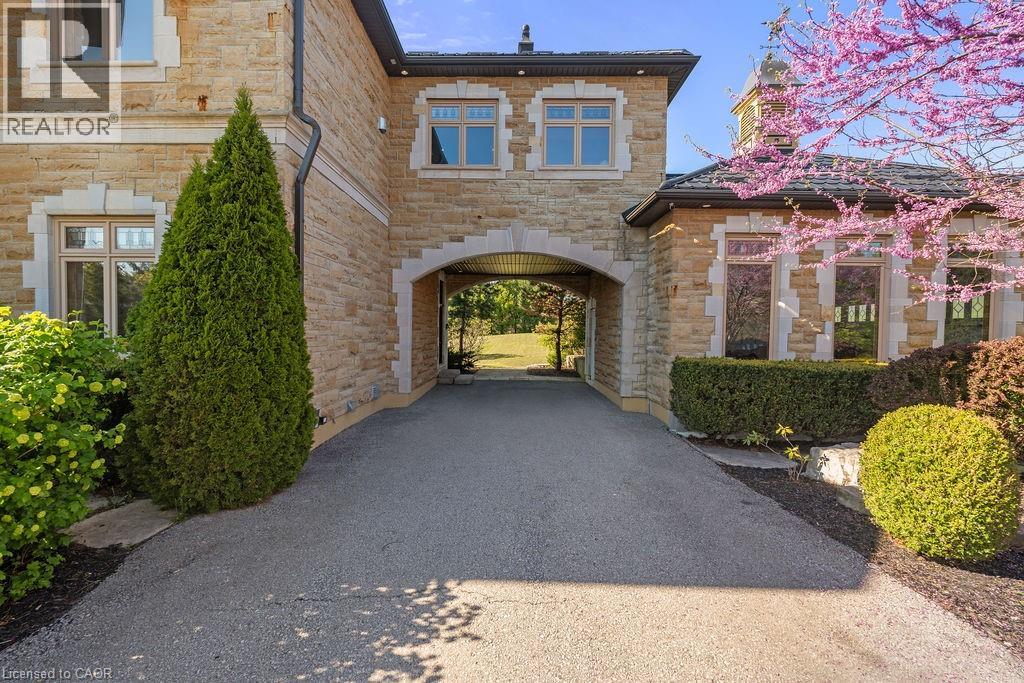 Experience Elevated Living at this Spectacular North Burlington Masterpiece in an Exclusive Enclave of Prestigious Estates. Set on a serene 2.5-acre lot, this luxurious home offers approx. 8,700 SF of exquisitely finished living space, where sophistication meets comfort and innovation. Designed for discerning buyers, this 4-bedroom, 7-bathroom residence delivers the ultimate lifestyle. Gourmet custom kitchen by Gravelle, with extensive solid wood cabinetry, granite counters, hidden doors to large pantry and high-end SS appliances. The walk-out basement is a next-level entertainment hub with Star Wars Sci-Fi theme. Featuring a cutting-edge games room, a dedicated home theatre with immersive 7.1 Dolby surround sound, 12' screen and starlight ceiling. Including flexible space that could easily serve as a 5th bedroom, complete with generous storage. Step outside to a peaceful retreat—gather around the stone fire pit or take a scenic stroll along the nearby Bruce Trail. Despite the private, nature-filled setting, you're only minutes from the schools and amenities of Burlington, blending secluded luxury with urban convenience. This remarkable home defines upscale living. Whether you're hosting grand celebrations or enjoying quiet moments, this is where modern luxury meets timeless tranquillity Please click on the more information link for all luxury features and all inclusions and click on more photos for floorplans. 10+++ (id:51158)