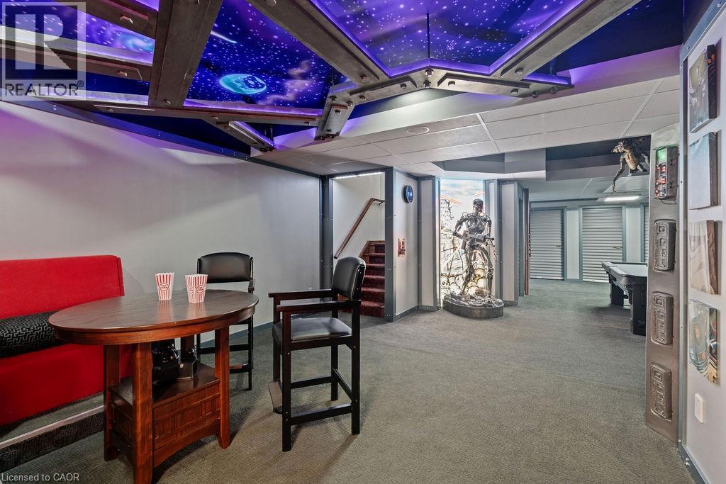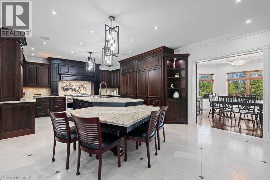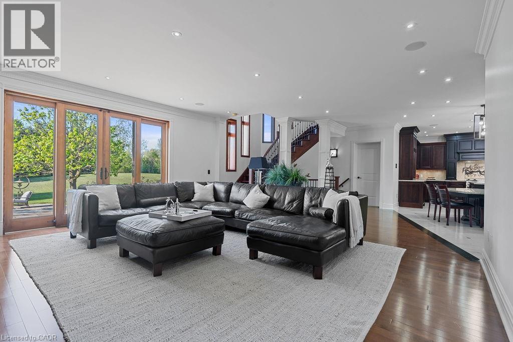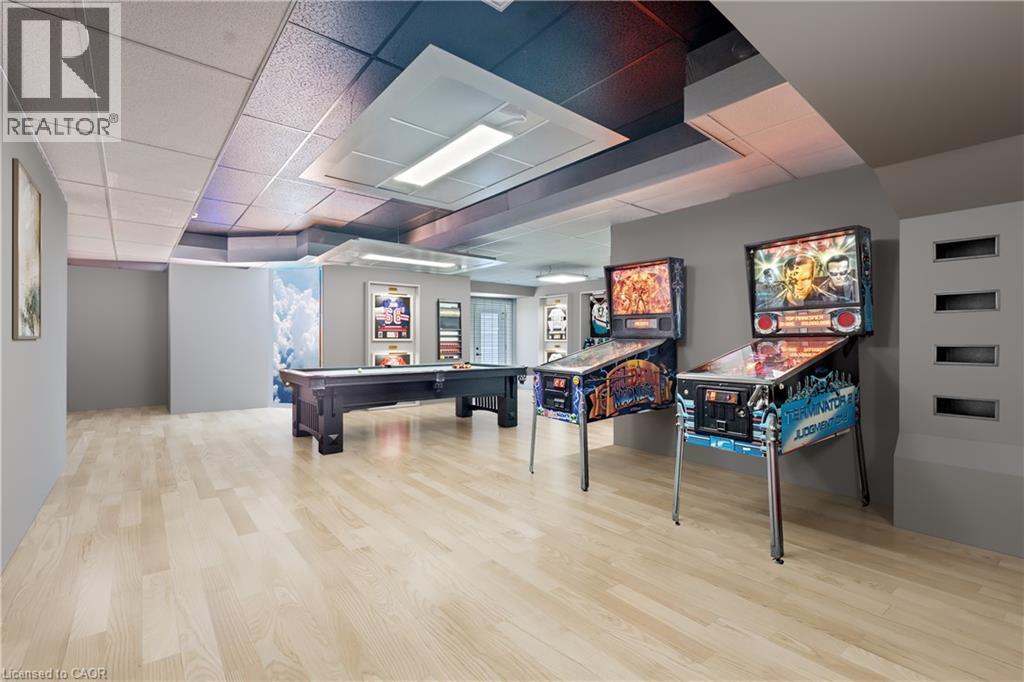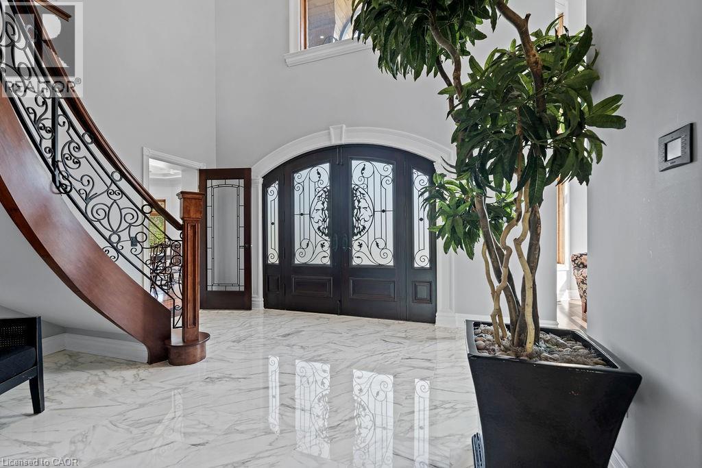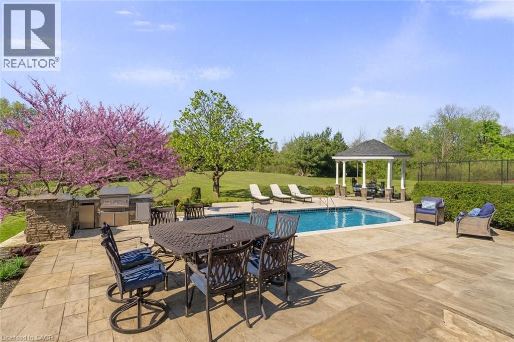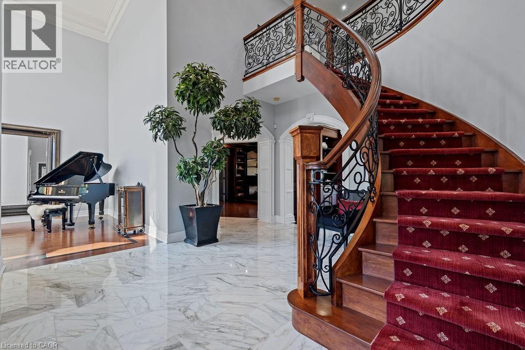 Experience Elevated Living at this Spectacular North Burlington Masterpiece in an Exclusive Enclave of Prestigious Estates. Set on a serene 2.5-acre lot, this luxurious home offers approx. 8,700 SF of exquisitely finished living space, where sophistication meets comfort and innovation. Designed for discerning buyers, this 4-bedroom, 7-bathroom residence delivers the ultimate lifestyle. Gourmet custom kitchen by Gravelle, with extensive solid wood cabinetry, granite counters, hidden doors to large pantry and high-end SS appliances. The walk-out basement is a next-level entertainment hub with Star Wars Sci-Fi theme. Featuring a cutting-edge games room, a dedicated home theatre with immersive 7.1 Dolby surround sound, 12' screen and starlight ceiling. Including flexible space that could easily serve as a 5th bedroom, complete with generous storage. Step outside to a peaceful retreat—gather around the stone fire pit or take a scenic stroll along the nearby Bruce Trail. Despite the private, nature-filled setting, you're only minutes from the schools and amenities of Burlington, blending secluded luxury with urban convenience. This remarkable home defines upscale living. Whether you're hosting grand celebrations or enjoying quiet moments, this is where modern luxury meets timeless tranquillity Please click on the more information link for all luxury features and all inclusions and click on more photos for floorplans. 10+++ (id:51158)