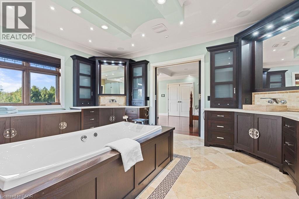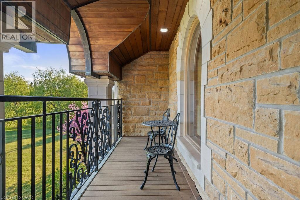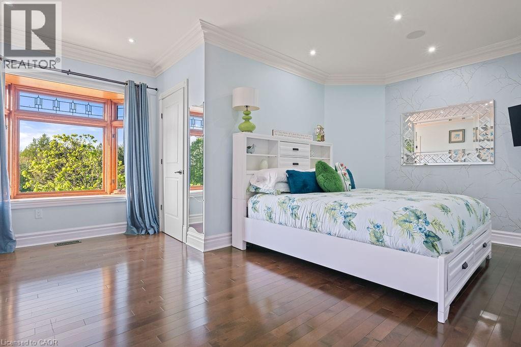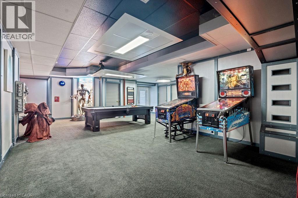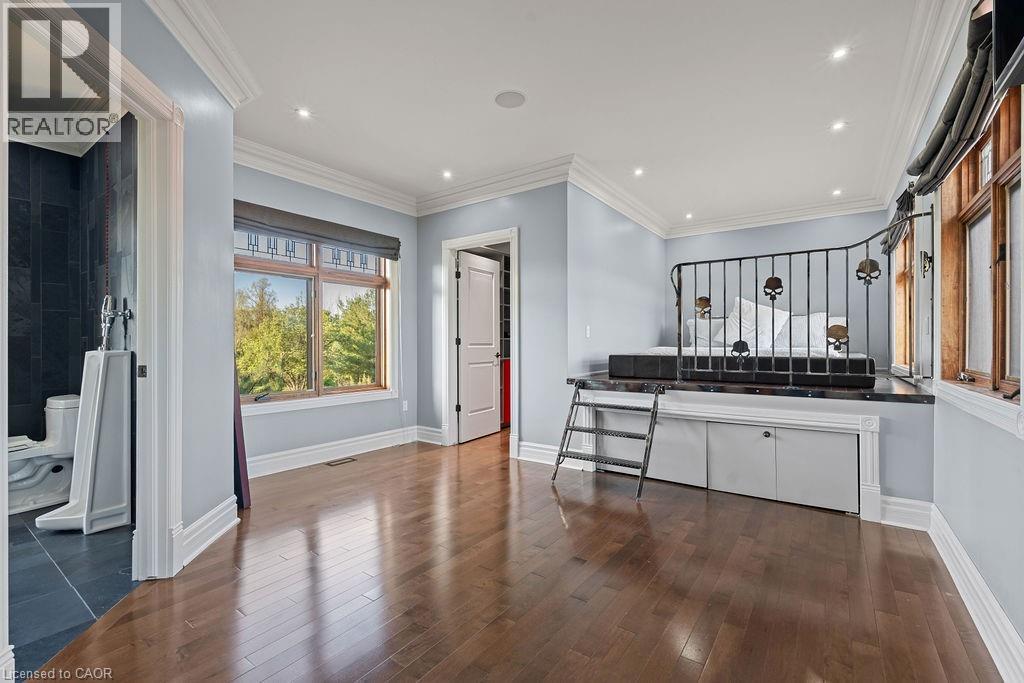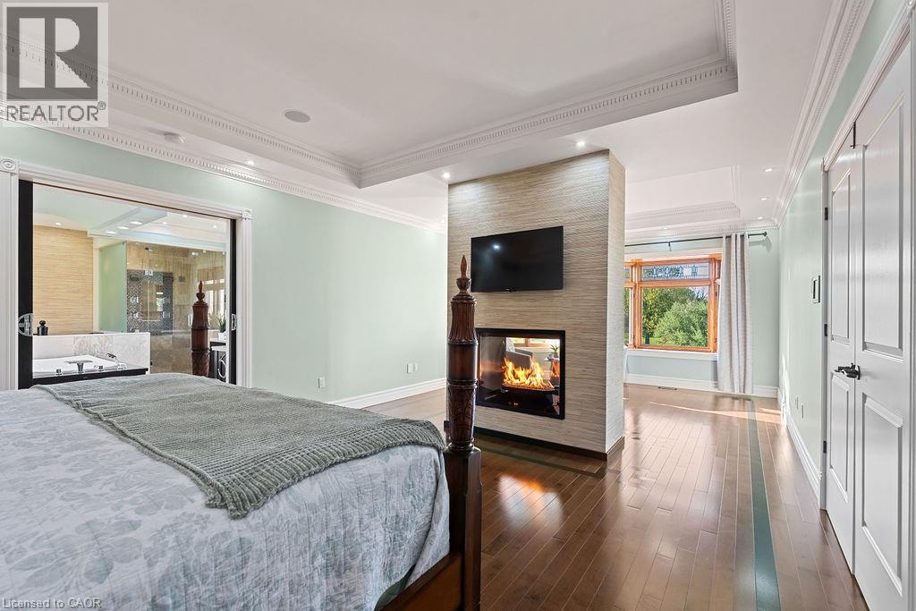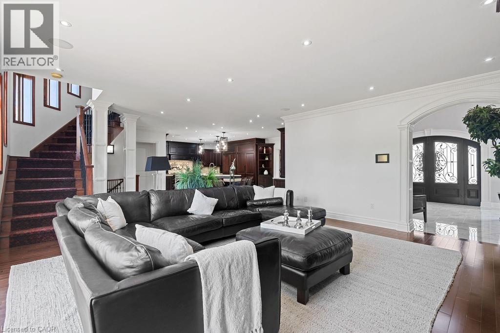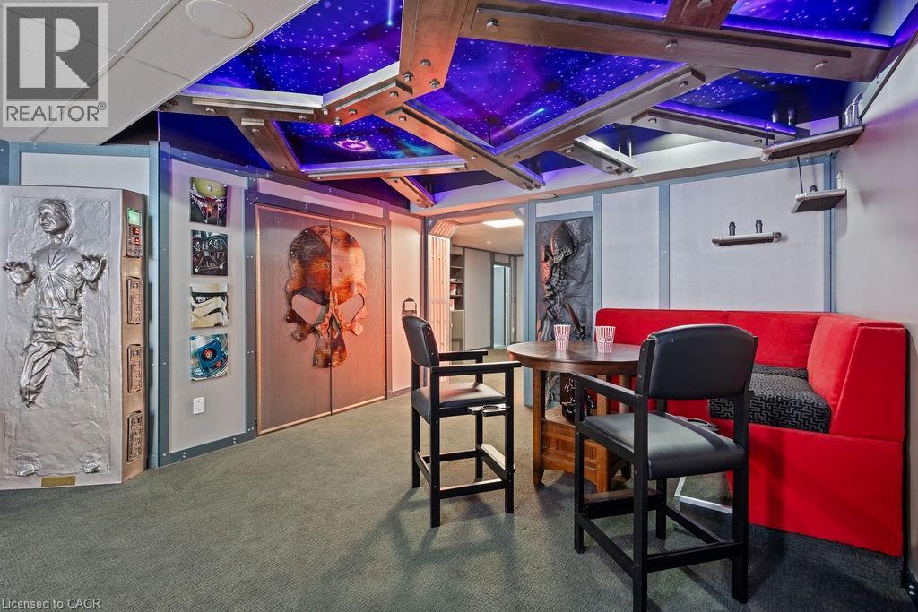 Experience Elevated Living at this Spectacular North Burlington Masterpiece in an Exclusive Enclave of Prestigious Estates. Set on a serene 2.5-acre lot, this luxurious home offers approx. 8,700 SF of exquisitely finished living space, where sophistication meets comfort and innovation. Designed for discerning buyers, this 4-bedroom, 7-bathroom residence delivers the ultimate lifestyle. Gourmet custom kitchen by Gravelle, with extensive solid wood cabinetry, granite counters, hidden doors to large pantry and high-end SS appliances. The walk-out basement is a next-level entertainment hub with Star Wars Sci-Fi theme. Featuring a cutting-edge games room, a dedicated home theatre with immersive 7.1 Dolby surround sound, 12' screen and starlight ceiling. Including flexible space that could easily serve as a 5th bedroom, complete with generous storage. Step outside to a peaceful retreat—gather around the stone fire pit or take a scenic stroll along the nearby Bruce Trail. Despite the private, nature-filled setting, you're only minutes from the schools and amenities of Burlington, blending secluded luxury with urban convenience. This remarkable home defines upscale living. Whether you're hosting grand celebrations or enjoying quiet moments, this is where modern luxury meets timeless tranquillity Please click on the more information link for all luxury features and all inclusions and click on more photos for floorplans. 10+++ (id:51158)