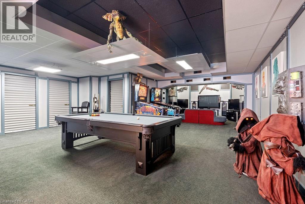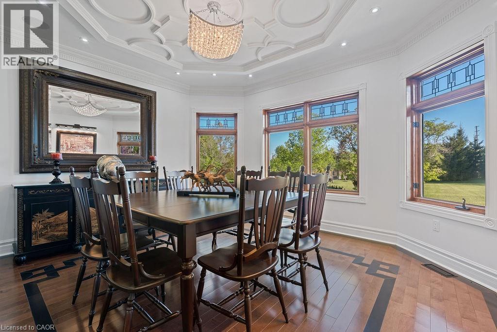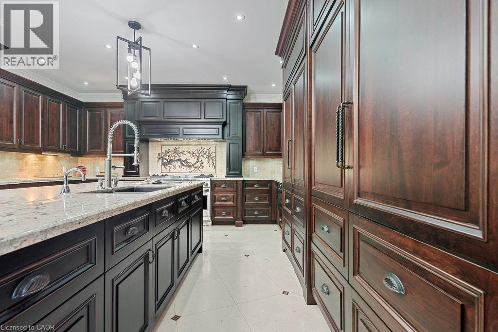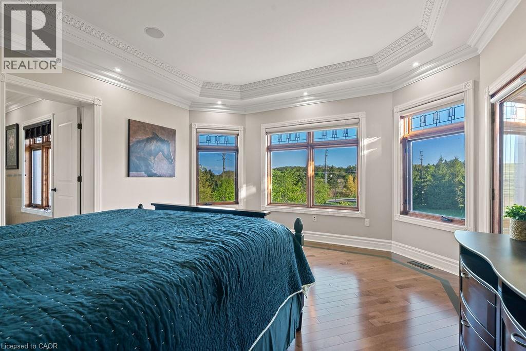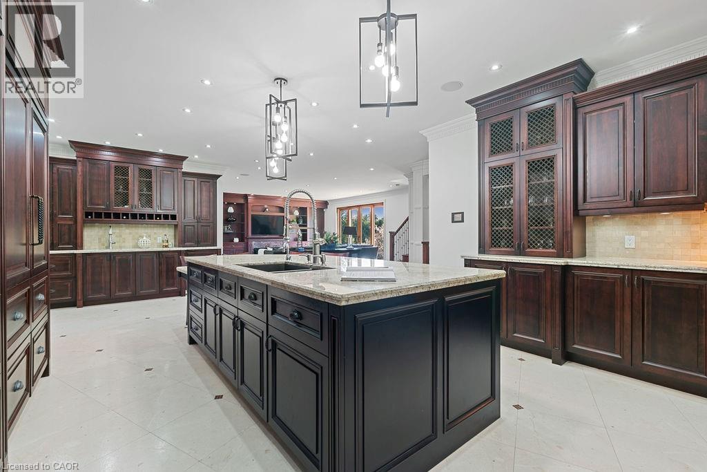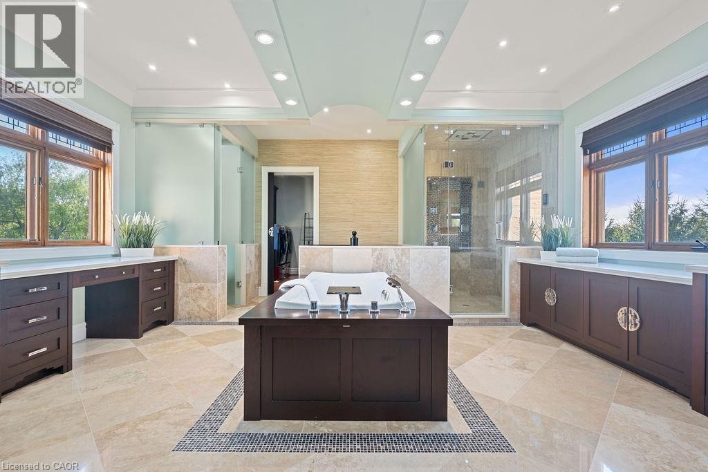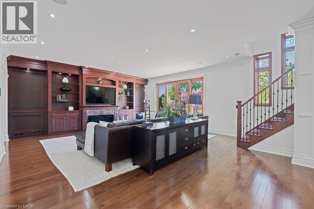 Experience Elevated Living at this Spectacular North Burlington Masterpiece in an Exclusive Enclave of Prestigious Estates. Set on a serene 2.5-acre lot, this luxurious home offers approx. 8,700 SF of exquisitely finished living space, where sophistication meets comfort and innovation. Designed for discerning buyers, this 4-bedroom, 7-bathroom residence delivers the ultimate lifestyle. Gourmet custom kitchen by Gravelle, with extensive solid wood cabinetry, granite counters, hidden doors to large pantry and high-end SS appliances. The walk-out basement is a next-level entertainment hub with Star Wars Sci-Fi theme. Featuring a cutting-edge games room, a dedicated home theatre with immersive 7.1 Dolby surround sound, 12' screen and starlight ceiling. Including flexible space that could easily serve as a 5th bedroom, complete with generous storage. Step outside to a peaceful retreat—gather around the stone fire pit or take a scenic stroll along the nearby Bruce Trail. Despite the private, nature-filled setting, you're only minutes from the schools and amenities of Burlington, blending secluded luxury with urban convenience. This remarkable home defines upscale living. Whether you're hosting grand celebrations or enjoying quiet moments, this is where modern luxury meets timeless tranquillity Please click on the more information link for all luxury features and all inclusions and click on more photos for floorplans. 10+++ (id:51158)
