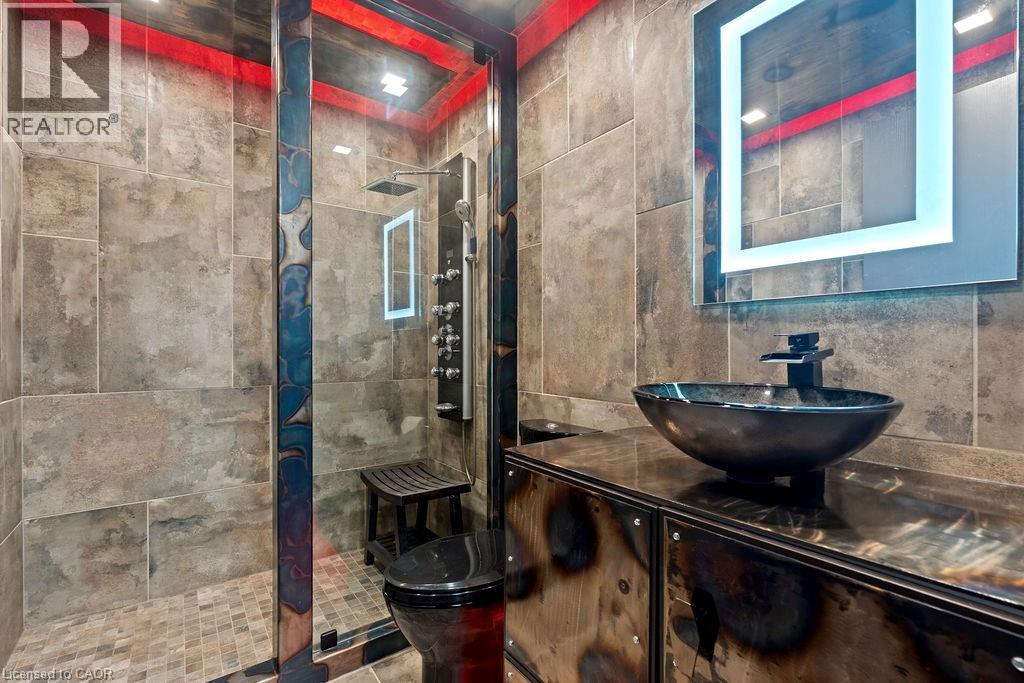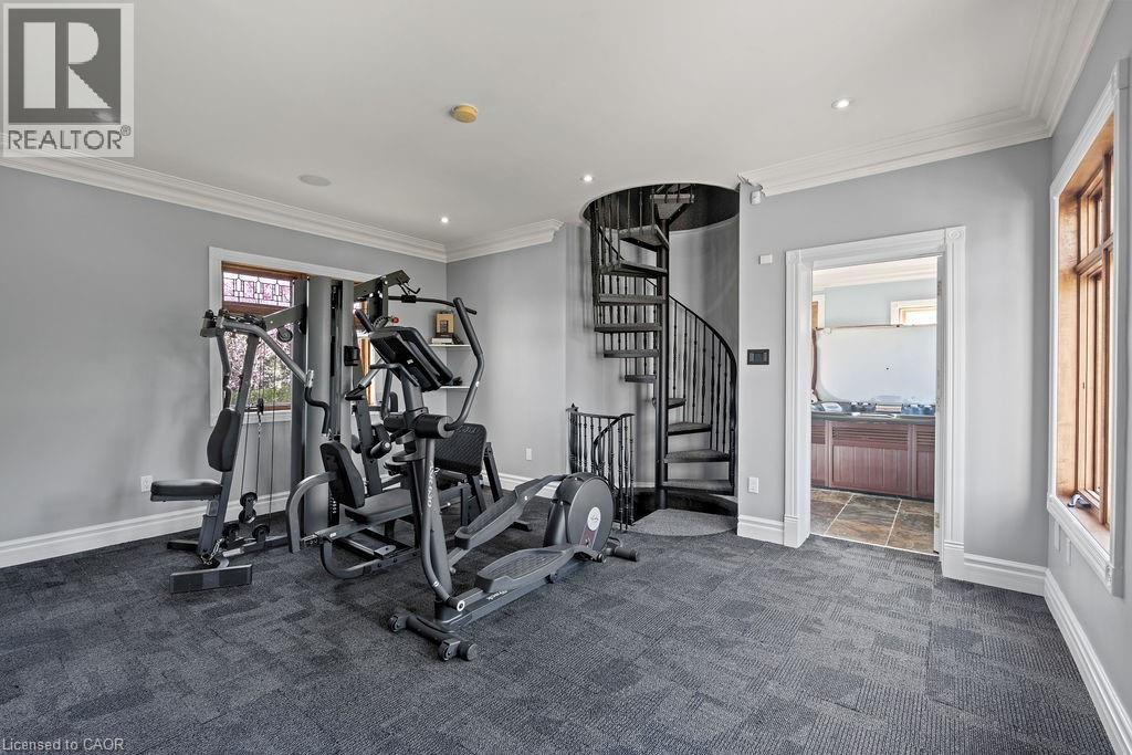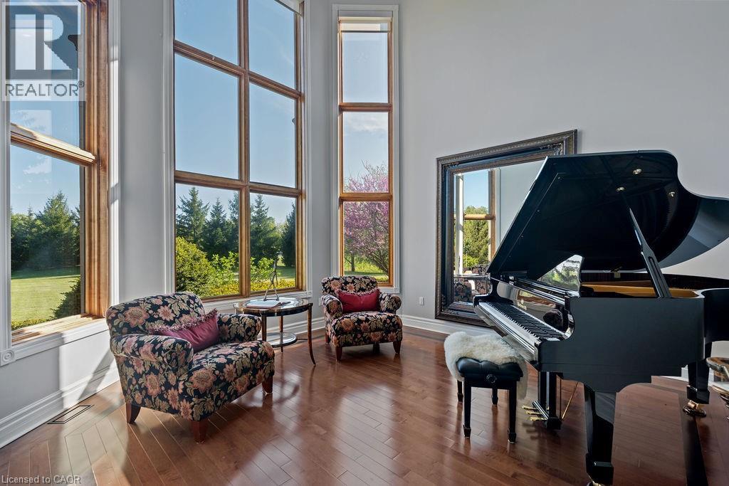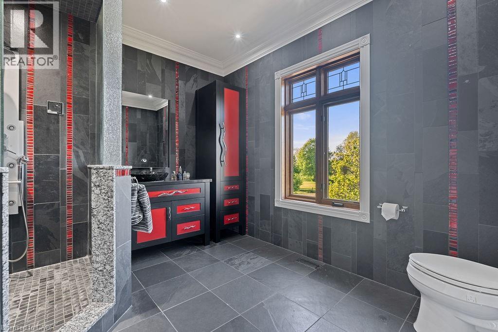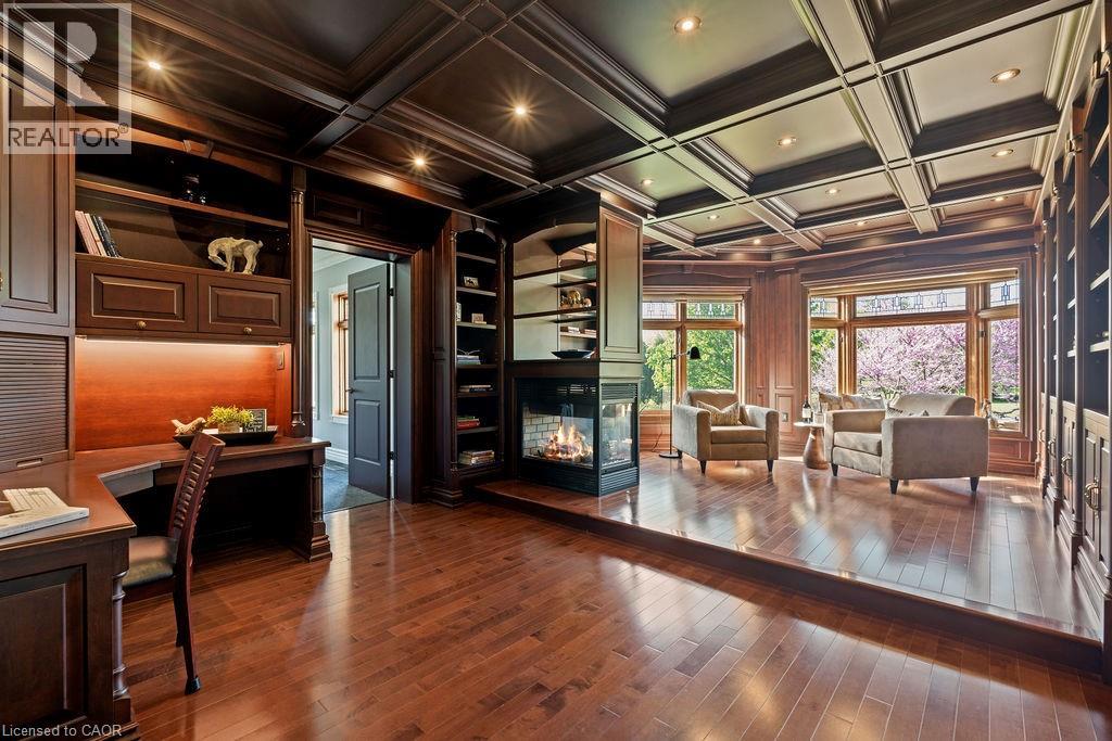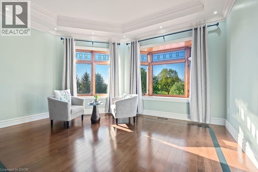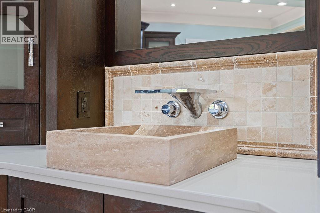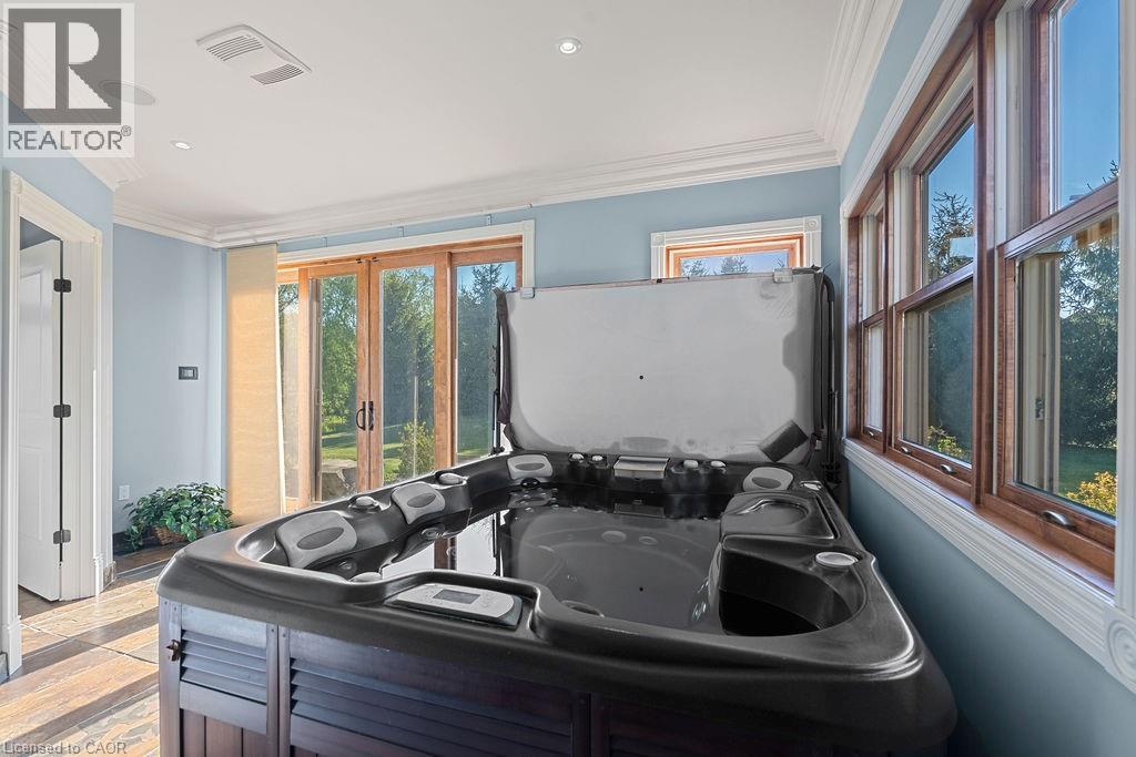 Experience Elevated Living at this Spectacular North Burlington Masterpiece in an Exclusive Enclave of Prestigious Estates. Set on a serene 2.5-acre lot, this luxurious home offers approx. 8,700 SF of exquisitely finished living space, where sophistication meets comfort and innovation. Designed for discerning buyers, this 4-bedroom, 7-bathroom residence delivers the ultimate lifestyle. Gourmet custom kitchen by Gravelle, with extensive solid wood cabinetry, granite counters, hidden doors to large pantry and high-end SS appliances. The walk-out basement is a next-level entertainment hub with Star Wars Sci-Fi theme. Featuring a cutting-edge games room, a dedicated home theatre with immersive 7.1 Dolby surround sound, 12' screen and starlight ceiling. Including flexible space that could easily serve as a 5th bedroom, complete with generous storage. Step outside to a peaceful retreat—gather around the stone fire pit or take a scenic stroll along the nearby Bruce Trail. Despite the private, nature-filled setting, you're only minutes from the schools and amenities of Burlington, blending secluded luxury with urban convenience. This remarkable home defines upscale living. Whether you're hosting grand celebrations or enjoying quiet moments, this is where modern luxury meets timeless tranquillity Please click on the more information link for all luxury features and all inclusions and click on more photos for floorplans. 10+++ (id:51158)