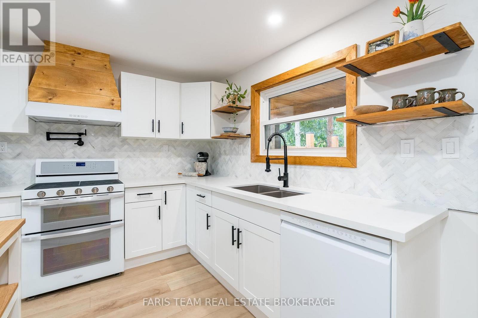 Top 5 Reasons You Will Love This Home: 1) Discover the backyard retreat and waterfront lifestyle, with direct canal access to Lake Couchiching for kayaking or boating, then unwind in your hot tub or sauna, alongside a sprawling patio and manicured lawn setting the stage for sunset cocktails, starlit dinners, or simply letting the day drift by 2) Custom-crafted kitchen with a striking herringbone backsplash, quartz countertops, a sleek pot filler, and refined finishes, transforming weeknight meals into a five-star experience 3) Style in every detail with on-trend flooring and curated accents, creating a home that feels both timeless and effortlessly modern 4) Space to grow with in-law suite potential, including room for extended family, guests, or a seamless work-life setup 5) Nestled on a quiet cul-de-sac with lush landscaping, enjoy the peace of nature just minutes from schools, shops, and daily essentials. 1,186 above grade sq.ft. plus a finished lower level. *Please note some images have been virtually staged to show the potential of the home. (id:51158)