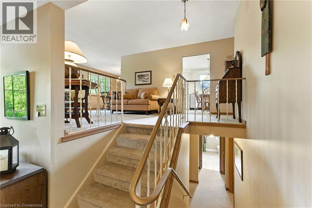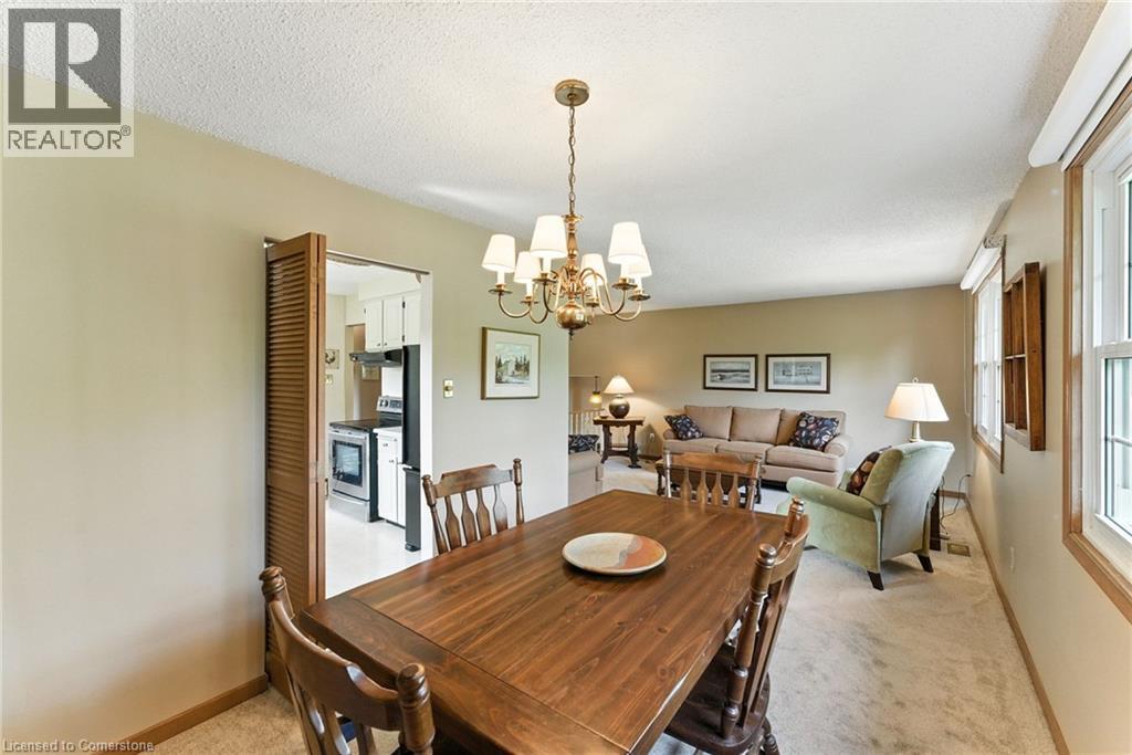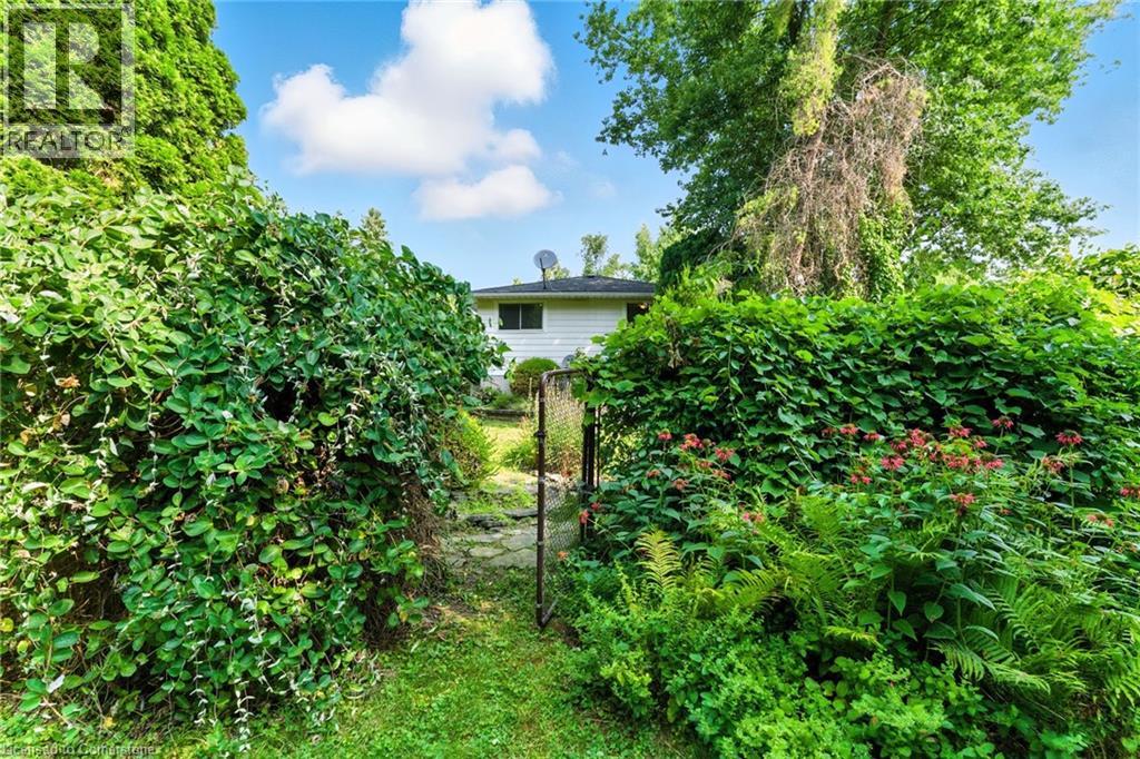 Nestled in the heart of the picturesque community of Jerseyville, this charming raised ranch delivers the serenity of rural living just minutes from city amenities. Backing directly onto Jerseyville Park, you'll enjoy a playground and open fields right outside your back gate, perfect for family fun. The scenic Rail Trail is steps away, offering the ideal spot for morning jogs, weekend bike rides, or peaceful evening walks. Inside, this well-maintained home features an inviting L-shaped living and dining room, complemented by a bright, sun-filled eat-in kitchen. Three generous bedrooms provide ample space for family or guests. The lower level is a true highlight, boasting a spacious recreation room with a cozy gas fireplace and oversized windows that let in plenty of natural light. A convenient two-piece bath and an additional room make the perfect home office, hobby space, or playroom. Step outside to your private backyard, surrounded by lush perennial gardens, mature trees, and a gently meandering lot that offers beauty in every season. Whether you're hosting backyard BBQs with family and friends or unwinding after a long day, this space is perfect for both entertaining and relaxing. All this, just minutes from Ancaster, Brantford, and quick highway access, making your commute a breeze. (id:51158)