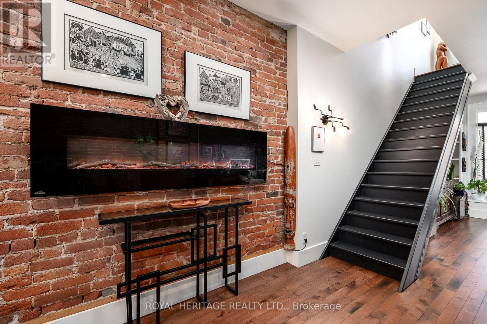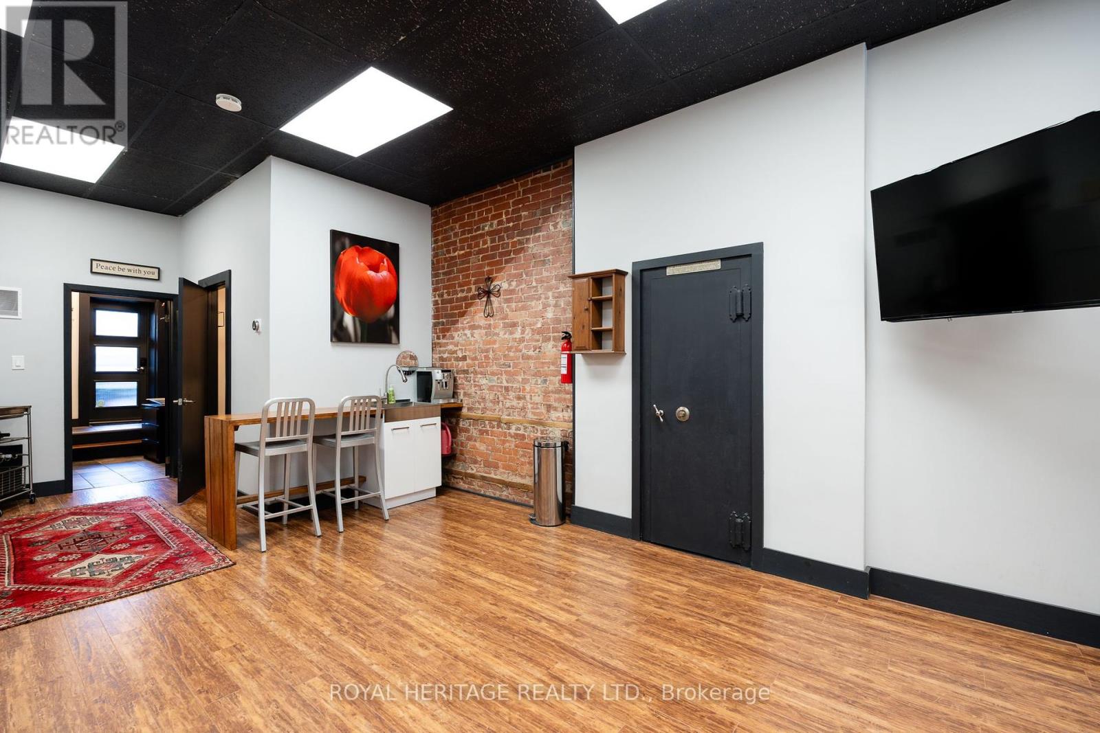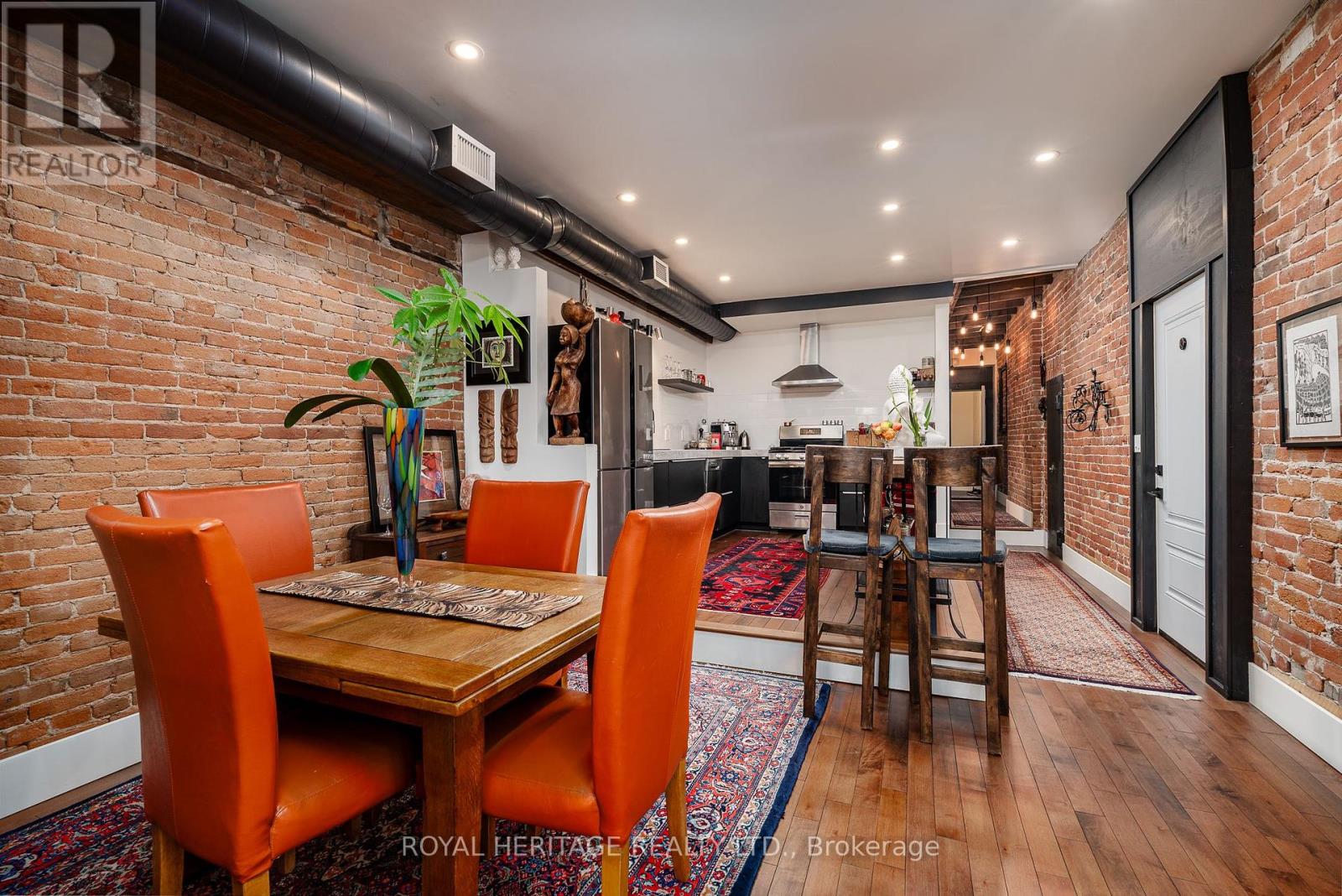 Located in the vibrant Historic Downtown Belleville District, this Unique 2600 SF mixed-use building combines timeless character with modern upgrades. Offering both commercial and residential space, it is ideal for owner-occupiers, investors, or entrepreneurs seeking a distinctive live-work opportunity in a high-visibility location. The main level features an impressive commercial space perfect for retail, office, or studio use with high ceilings, exposed brick, 3 PC washroom, a kitchenette, and large front windows that flood the space with natural light. Blending original architectural elements with contemporary finishes, this area offers great flexibility for a variety of business types. The second and third levels feature a stylish two-level residential loft with open-concept living at its finest. With exposed brick, high ceilings, and east-west light exposure, this residence offers warmth, space, and urban charm. Hardwood floors span throughout. The Industrial style kitchen is fully equipped with sleek stainless steel appliances (2019), open shelving, and a walk-in pantry, making it perfect for both daily living and entertaining. Guest bedroom/office and 3 PC modern bathrooms thoughtfully finished. The private primary bedroom is located on the third level, complete with 4 PC en-suite, sitting/yoga area, and Laundry. Additional upgrades include a durable membrane roof (approx. 10 years), and all windows and doors replaced within the past decade. Two new forced-air gas furnaces (2019), two central air units, and a heat pump (all 2019) ensure year-round comfort and efficiency. Whether you're looking to invest, live in, or operate a business, this historic gem blends location, character, and modern comfort in one rare offering. Includes back patio entrance and tandem parking. Close to trails, parks, golf courses, shopping, entertainment, public transportation, 2 hours to Ottawa or Toronto along the 401 corridor, a true lifestyle investment opportunity. (id:51158)