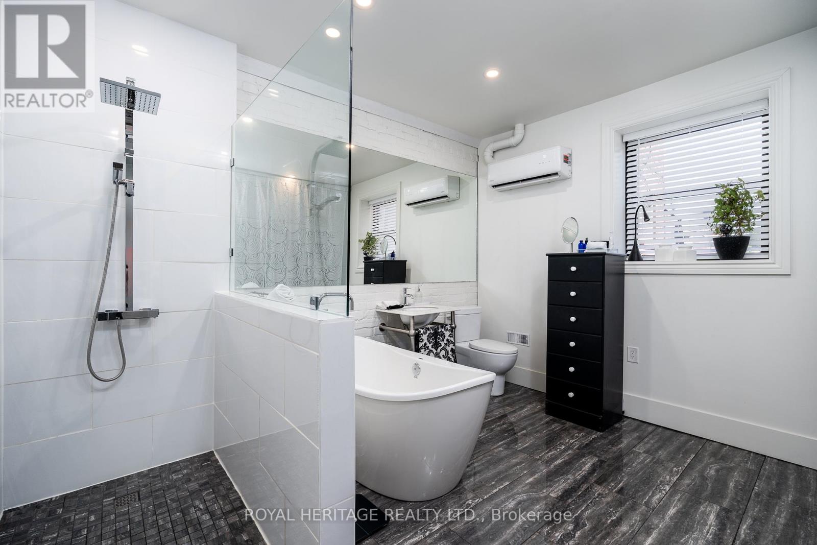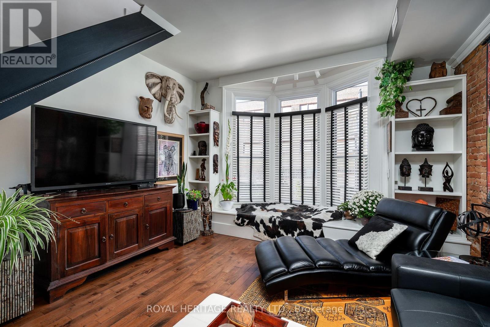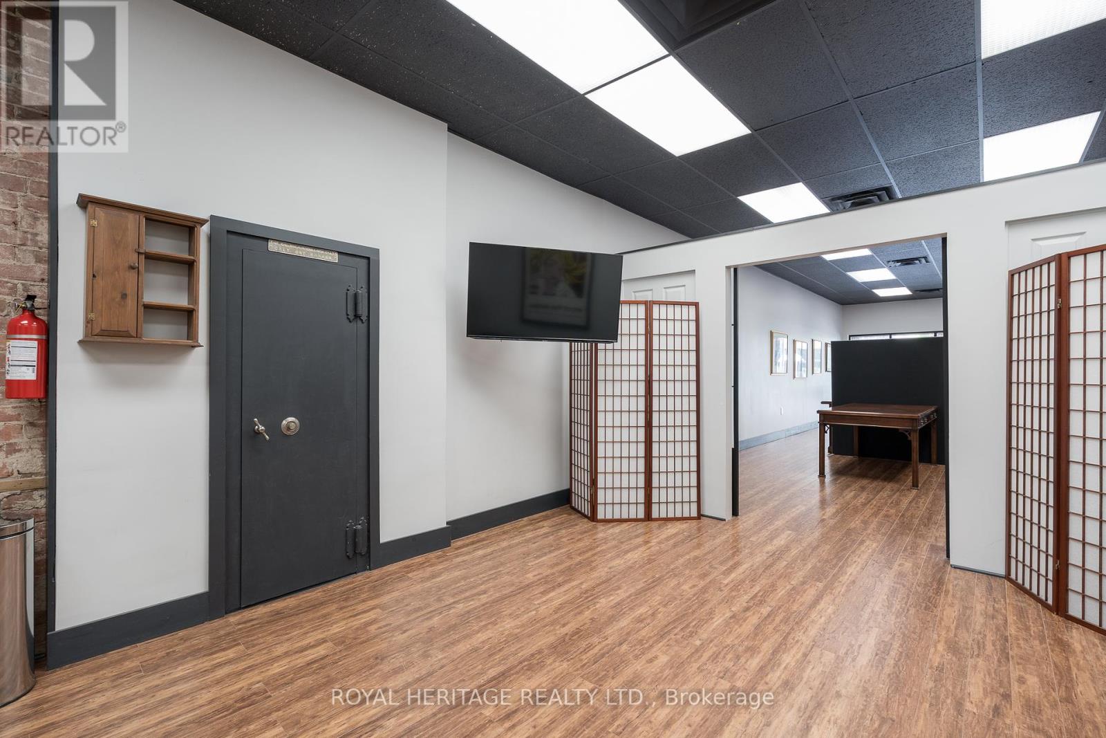 Located in the vibrant Historic Downtown Belleville District, this Unique 2600 SF mixed-use building combines timeless character with modern upgrades. Offering both commercial and residential space, it is ideal for owner-occupiers, investors, or entrepreneurs seeking a distinctive live-work opportunity in a high-visibility location. The main level features an impressive commercial space perfect for retail, office, or studio use with high ceilings, exposed brick, 3 PC washroom, a kitchenette, and large front windows that flood the space with natural light. Blending original architectural elements with contemporary finishes, this area offers great flexibility for a variety of business types. The second and third levels feature a stylish two-level residential loft with open-concept living at its finest. With exposed brick, high ceilings, and east-west light exposure, this residence offers warmth, space, and urban charm. Hardwood floors span throughout. The Industrial style kitchen is fully equipped with sleek stainless steel appliances (2019), open shelving, and a walk-in pantry, making it perfect for both daily living and entertaining. Guest bedroom/office and 3 PC modern bathrooms thoughtfully finished. The private primary bedroom is located on the third level, complete with 4 PC en-suite, sitting/yoga area, and Laundry. Additional upgrades include a durable membrane roof (approx. 10 years), and all windows and doors replaced within the past decade. Two new forced-air gas furnaces (2019), two central air units, and a heat pump (all 2019) ensure year-round comfort and efficiency. Whether you're looking to invest, live in, or operate a business, this historic gem blends location, character, and modern comfort in one rare offering. Includes back patio entrance and tandem parking. Close to trails, parks, golf courses, shopping, entertainment, public transportation, 2 hours to Ottawa or Toronto along the 401 corridor, a true lifestyle investment opportunity. (id:51158)