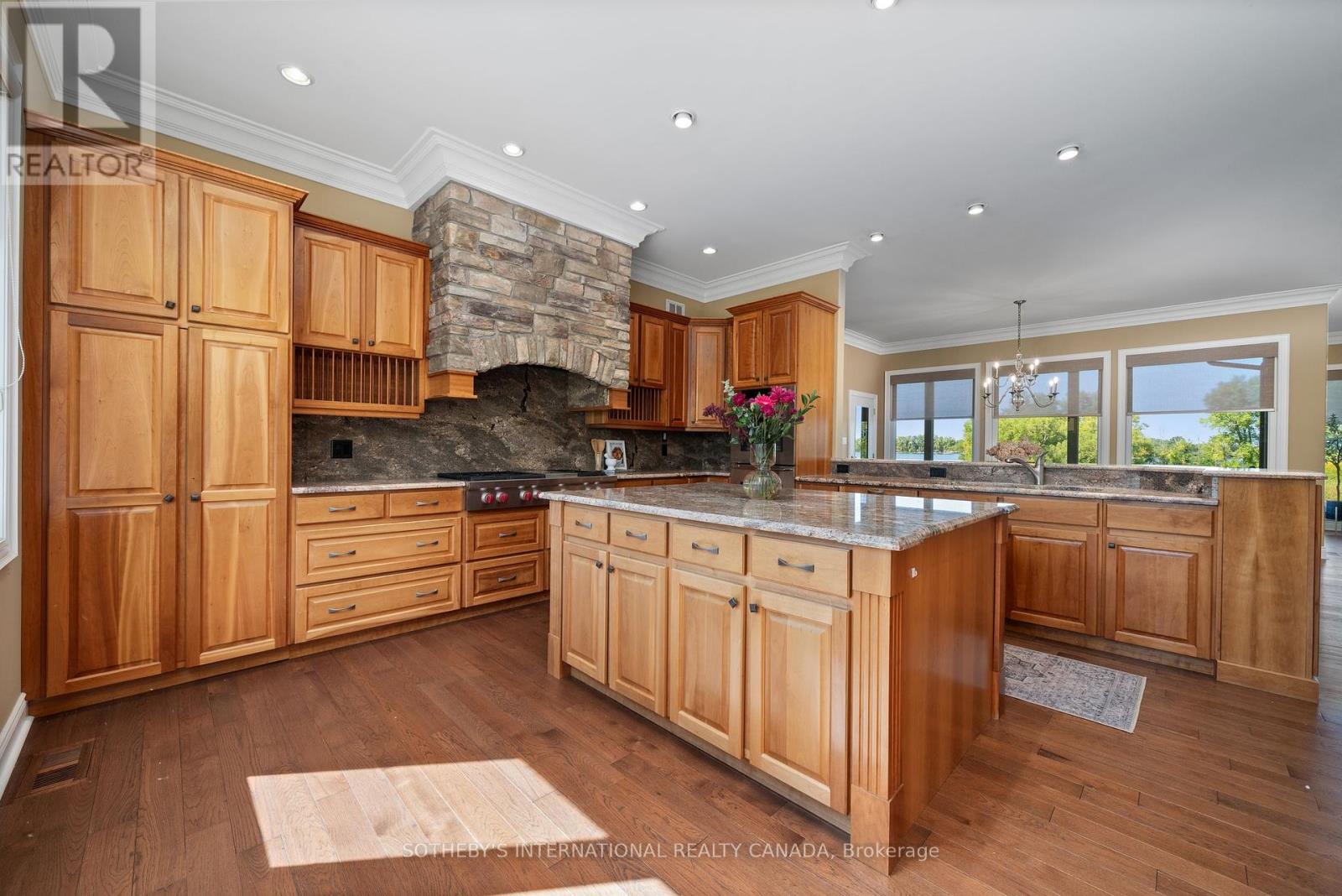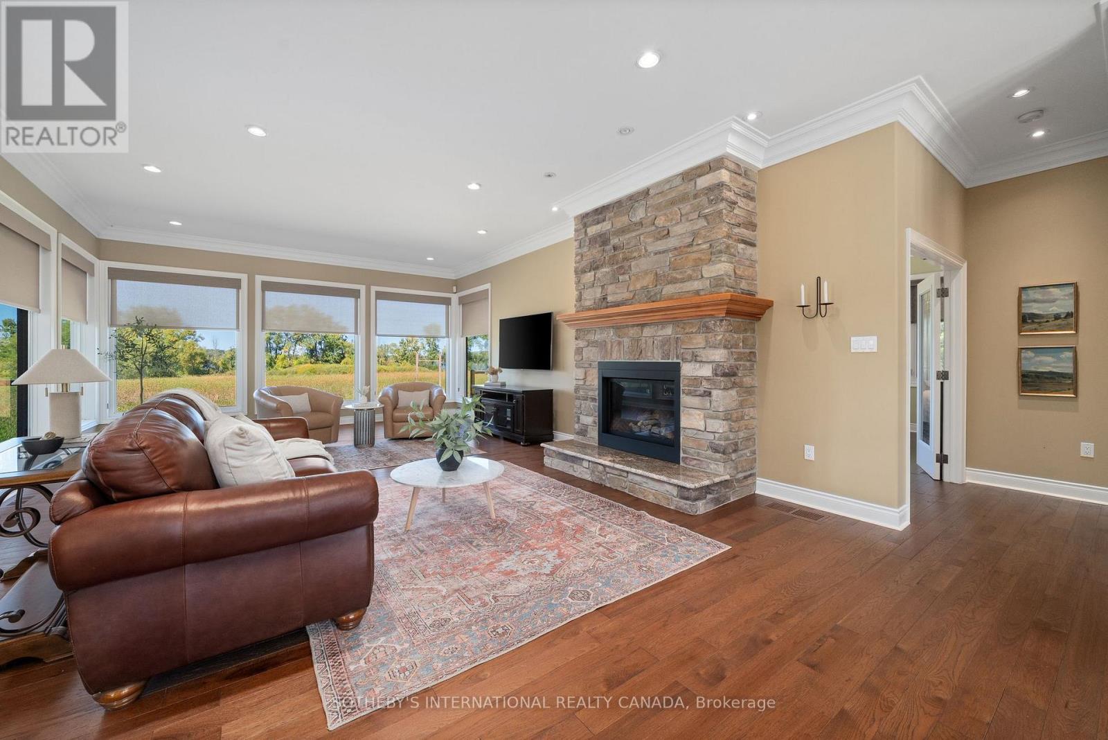 Welcome to Willow Shore, a custom executive waterfront estate on the Bay of Quinte offering over 4,000 sq. ft. of refined living space on more than 4 acres of private grounds. Set back from the road along a winding drive, the residence enjoys a tranquil shoreline setting just 15 mins from Picton, surrounded by natural beauty, abundant wildlife, and direct water access for kayaking, canoeing, and paddle boarding. Thoughtfully designed, the home blends seamlessly with its natural surroundings, creating a harmonious retreat where indoor and outdoor living meet. The expansive main level is designed to showcase sweeping Bay views from every room. A chefs kitchen takes center stage, featuring a Wolf gas cooktop, Sub-Zero fridge, built-in espresso station, wine fridge, natural stone and custom cabinetry. The open-concept layout flows into the dining and living areas, complete with a stunning stone fireplace and rich hardwood floors. The primary suite is a true retreat with a spa-inspired 5-piece ensuite, dual vanity, spacious walk-in closet, and private walk-out to the wrap-around deck. The lower level extends the living space with two additional bedrooms, a large family room, walk-out to a covered patio, and a unique built-in pet grooming station perfect for animal lovers. Thoughtful finishes and natural light throughout make it ideal for both family living and entertaining. Outdoor spaces are equally impressive, including extensive stone patios, landscaped walkways, and a custom gazebo with fireplace an all-season gathering place designed for entertaining or enjoying magnificent sunsets. Additional features include a spacious laundry/mudroom, elegant entryway with glass-inset double doors, and oversized windows that frame uninterrupted waterfront views. Willow Shore is a rare blend of luxury, privacy, and nature whether envisioned as a year-round residence or the ultimate County retreat. An extraordinary opportunity for those seeking waterfront living at its finest. (id:51158)