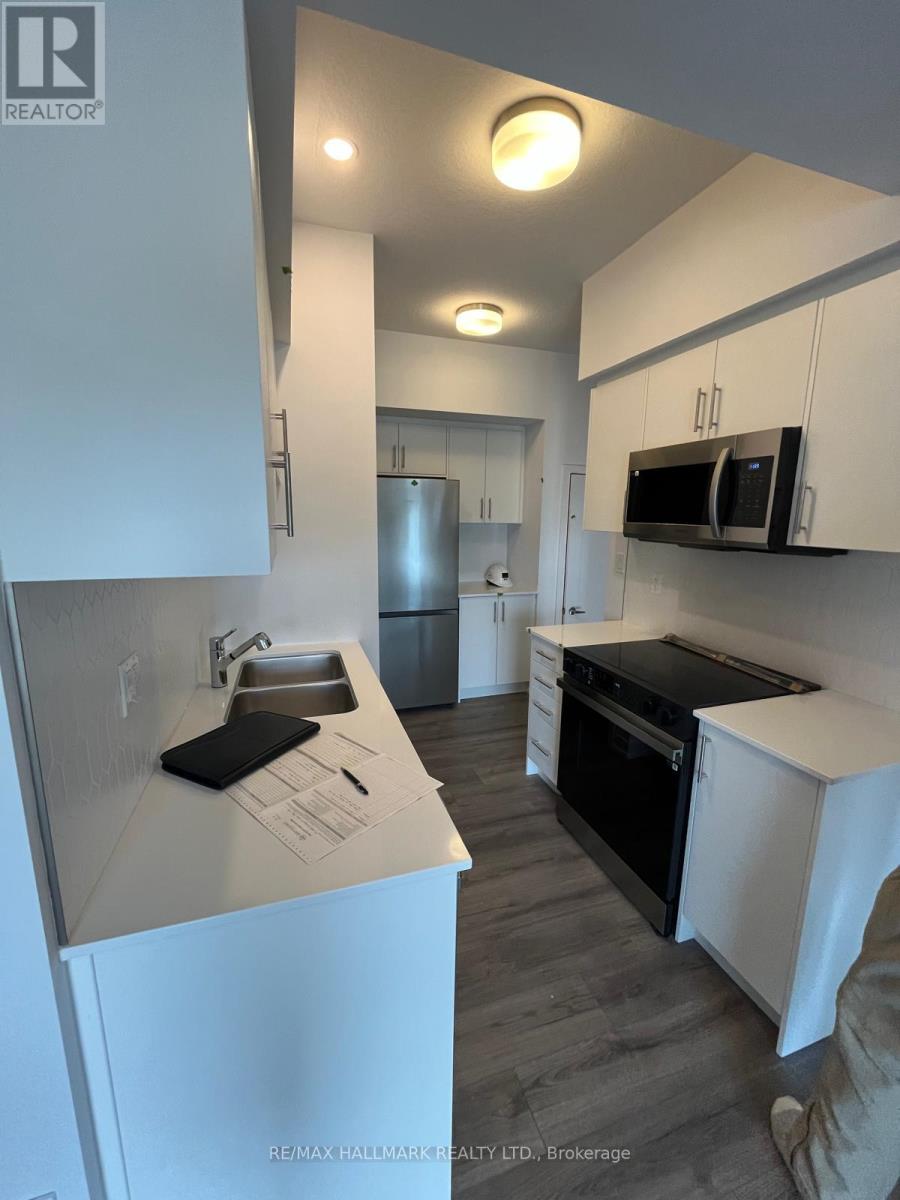 Welcome to Sunrise Grove in Fergus! This brand new, main-floor 2-bedroom, 2-bathroom unit offers 1050 sq ft of bright, open-concept living. The kitchen features sleek stainless steel appliances, and flows seamlessly into the living area with durable vinyl flooring throughout and cozy carpet in the bedrooms. Enjoy the convenience of in-suite laundry and step out onto your private balcony, perfect for relaxing or entertaining. Located in a peaceful pocket just minutes from downtown Fergus, you're close to parks, trails, golf, and local favorites like Elora Gorge and Templin Gardens. Whether you're exploring nature, enjoying riverside walks, or taking in small-town charm, this location offers a lifestyle you'll love. Don't miss this opportunity to call Sunrise Grove home! (id:51158)