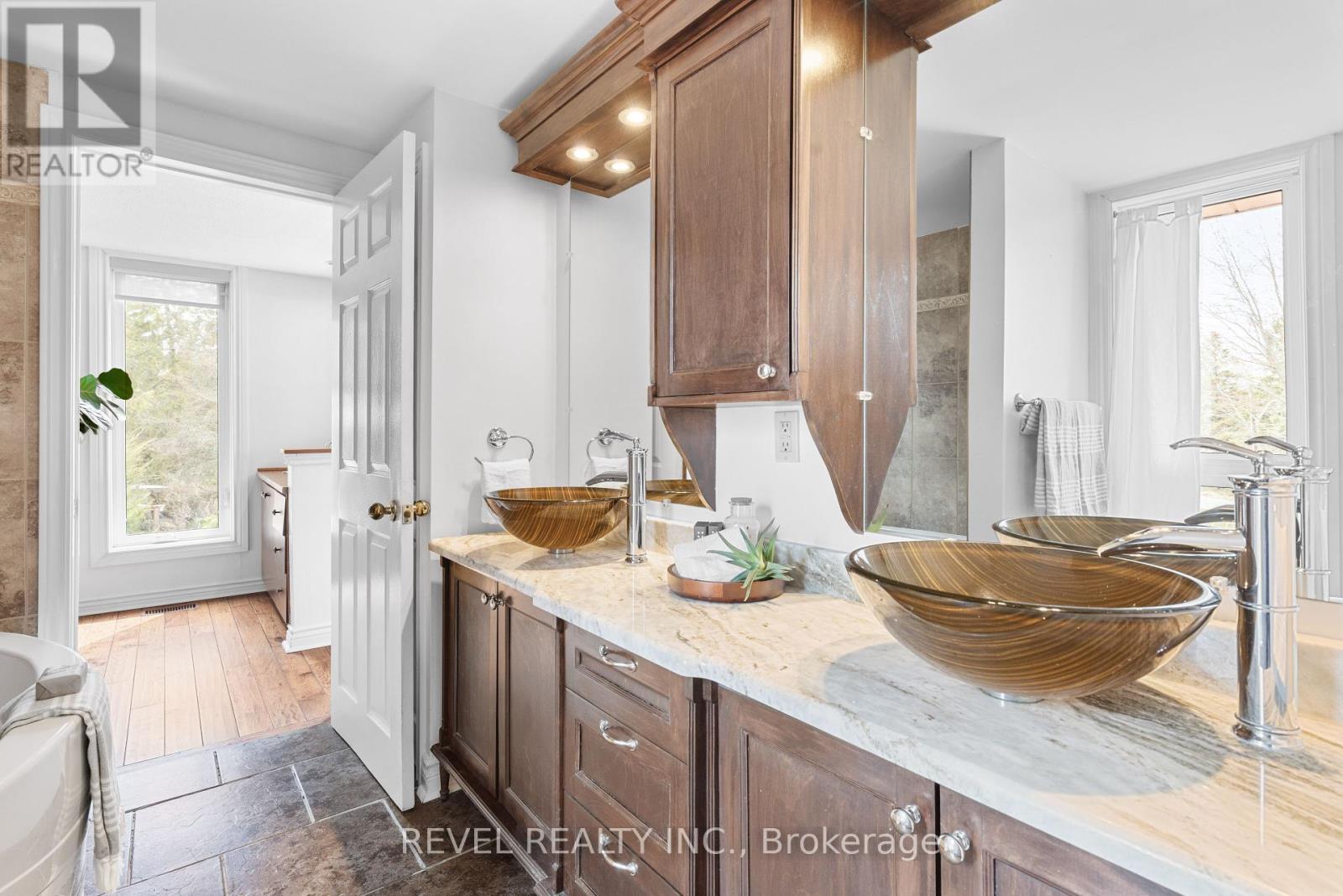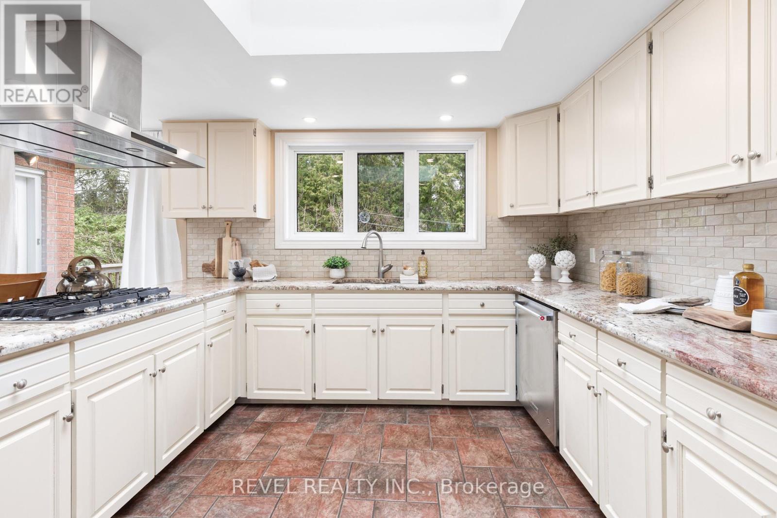 Welcome to your dream lakefront lifestyle! This impressive 6-bedroom 3-bath, 4,800 sqft solid brick home sits proudly on 1.08 private acres with 162 feet of waterfront a rare gem just 1 hour from the GTA. Step inside to find hardwood and ceramic floors, an updated gourmet kitchen with granite counters, marble backsplash, gas range and multiple walkouts to lakeview decks from both the living room and the spacious upper level retreat. The nearly 1,000 sq ft primary suite is a true sanctuary, offering a walk-in closet, updated ensuite, private living area, and even a kitchenette perfect for relaxation or extended family stays. This home is ideal for multi-generational living, a luxurious full-time residence, or an income property, this home offers flexible space for all your needs. Complete finished in-law suite with cozy living area, kitchen, bath & walkout to yard & entrance from garage. Plenty of storage in the home. Bonus exterior boathouse at the lake, excellent for storing waterfront recreational toys or an entertaining space. This property is situated on a quiet street minutes to park & local shopping. The possibilities are endless with this home. Book a showing today & make this your dream waterfront home. (id:51158)
