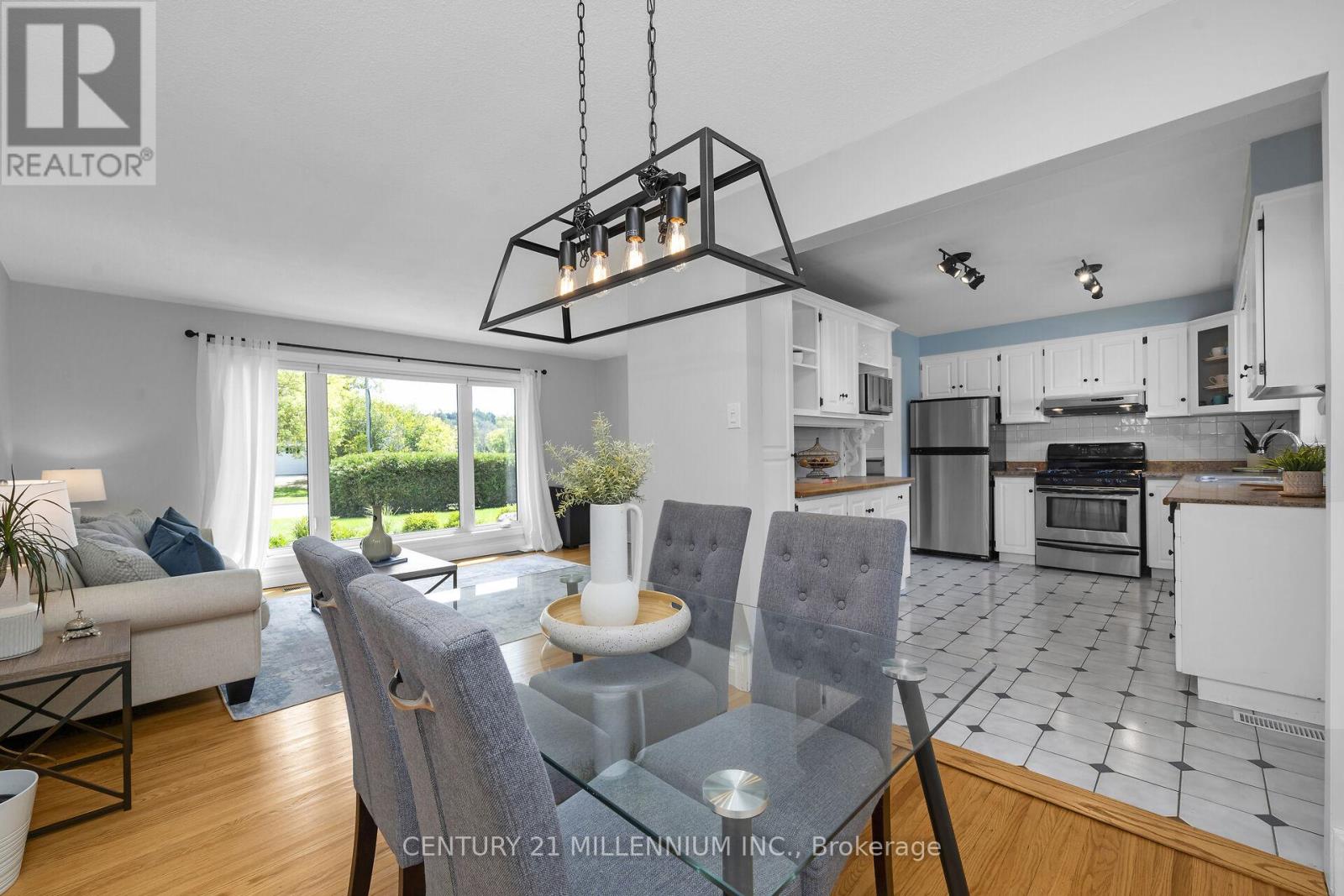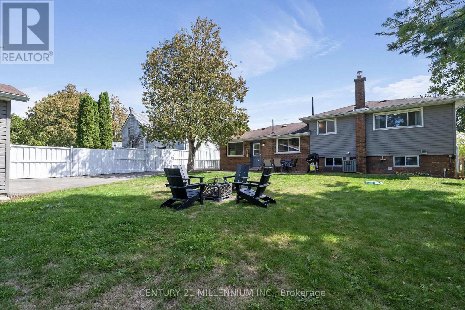 Welcome Home! This 3 level side split is located within walking distance to everything the Village of Erin has to offer. The huge, fully fenced yard is a lovely backdrop for family BBQs, soccer games and your morning coffee. A spacious 15 x 22 foot detached garage has a poured concrete floor and lots of space for storage including overhead. The home has beautiful natural light all day long from the large windows. Hardwood floors refinished and renovated basement both in 2021. Bright and airy main floor that walks out to the patio, plus 3 spacious bedrooms and the bathroom upstairs. Schools and sports are right down the road, plus a brand new library and playground. Amazing parking for the Erin Fall Fair on Thanksgiving weekend. This home has it all! (id:51158)