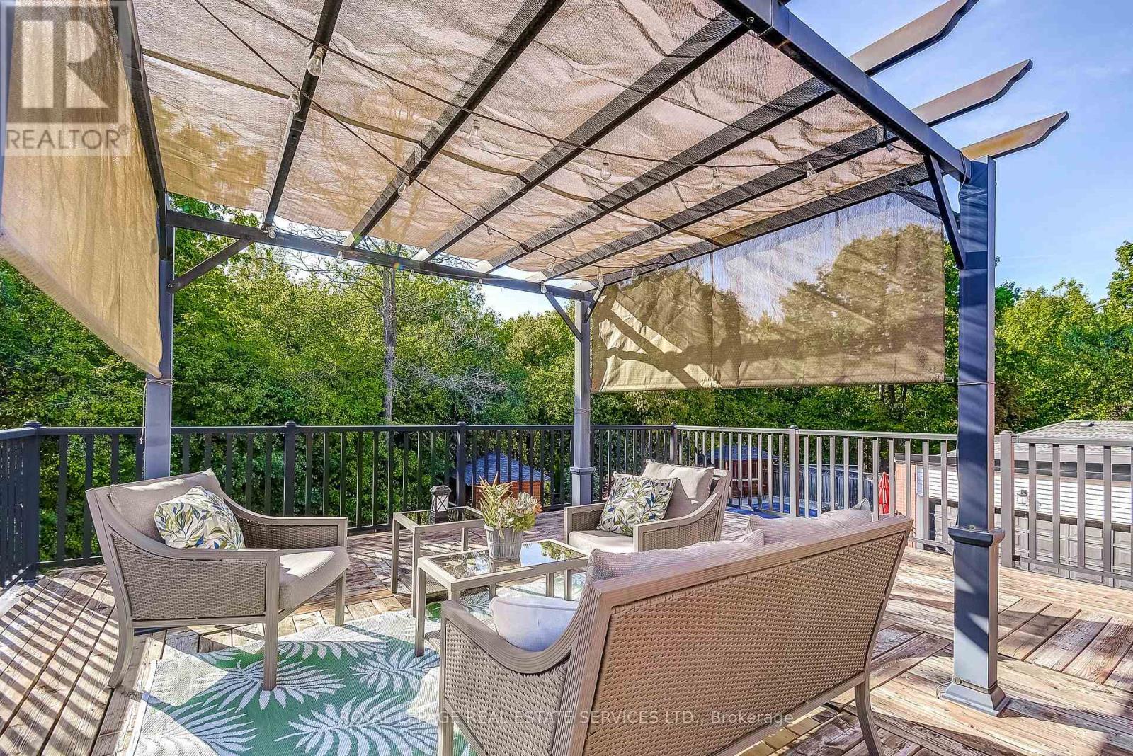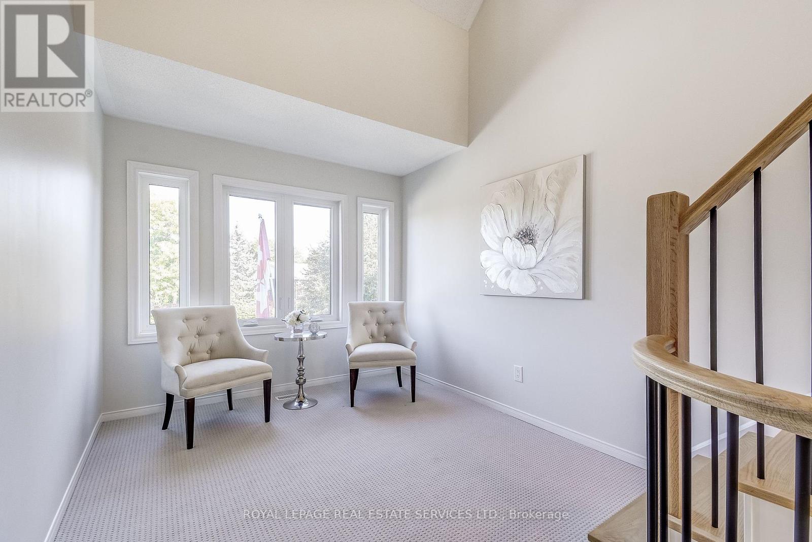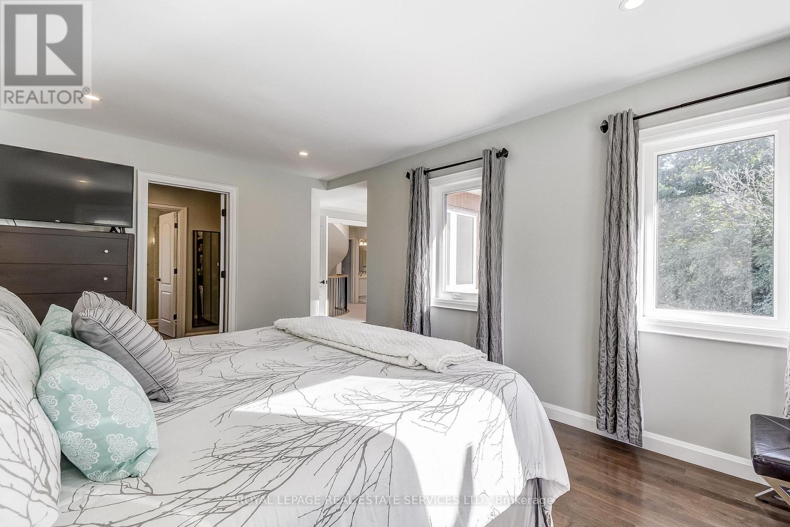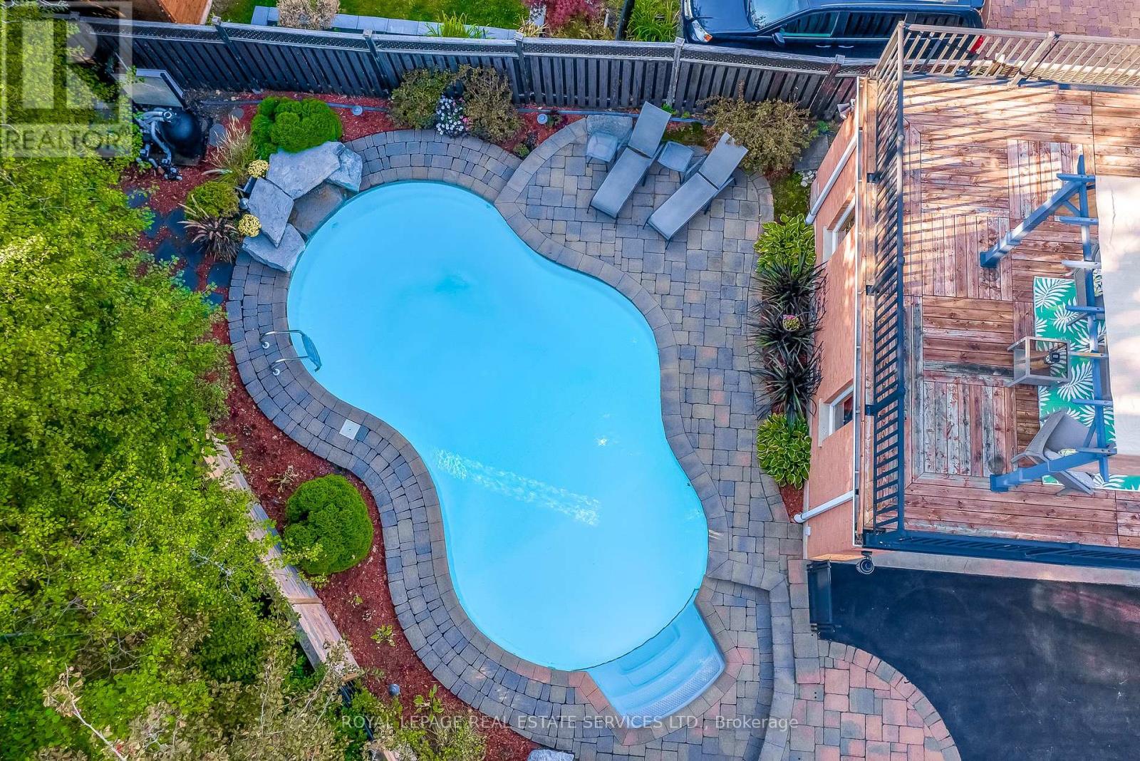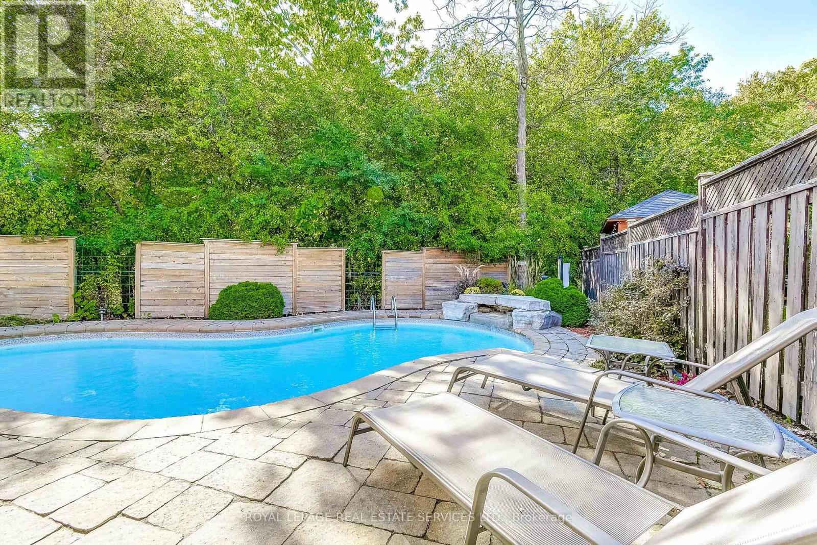 Welcome to your dream home on a lush ravine lot- A breathtaking Georgian-style residence nestled on one of the area's most sought-after crescents. Meticulously renovated with attention to every detail, this stunning property spans four spacious levels and offers 5 generous bedrooms, 4 bathrooms, a gourmet kitchen, formal dining room, living room or home office, family room, studio loft and a bright recreation room with electric fireplace in the lower level. Set against a serene natural backdrop, the backyard is a private oasis featuring a stone patio, upper deck, pool safety fence and an inground saltwater pool with waterfalls. Renovated in 2023, the main floor boasts hardwood throughout, custom-matched wood stairs, a gourmet kitchen with stainless steel appliances, a massive island, and a striking wet bar. An open breakfast area connects seamlessly to the family room, while the formal dining room is ideal for hosting gatherings. French doors, a gas fireplace, and garden views make the living room a beautiful option for a home office. Even the laundry room has been upgraded to make daily chores more enjoyable. Upstairs, the primary bedroom is a standout retreat, complete with hardwood floors, sitting area, his and hers closets and walkout to a private deck overlooking the ravine- perfect for morning coffee. The spa-like ensuite features double sinks, a freestanding tub, and a glass shower. The upper levels, freshly painted includes new broadloom and custom wood staircase. The third floor loft offers a fifth bedroom, full 4pc bathroom, and a flexible space ideal for a home office, studio, or teen retreat. This executive home blends charm, luxury, and functionality in a prime location. Full main floor renovation and configuration 2023. New windows & doors 2022, wood stairs with iron pickets 2023, painting & all broadloom 2025, A/C 2022, Renovated Primary bedroom & 5 pc ensuite 2016, roof 2010. Walking distance to schools, parks, trails and so much more. (id:51158)