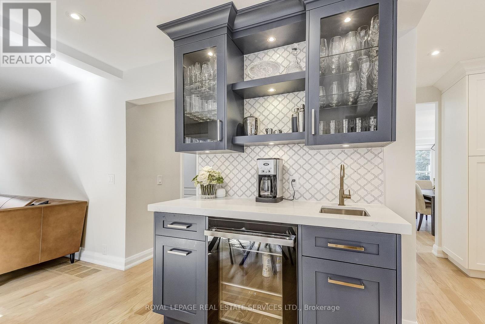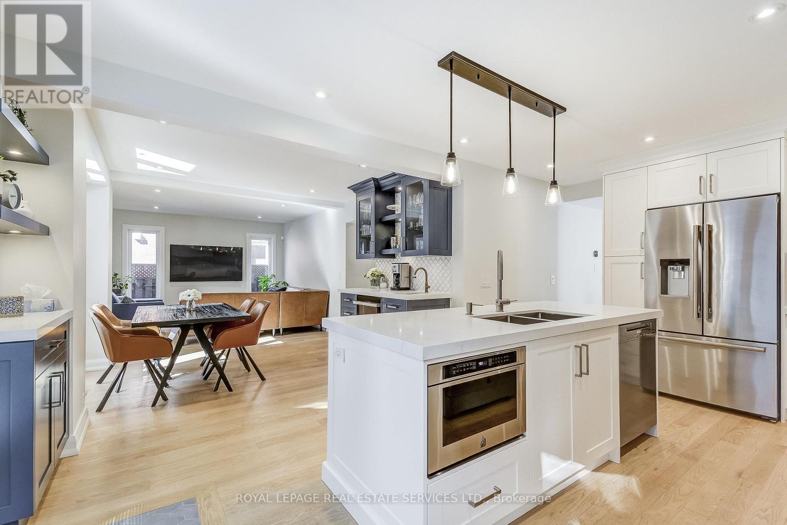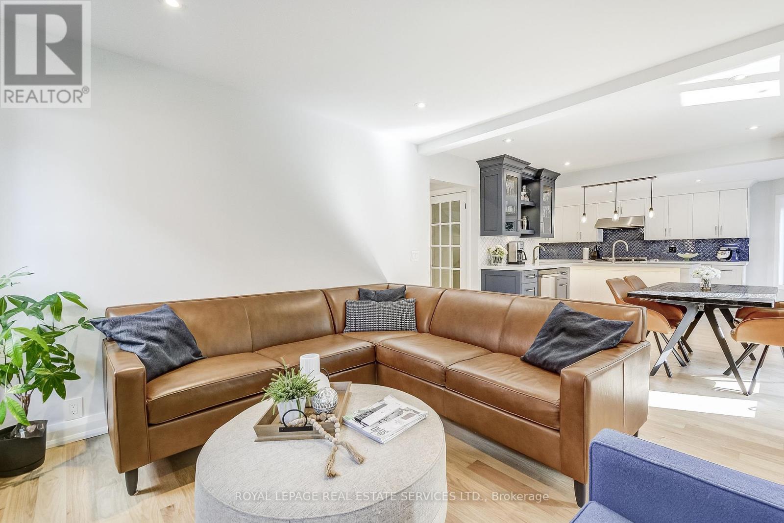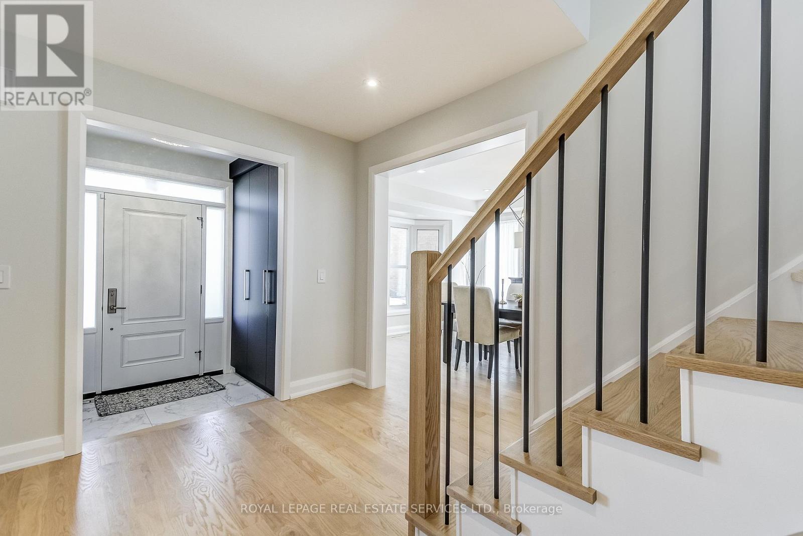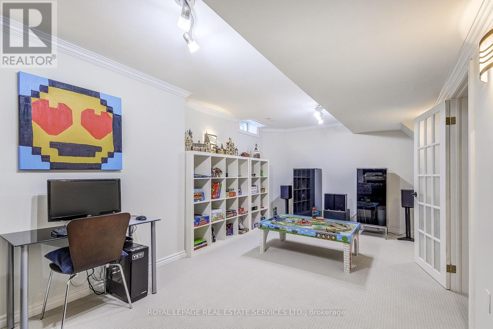 Welcome to your dream home on a lush ravine lot- A breathtaking Georgian-style residence nestled on one of the area's most sought-after crescents. Meticulously renovated with attention to every detail, this stunning property spans four spacious levels and offers 5 generous bedrooms, 4 bathrooms, a gourmet kitchen, formal dining room, living room or home office, family room, studio loft and a bright recreation room with electric fireplace in the lower level. Set against a serene natural backdrop, the backyard is a private oasis featuring a stone patio, upper deck, pool safety fence and an inground saltwater pool with waterfalls. Renovated in 2023, the main floor boasts hardwood throughout, custom-matched wood stairs, a gourmet kitchen with stainless steel appliances, a massive island, and a striking wet bar. An open breakfast area connects seamlessly to the family room, while the formal dining room is ideal for hosting gatherings. French doors, a gas fireplace, and garden views make the living room a beautiful option for a home office. Even the laundry room has been upgraded to make daily chores more enjoyable. Upstairs, the primary bedroom is a standout retreat, complete with hardwood floors, sitting area, his and hers closets and walkout to a private deck overlooking the ravine- perfect for morning coffee. The spa-like ensuite features double sinks, a freestanding tub, and a glass shower. The upper levels, freshly painted includes new broadloom and custom wood staircase. The third floor loft offers a fifth bedroom, full 4pc bathroom, and a flexible space ideal for a home office, studio, or teen retreat. This executive home blends charm, luxury, and functionality in a prime location. Full main floor renovation and configuration 2023. New windows & doors 2022, wood stairs with iron pickets 2023, painting & all broadloom 2025, A/C 2022, Renovated Primary bedroom & 5 pc ensuite 2016, roof 2010. Walking distance to schools, parks, trails and so much more. (id:51158)