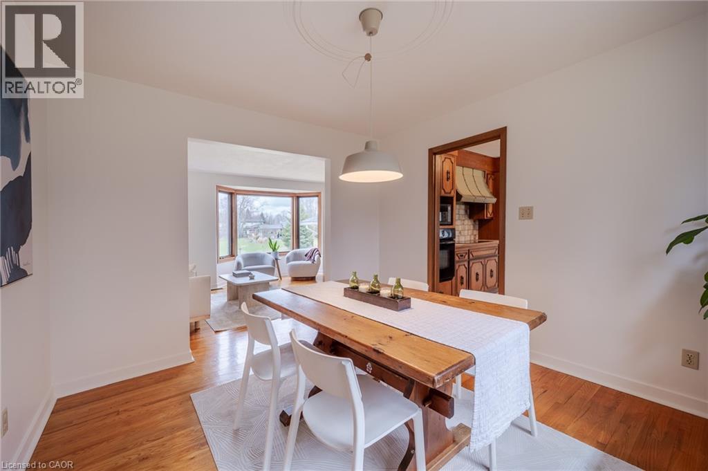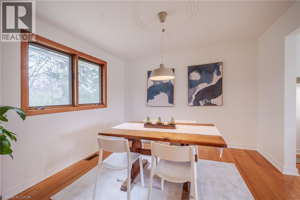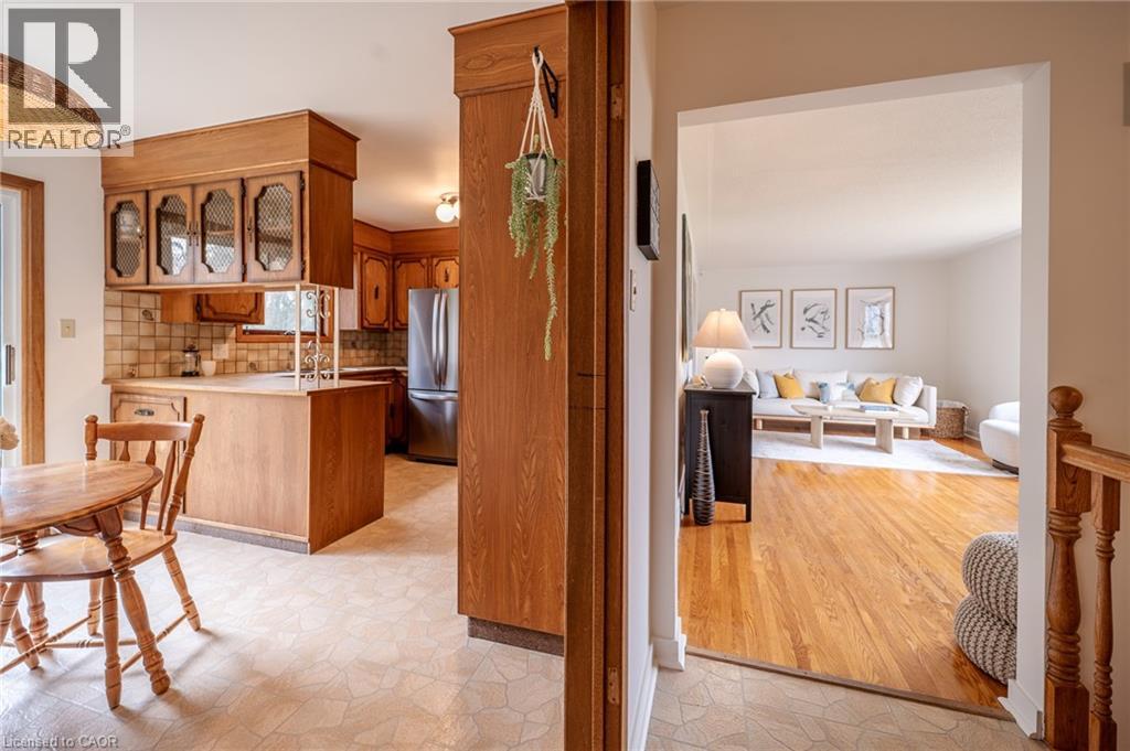 Welcome to Sunset Drive - a large-lot subdivision nestled in the quaint Village of Winterbourne - with a real community feel. With 4 bedrooms and 2 bathroom this raised bungalow built in 1969 is situated on large 1/2 acre lot with a very long, double wide driveway. With so much space outside, there's room to BBQ, Garden and play on the level lot and and then relax under the shade of the mature trees. Easily able to be lived in as-is, this retro-chic home is very comfortable. Entering the front door, you'll be greeted with short staircase to both upstairs and down. Once upstairs, the eat-in kitchen is straight ahead, and leads towards the dining room and long, bright living room. A pocket door can separate the bedroom wing of the home where you'll find 4 spacious bedrooms, the family bathroom and the primary en-suite. The hallway itself is wide and there's a large linen closet to ensure storage isn't a concern. The lower level family room/recreation room combo is massive, has a gas fireplace and could be used in so many different ways. There's a large utility/laundry room and a smaller storage room as well as 2 entrances to the large double garage. The Village of Winterbourne is an approx. 15 min drive to Conestoga, Kitchener, Waterloo, Elmira, Elora, St. Jacobs and Guelph making it ideal for this who wish for a home in a country location but close enough to amenities. (id:51158)