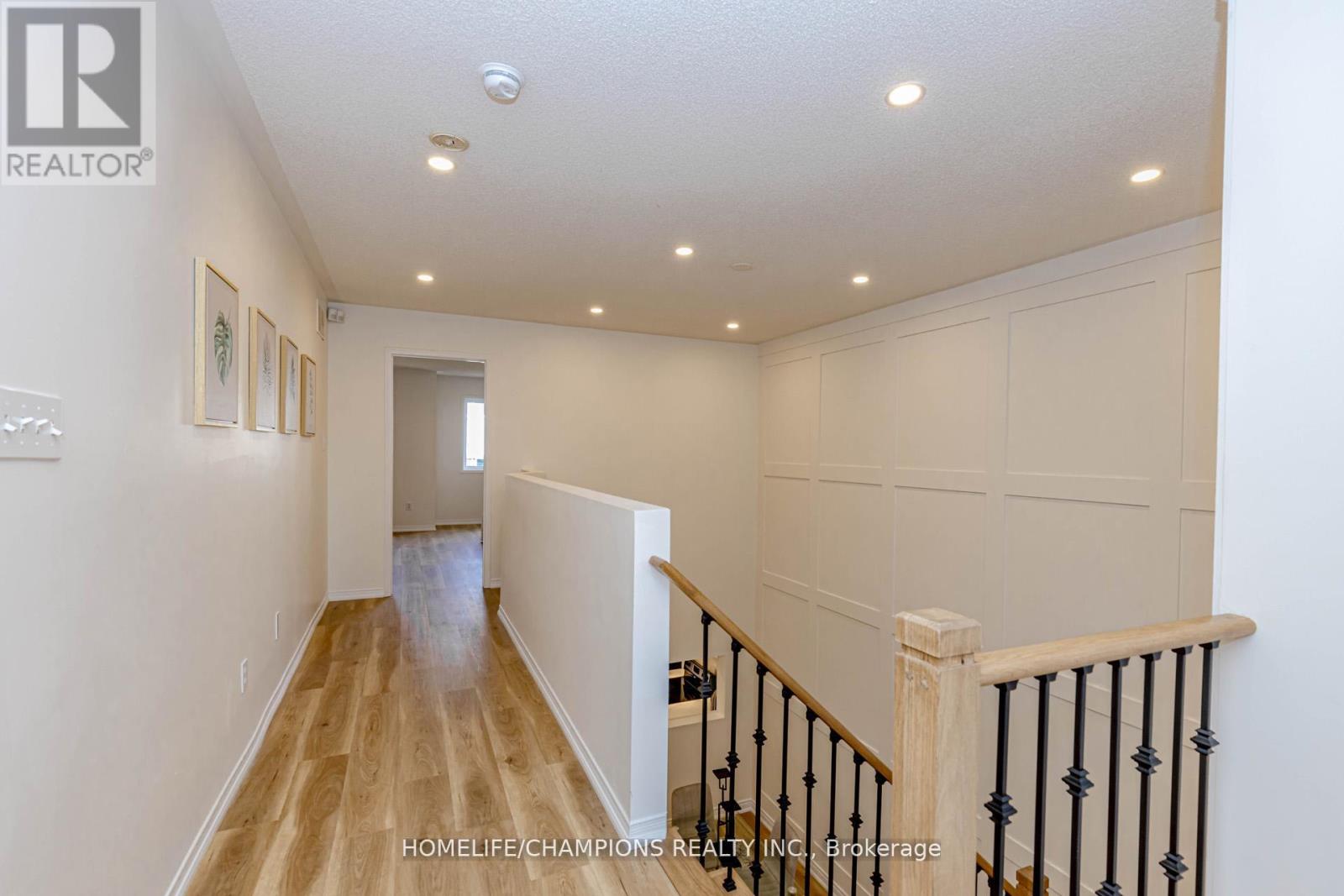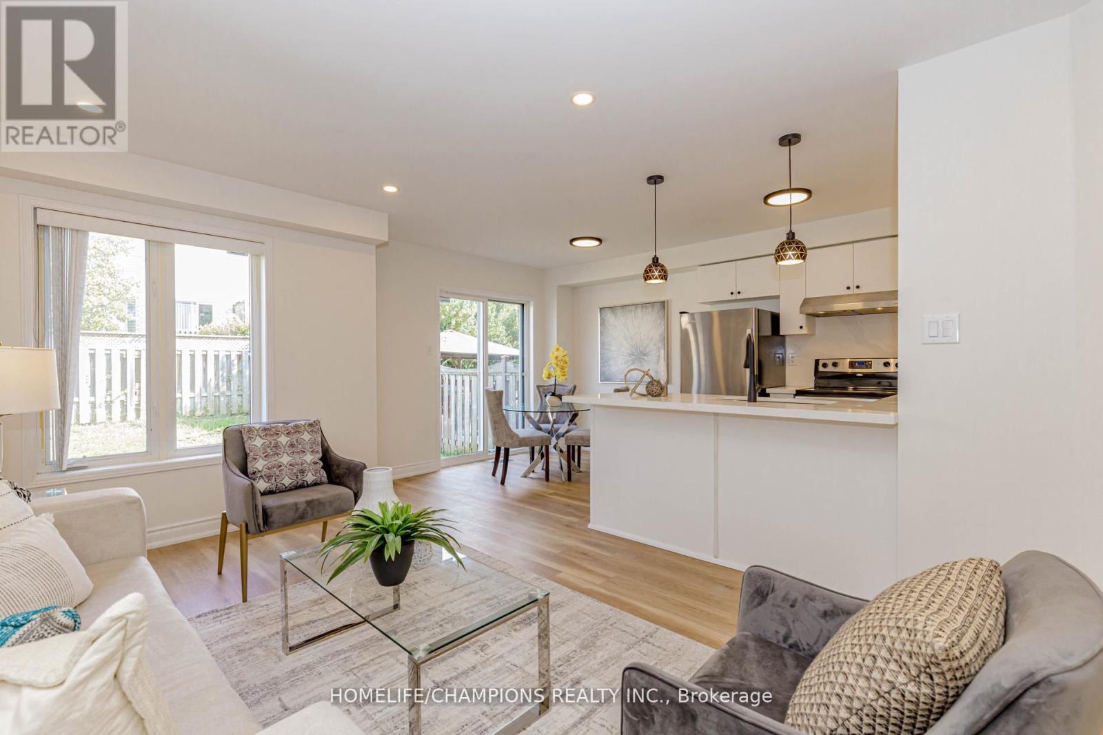 Here's your chance to own an absolutely stunning freehold townhouse - a rare find in one of Ajax's most desirable and convenient locations. Offering the freedom of ownership with no condo fees, this turnkey home combines the ease of low-maintenance living with the privacy and space of a house. Step inside to discover a beautifully updated interior that blends contemporary style with timeless warmth. Soaring 16.5-foot ceilings surrounded by floor to ceiling wainscotting walls on the main level creates a dramatic, gallery-like feel - perfect for entertaining or simply enjoying the open space. This well-designed home features: a functional spacious layout with generously sized rooms throughout; a second-floor open balcony ideal for a morning coffee or evening relaxation; a carpet-free interior professionally painted with modern upgrades throughout; updated kitchen and bathroom finishes, stylish pot lights, fresh decor; and located on a quiet, family-friendly crescent with no through traffic, yet minutes to everything - shopping, transit, community centres, Highway 401, and top-rated schools. This home truly checks all the boxes. Just move in and enjoy! (id:51158)