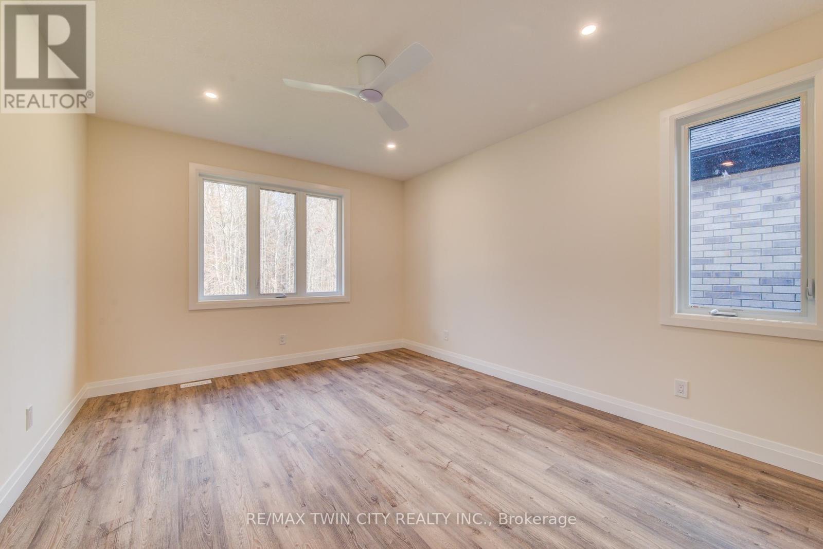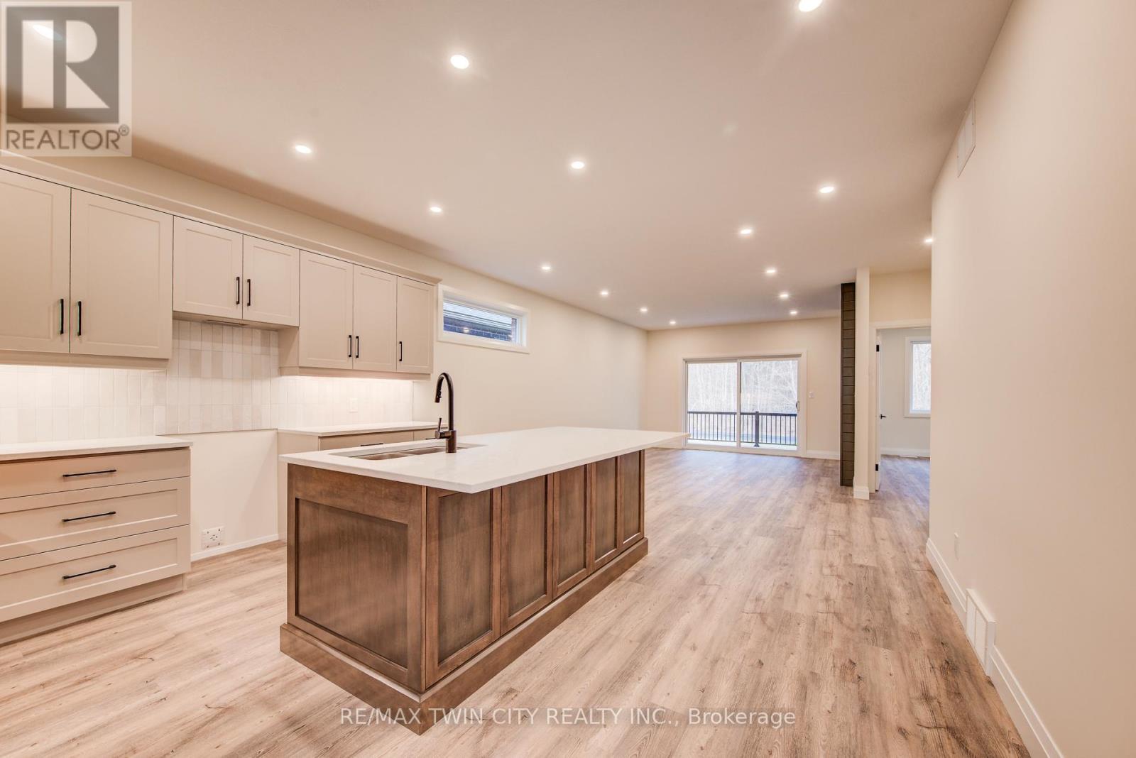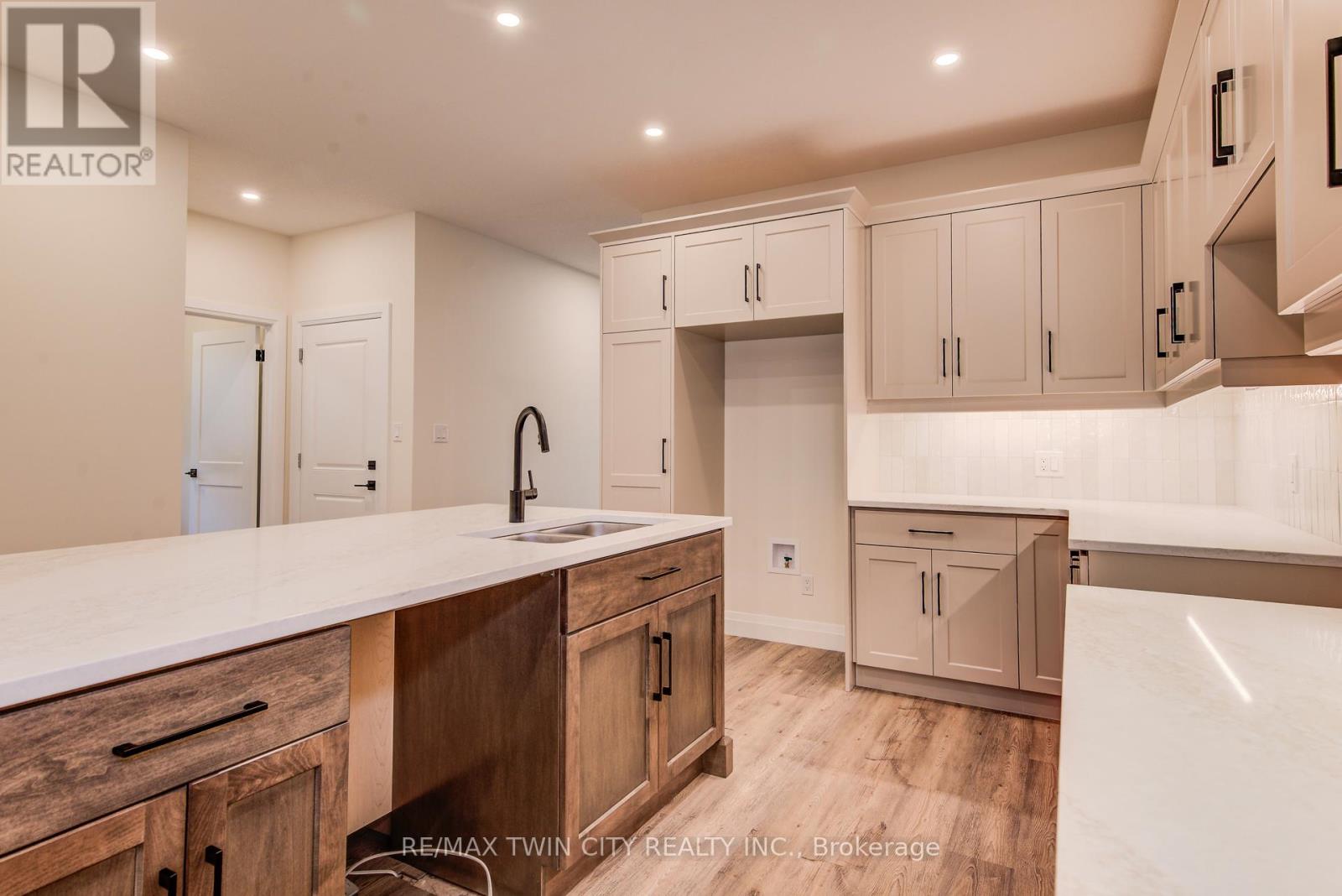 Features include gorgeous hardwood stairs, 9' ceilings on main floor, custom designer kitchen cabinetry including upgraded sink and taps with a beautiful quartz countertop. Dining area overlooks great room with electric fireplace as well as walk out to covered porch. The spacious primary suite has a walk in closet and glass/tile shower in the ensuite. Other upgrades include pot lighting, modern doors and trim, all plumbing fixtures including toilets, carpet free main floor with high quality hard surface flooring. Did I mention this home is well suited for multi generational living with in-law suite potential. The fully finished basement includes a rec room, bedroom and a 3 pc bath. All this on a quiet crescent backing onto forested area. Enjoy the small town living feel that friendly Elmira has to offer with beautiful parks, trails, shopping and amenities all while being only 10 minutes from all that Waterloo and Kitchener have to offer. Expect to be impressed (id:51158)