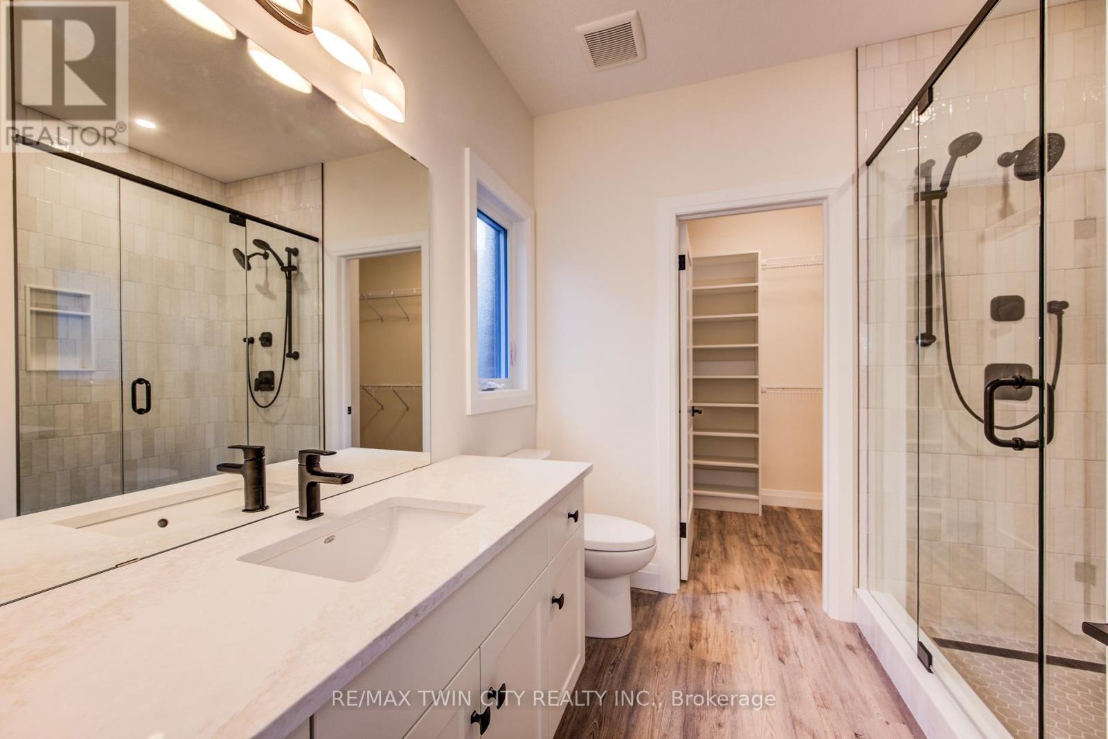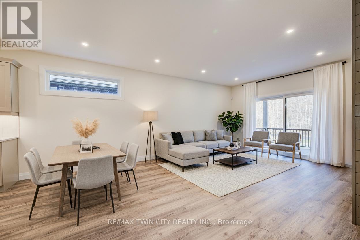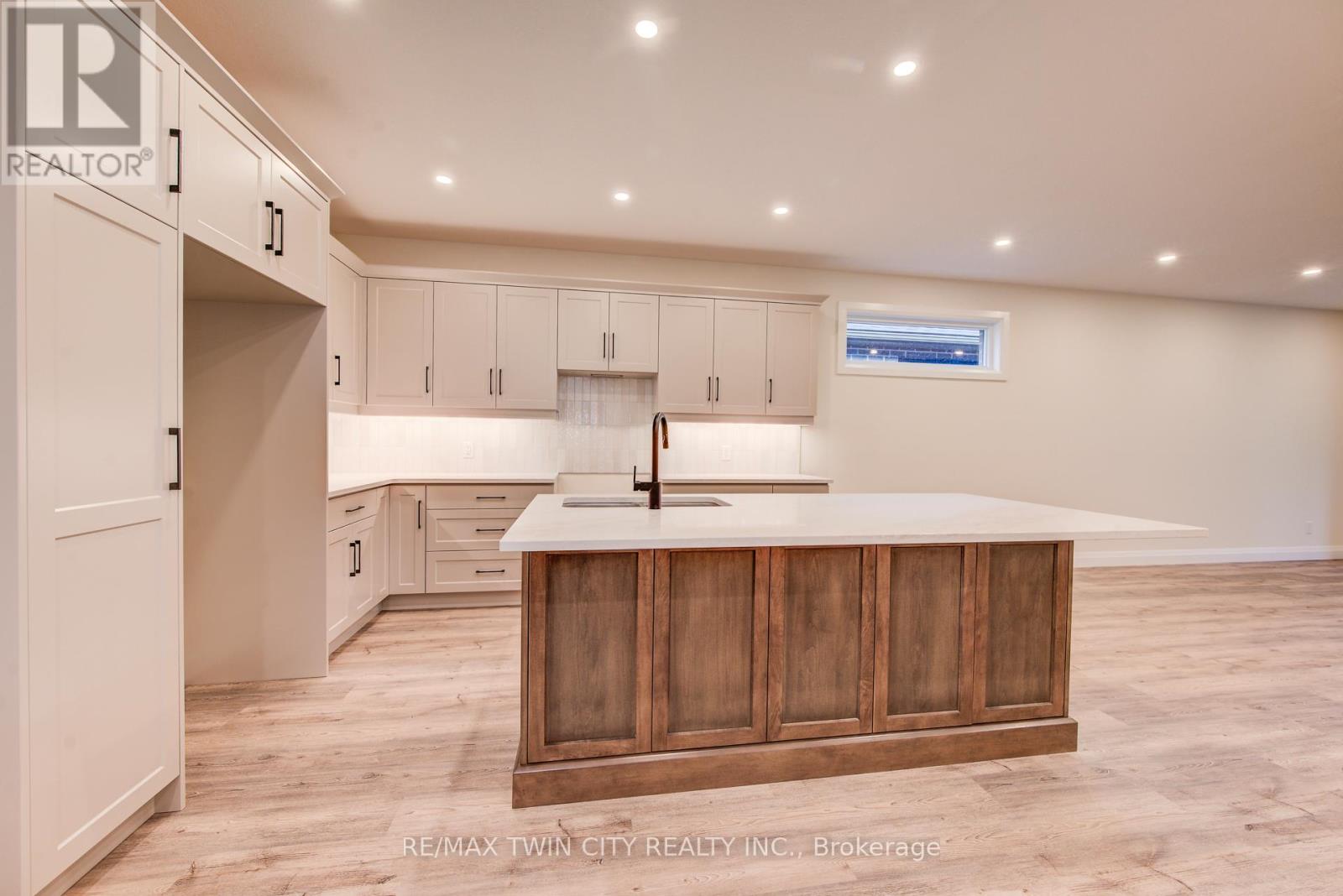 Features include gorgeous hardwood stairs, 9' ceilings on main floor, custom designer kitchen cabinetry including upgraded sink and taps with a beautiful quartz countertop. Dining area overlooks great room with electric fireplace as well as walk out to covered porch. The spacious primary suite has a walk in closet and glass/tile shower in the ensuite. Other upgrades include pot lighting, modern doors and trim, all plumbing fixtures including toilets, carpet free main floor with high quality hard surface flooring. Did I mention this home is well suited for multi generational living with in-law suite potential. The fully finished basement includes a rec room, bedroom and a 3 pc bath. All this on a quiet crescent backing onto forested area. Enjoy the small town living feel that friendly Elmira has to offer with beautiful parks, trails, shopping and amenities all while being only 10 minutes from all that Waterloo and Kitchener have to offer. Expect to be impressed (id:51158)
