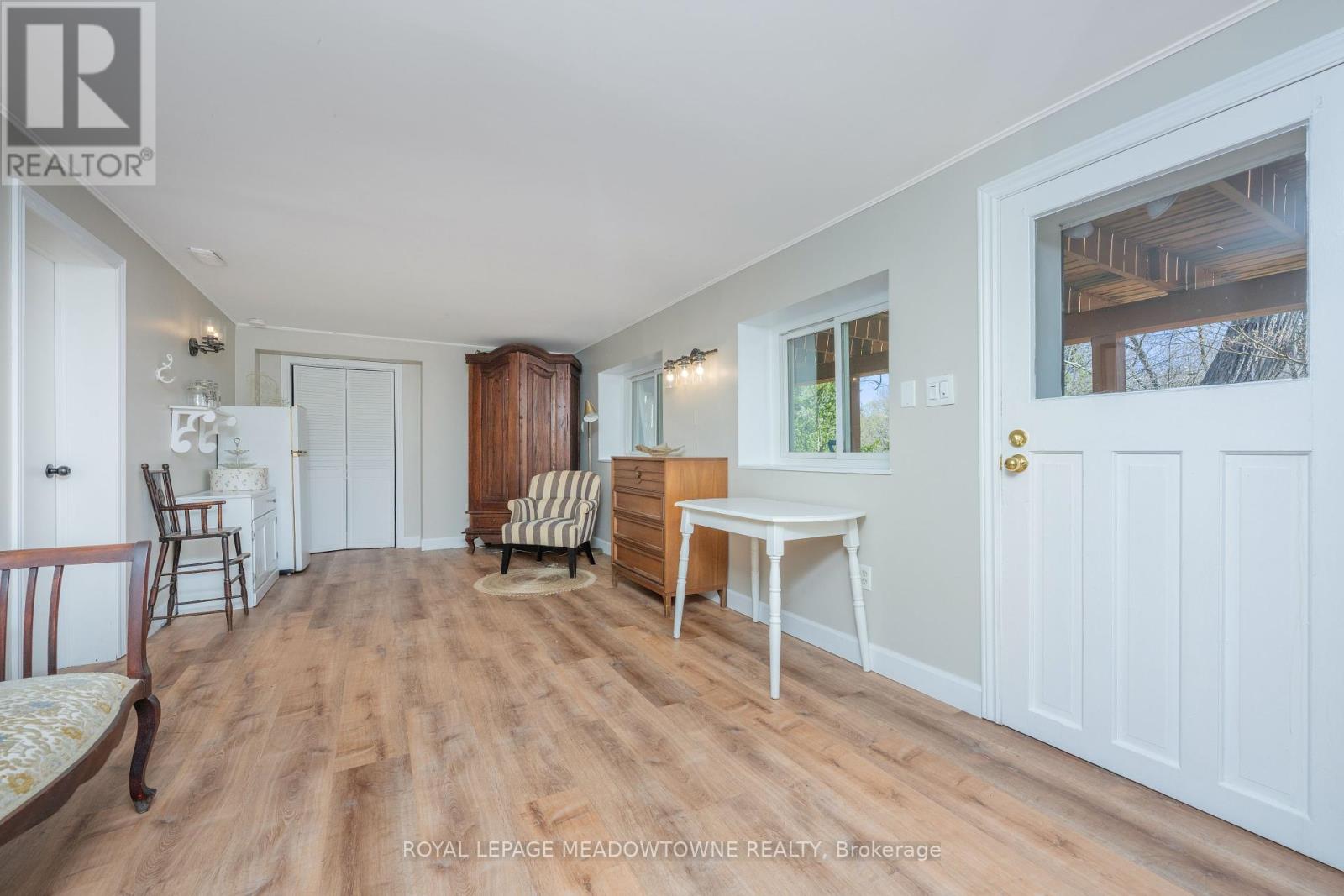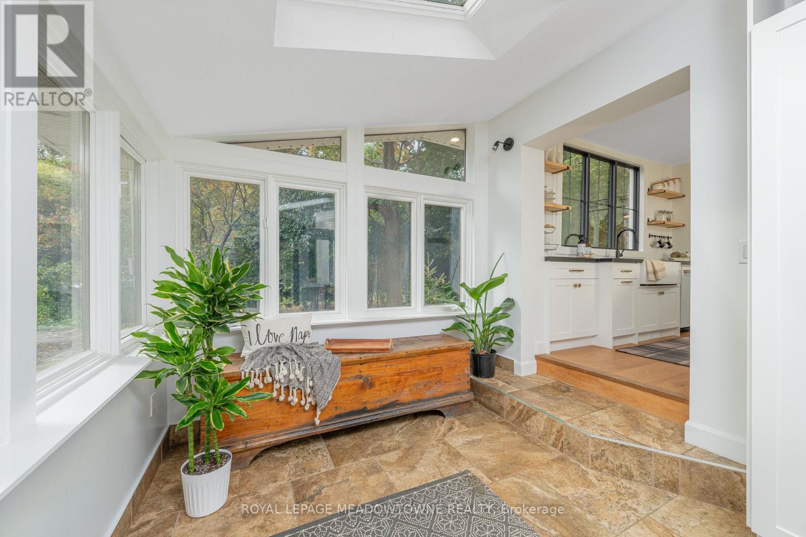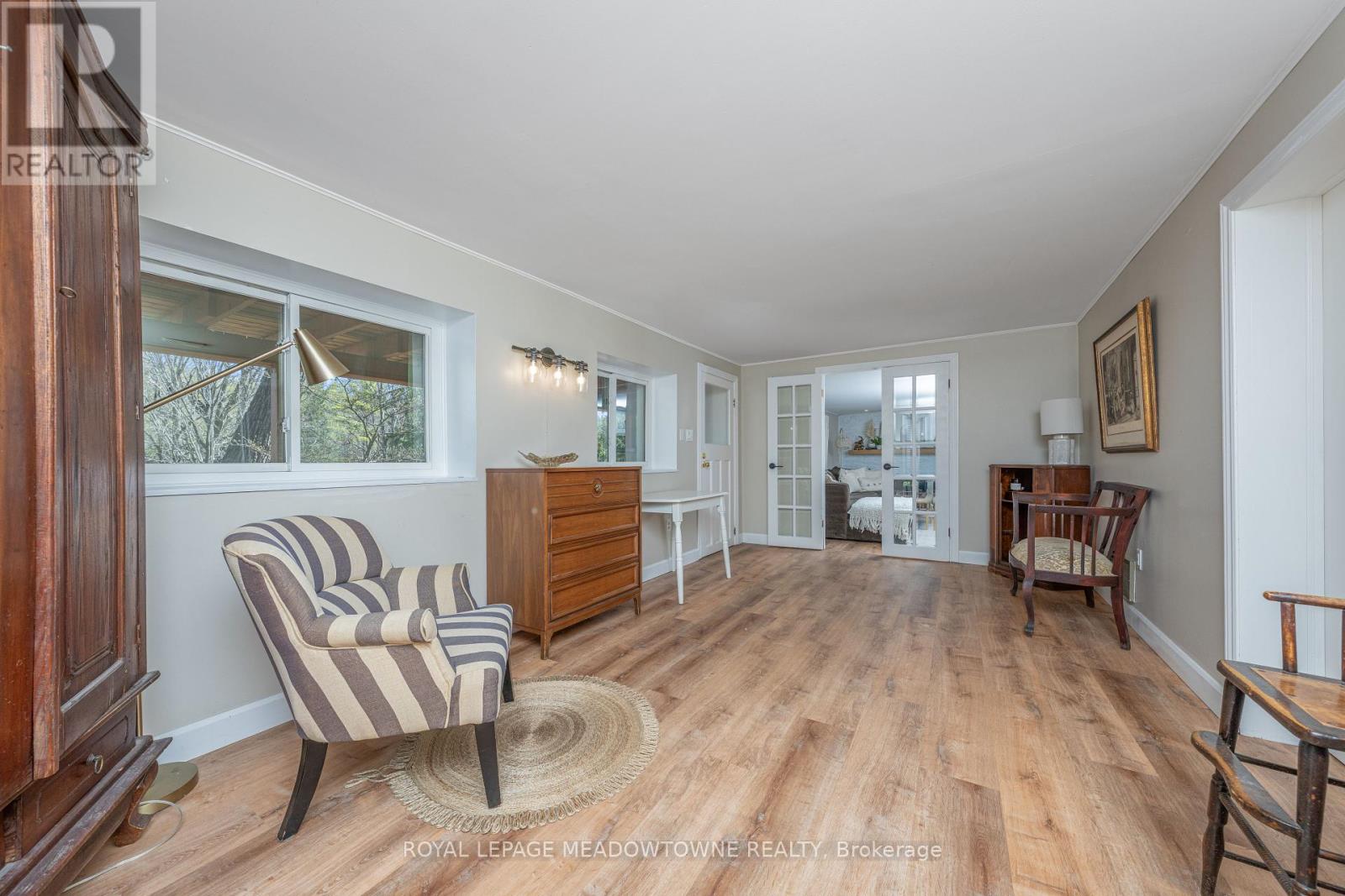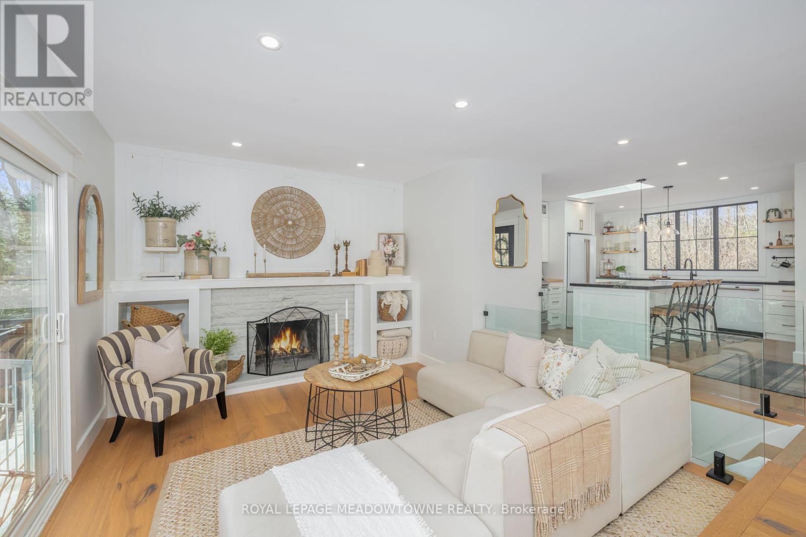 Welcome to this beautifully reimagined 4-bedroom home, privately nestled along a quiet gravel lane in the scenic village of Glen Williams. Set on nearly an acre with uninterrupted, year-round views of the Credit River, this property offers a rare fusion of peaceful nature and modern elegance. Step into the inviting sunroom -- bathed in natural light, its the perfect space to welcome guests, set up a creative home office, or simply relax with a good book. Inside, the main floor features stunning white oak floors and a breezy, open-concept layout that effortlessly connects the kitchen, dining, and living areas -- ideal for both everyday life and memorable entertaining. At the heart of the home, the chef-inspired kitchen combines functionality with elevated design. It boasts top-of-the-line Café appliances, ample cabinetry, and a striking picture window above the sink, framing views of the surrounding landscape. Upstairs, the serene primary suite offers a generous retreat, complete with a contemporary ensuite and space to unwind. Glass railings lead to the fully finished walkout basement, where abundant natural light and luxury vinyl plank flooring create a warm, open ambiance. This level includes a spacious family room, an additional bedroom and full bathroom, plus a versatile workshop area that could easily serve as a guest suite or creative studio. Outside, expansive decks provide a front-row seat to the river's beauty -- perfect for morning coffee, weekend lounging, or evenings under the stars. Offering the best of both worlds, this secluded escape is just seven minutes from the Georgetown GO Station, putting city access within easy reach while enjoying the charm and tranquility of Glen Williams. (id:51158)