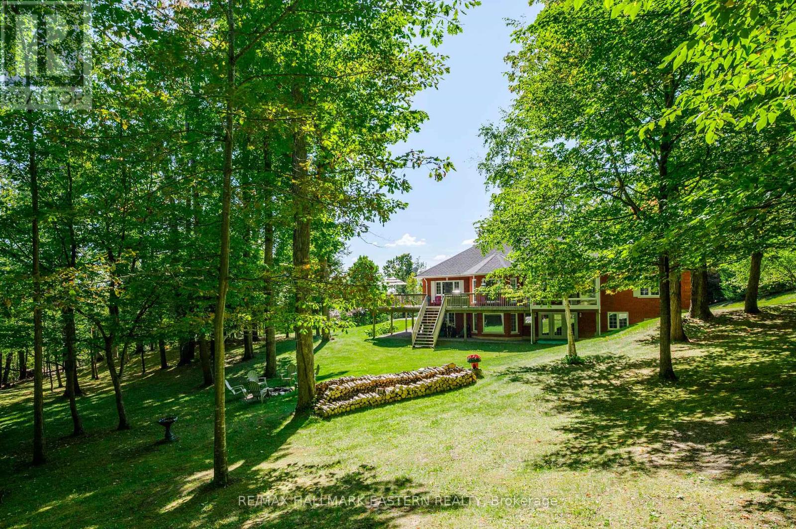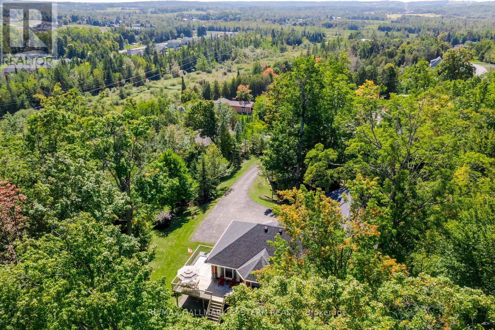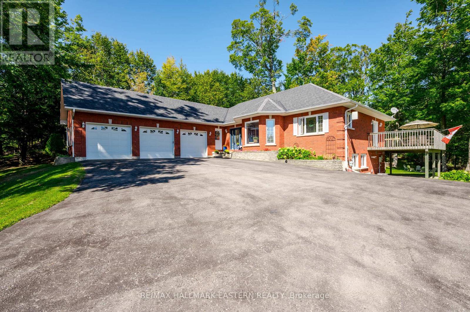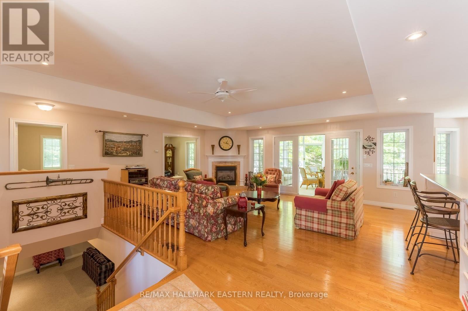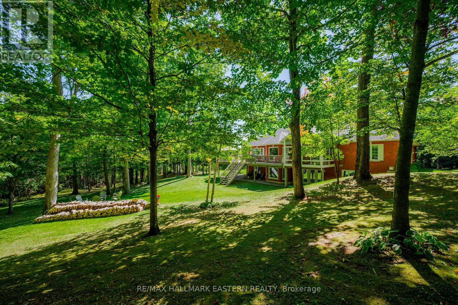 Welcome to this custom-built, all-brick executive bungalow, offering nearly 4,000 sq ft of impeccably designed living space on a breathtaking treed and landscaped property. Privately set surrounded by nature, this residence blends refined elegance with everyday functionality. Step inside to a sun-filled, open-concept great room, where tray ceilings and a cozy gas fireplace set the stage for gatherings. The adjoining formal dining area flows seamlessly into the gourmet eat-in kitchen, complete with a centre island, built-in wine racks, and thoughtful finishes tailored to the culinary enthusiast. A wall of windows draws you into the three-season sunroom, a serene retreat with a walkout to the expansive wrap-around deck perfect for soaking in the beauty of the surrounding landscape. The primary suite is private featuring 5-piece ensuite with heated floors, a walk-in closet, and another walkout to the deck. A second bedroom enjoys private access to the main 4-piece bath, while a versatile den/office, convenient 2-piece powder room, and main-floor laundry add to the homes thoughtful design. The triple-car garage is fully insulated and accessible through the mudroom, offering convenience. The lower level recreation room features a second gas fireplace, and games area with pool table perfect for entertaining. The third bedroom connects to 3-piece bath. Another walkout takes you directly to the landscaped backyard oasis. This remarkable property offers privacy, tranquility, and beauty at every turn. Mature trees, curated gardens, and abundant wildlife create a peaceful backdrop for daily living, making this an ideal home for those who value both style and serenity. Bethany is a picturesque village known for its rolling hills, trails, and warm community feel. With quick access to Highway 7A and 115, commuters will appreciate the easy connections to Peterborough, Durham, and the GTA. (id:51158)