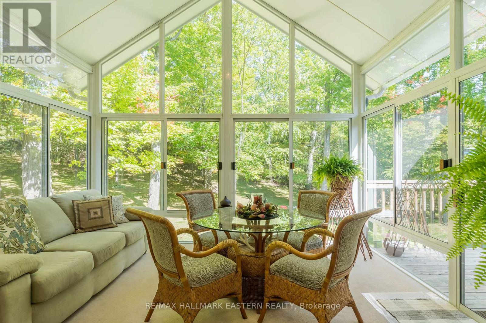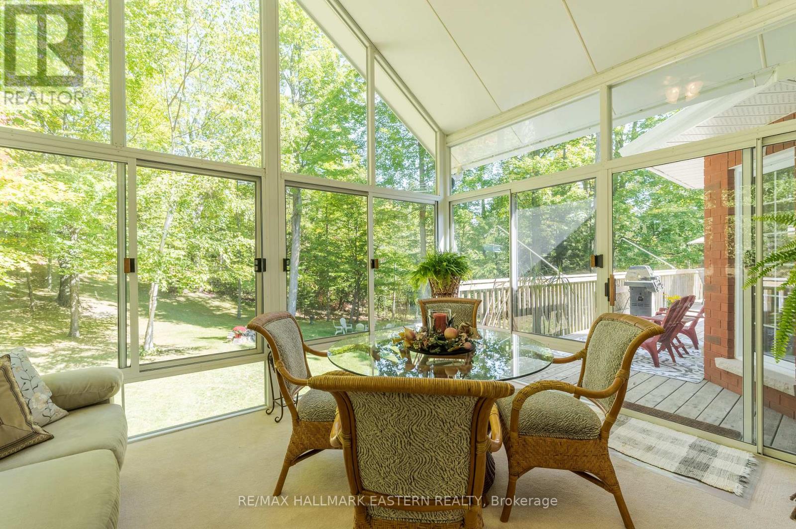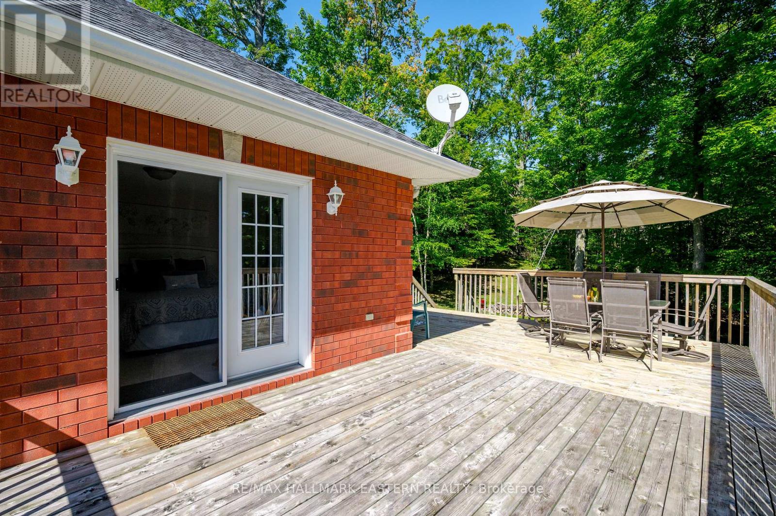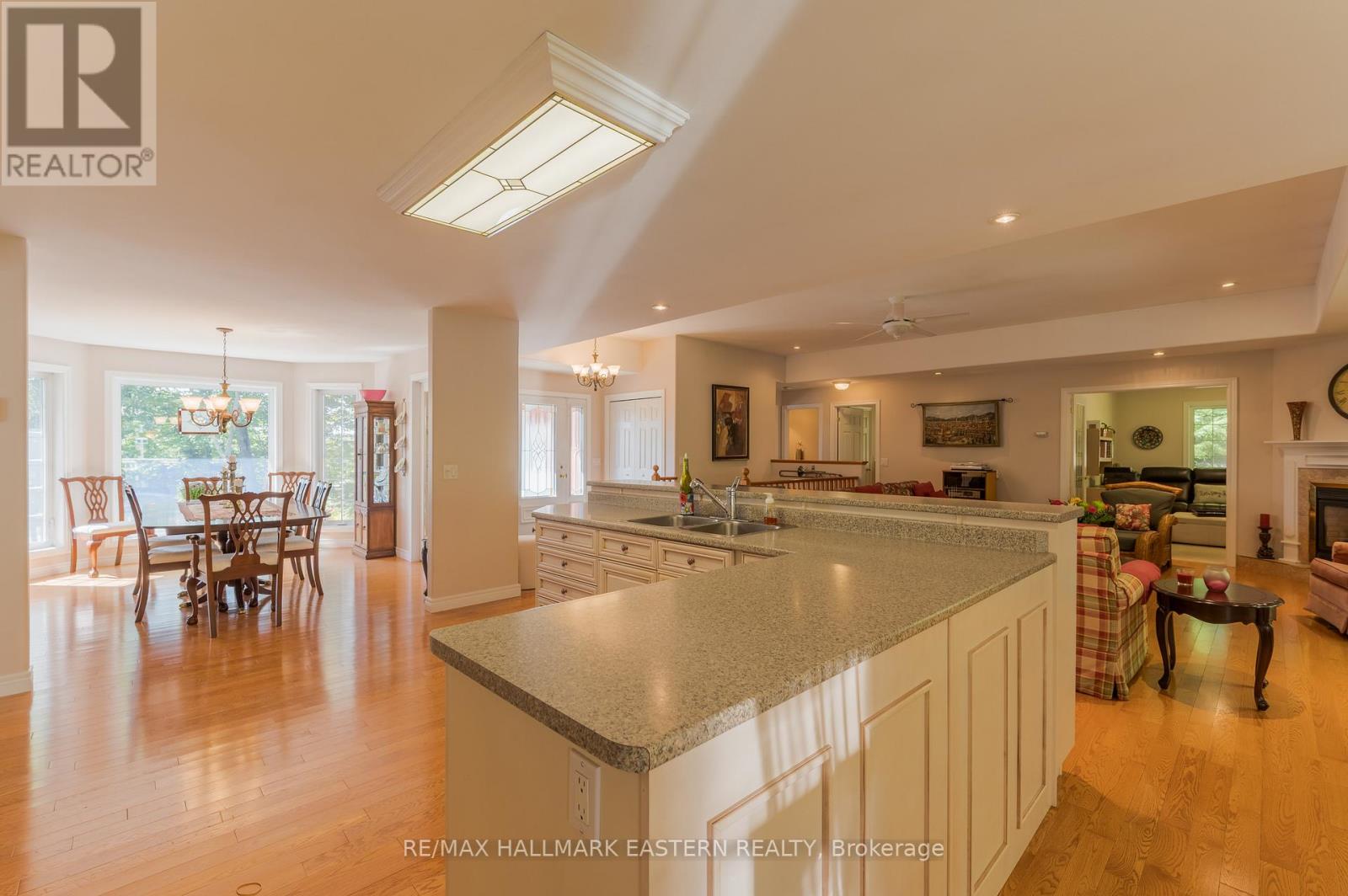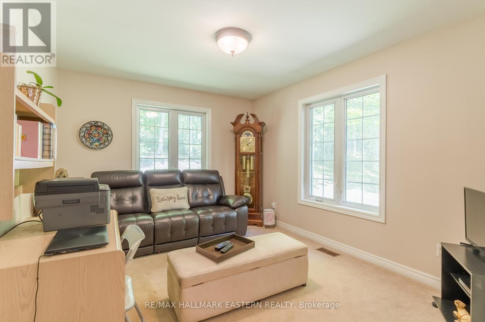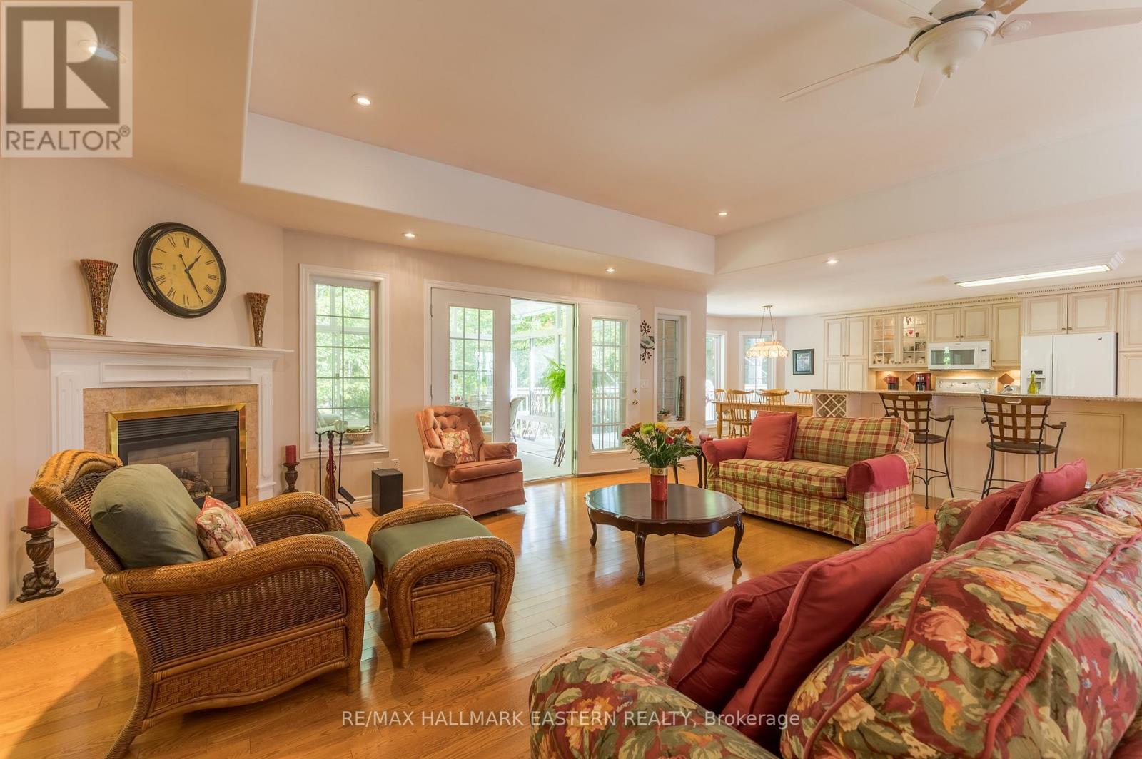 Welcome to this custom-built, all-brick executive bungalow, offering nearly 4,000 sq ft of impeccably designed living space on a breathtaking treed and landscaped property. Privately set surrounded by nature, this residence blends refined elegance with everyday functionality. Step inside to a sun-filled, open-concept great room, where tray ceilings and a cozy gas fireplace set the stage for gatherings. The adjoining formal dining area flows seamlessly into the gourmet eat-in kitchen, complete with a centre island, built-in wine racks, and thoughtful finishes tailored to the culinary enthusiast. A wall of windows draws you into the three-season sunroom, a serene retreat with a walkout to the expansive wrap-around deck perfect for soaking in the beauty of the surrounding landscape. The primary suite is private featuring 5-piece ensuite with heated floors, a walk-in closet, and another walkout to the deck. A second bedroom enjoys private access to the main 4-piece bath, while a versatile den/office, convenient 2-piece powder room, and main-floor laundry add to the homes thoughtful design. The triple-car garage is fully insulated and accessible through the mudroom, offering convenience. The lower level recreation room features a second gas fireplace, and games area with pool table perfect for entertaining. The third bedroom connects to 3-piece bath. Another walkout takes you directly to the landscaped backyard oasis. This remarkable property offers privacy, tranquility, and beauty at every turn. Mature trees, curated gardens, and abundant wildlife create a peaceful backdrop for daily living, making this an ideal home for those who value both style and serenity. Bethany is a picturesque village known for its rolling hills, trails, and warm community feel. With quick access to Highway 7A and 115, commuters will appreciate the easy connections to Peterborough, Durham, and the GTA. (id:51158)