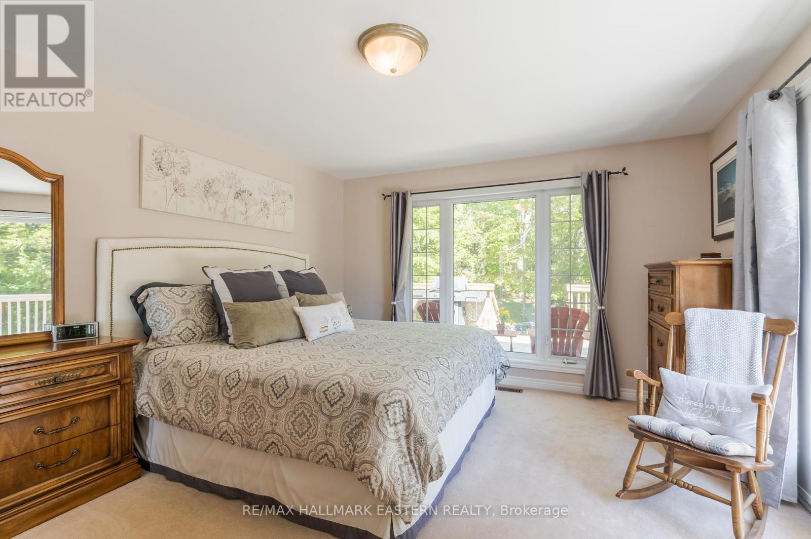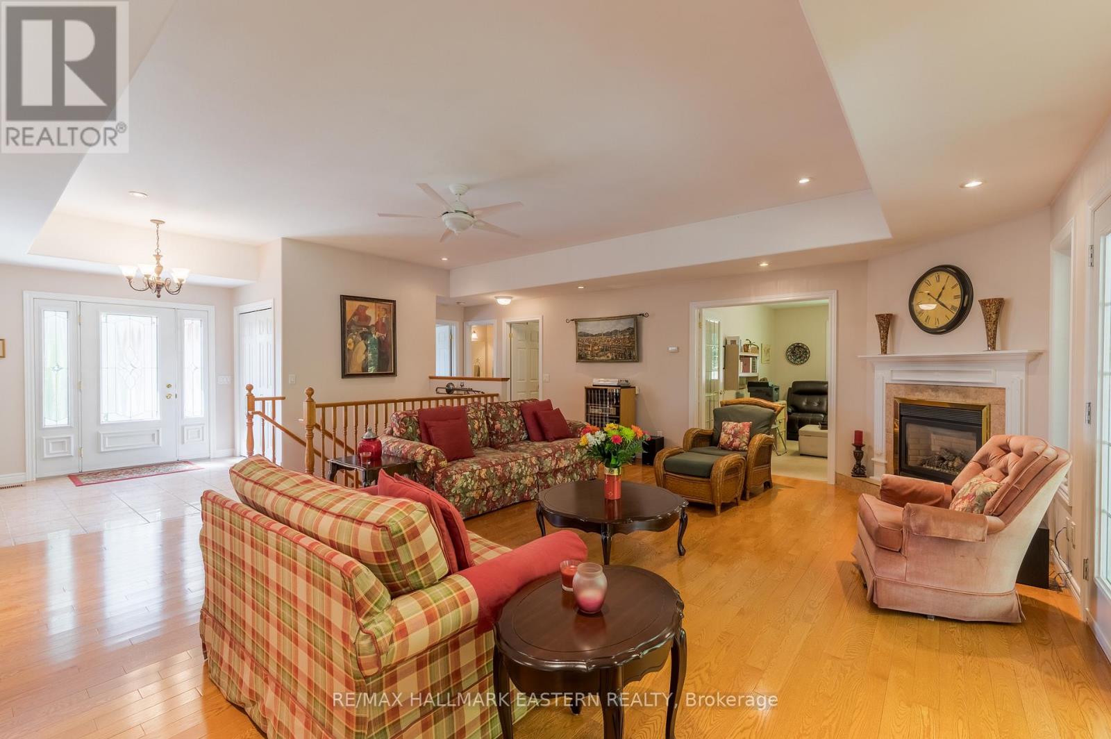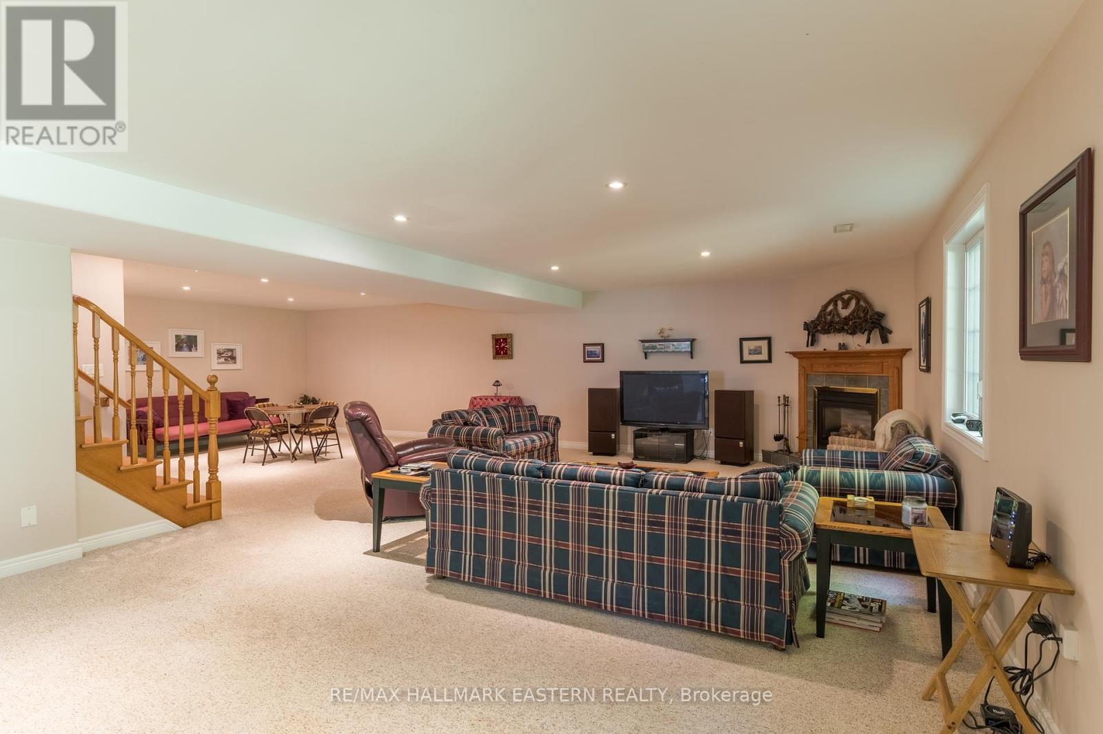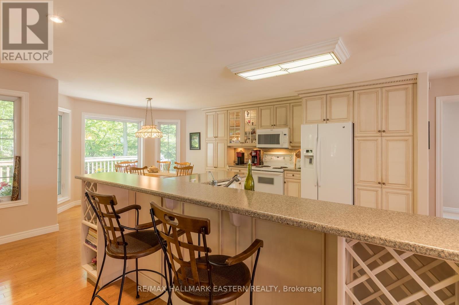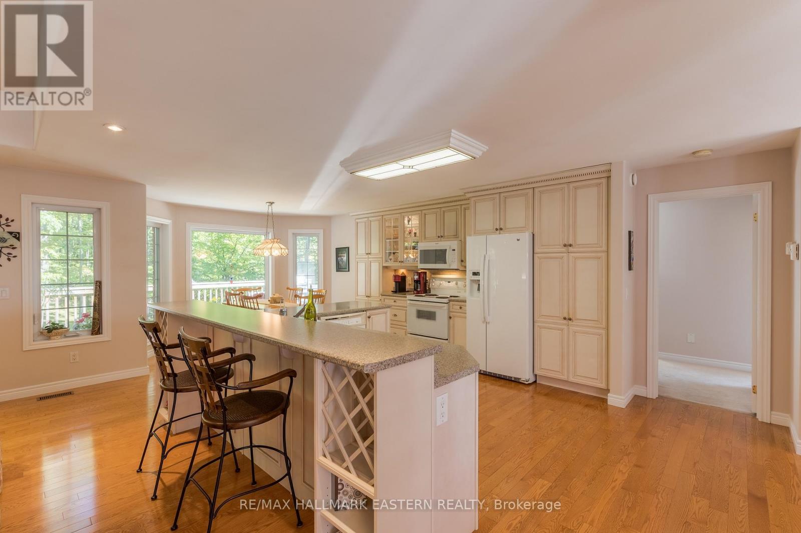 Welcome to this custom-built, all-brick executive bungalow, offering nearly 4,000 sq ft of impeccably designed living space on a breathtaking treed and landscaped property. Privately set surrounded by nature, this residence blends refined elegance with everyday functionality. Step inside to a sun-filled, open-concept great room, where tray ceilings and a cozy gas fireplace set the stage for gatherings. The adjoining formal dining area flows seamlessly into the gourmet eat-in kitchen, complete with a centre island, built-in wine racks, and thoughtful finishes tailored to the culinary enthusiast. A wall of windows draws you into the three-season sunroom, a serene retreat with a walkout to the expansive wrap-around deck perfect for soaking in the beauty of the surrounding landscape. The primary suite is private featuring 5-piece ensuite with heated floors, a walk-in closet, and another walkout to the deck. A second bedroom enjoys private access to the main 4-piece bath, while a versatile den/office, convenient 2-piece powder room, and main-floor laundry add to the homes thoughtful design. The triple-car garage is fully insulated and accessible through the mudroom, offering convenience. The lower level recreation room features a second gas fireplace, and games area with pool table perfect for entertaining. The third bedroom connects to 3-piece bath. Another walkout takes you directly to the landscaped backyard oasis. This remarkable property offers privacy, tranquility, and beauty at every turn. Mature trees, curated gardens, and abundant wildlife create a peaceful backdrop for daily living, making this an ideal home for those who value both style and serenity. Bethany is a picturesque village known for its rolling hills, trails, and warm community feel. With quick access to Highway 7A and 115, commuters will appreciate the easy connections to Peterborough, Durham, and the GTA. (id:51158)