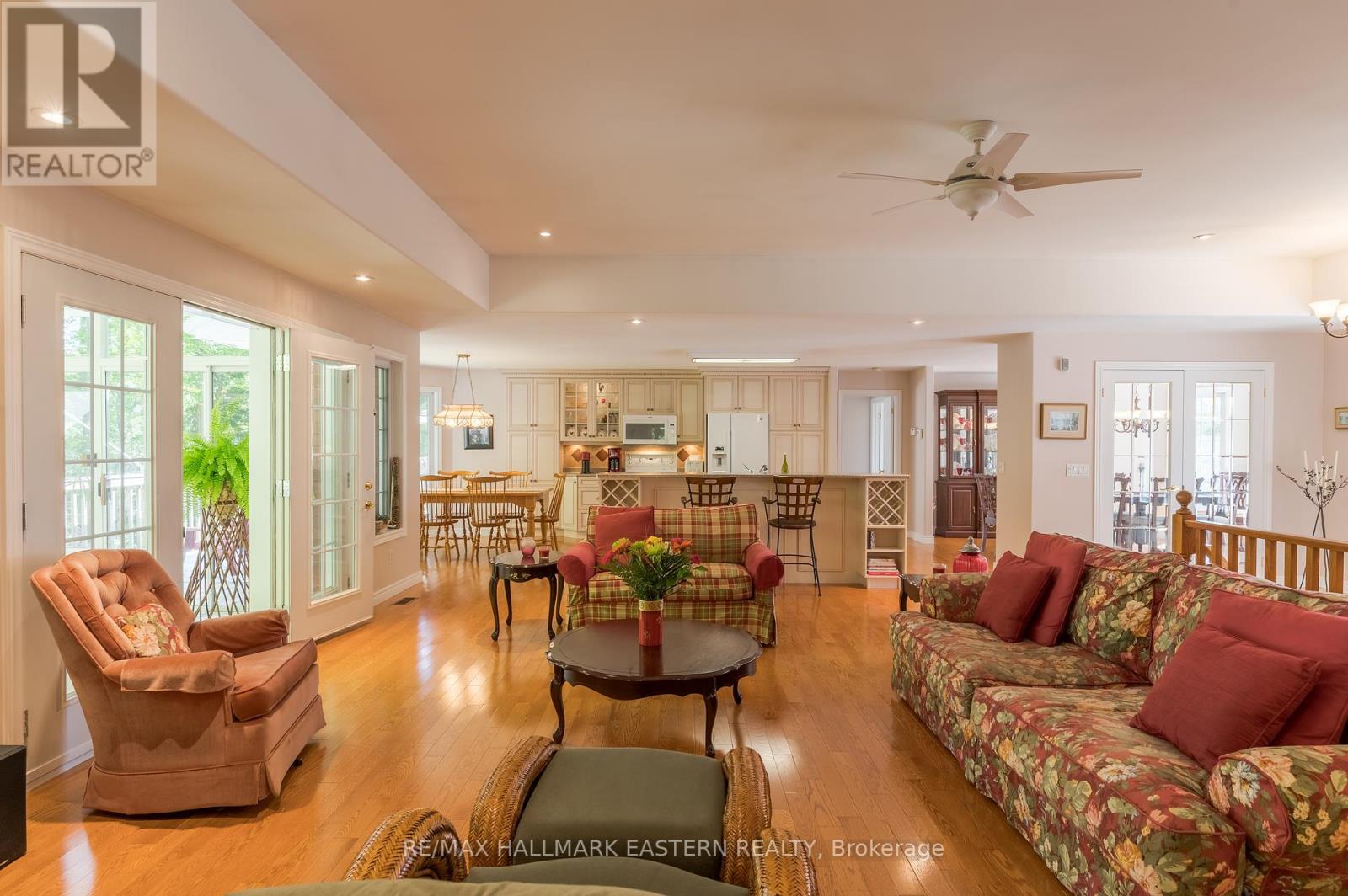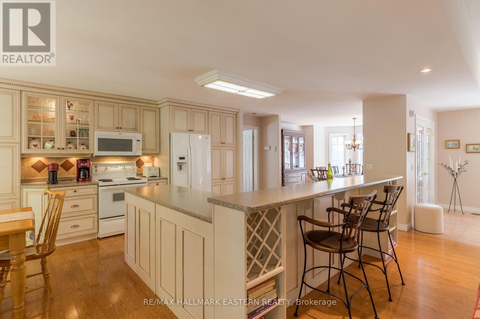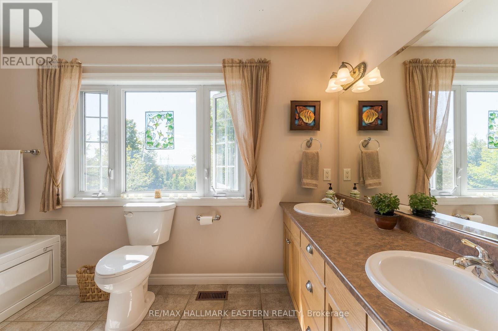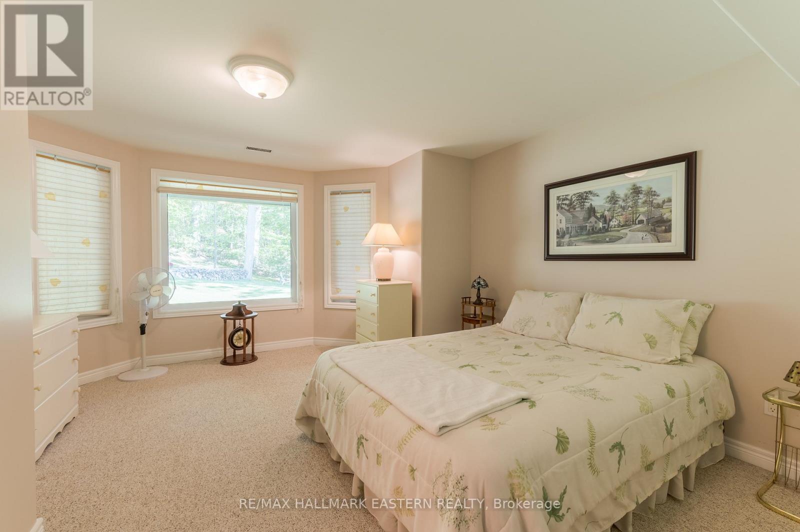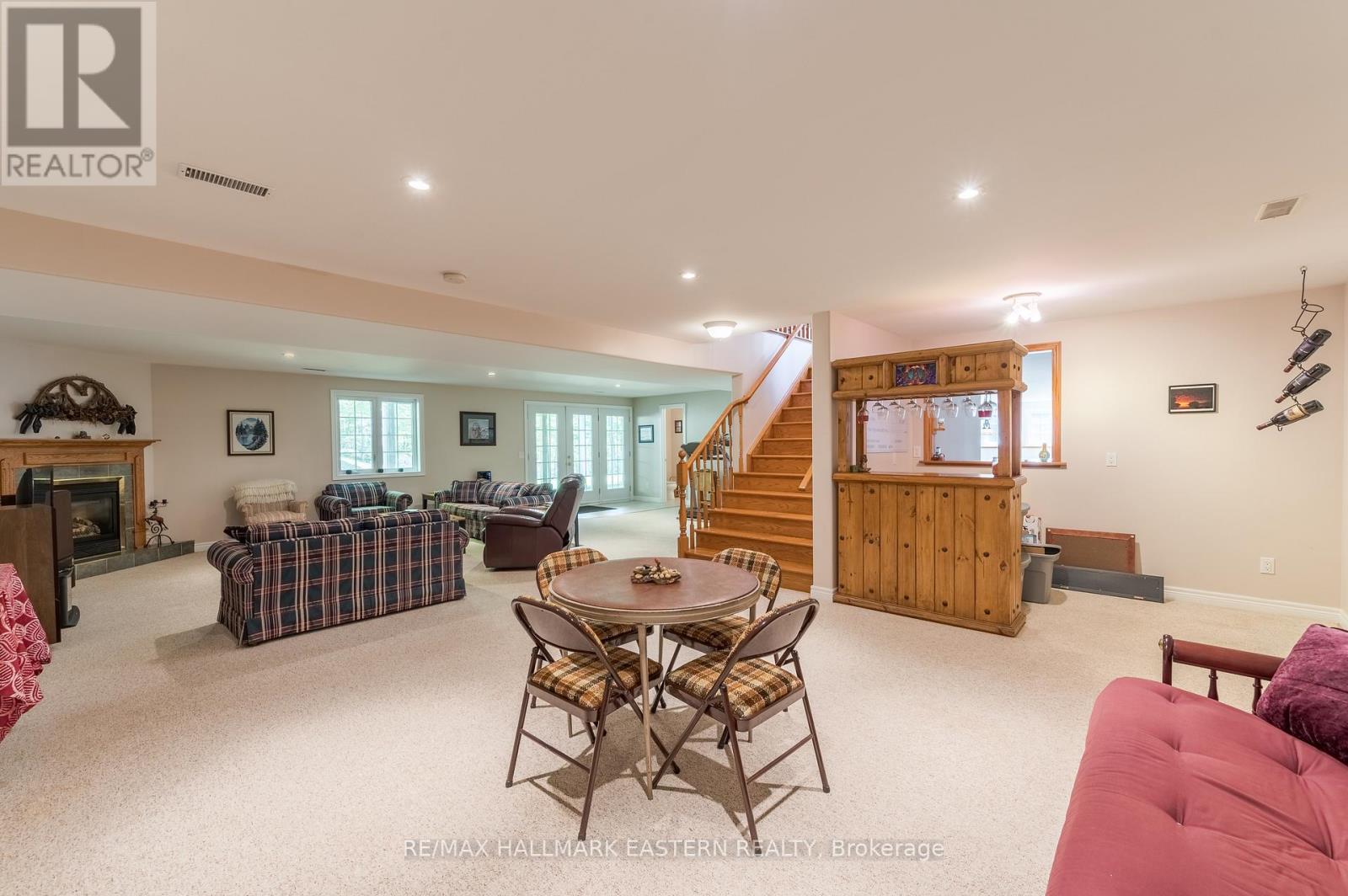 Welcome to this custom-built, all-brick executive bungalow, offering nearly 4,000 sq ft of impeccably designed living space on a breathtaking treed and landscaped property. Privately set surrounded by nature, this residence blends refined elegance with everyday functionality. Step inside to a sun-filled, open-concept great room, where tray ceilings and a cozy gas fireplace set the stage for gatherings. The adjoining formal dining area flows seamlessly into the gourmet eat-in kitchen, complete with a centre island, built-in wine racks, and thoughtful finishes tailored to the culinary enthusiast. A wall of windows draws you into the three-season sunroom, a serene retreat with a walkout to the expansive wrap-around deck perfect for soaking in the beauty of the surrounding landscape. The primary suite is private featuring 5-piece ensuite with heated floors, a walk-in closet, and another walkout to the deck. A second bedroom enjoys private access to the main 4-piece bath, while a versatile den/office, convenient 2-piece powder room, and main-floor laundry add to the homes thoughtful design. The triple-car garage is fully insulated and accessible through the mudroom, offering convenience. The lower level recreation room features a second gas fireplace, and games area with pool table perfect for entertaining. The third bedroom connects to 3-piece bath. Another walkout takes you directly to the landscaped backyard oasis. This remarkable property offers privacy, tranquility, and beauty at every turn. Mature trees, curated gardens, and abundant wildlife create a peaceful backdrop for daily living, making this an ideal home for those who value both style and serenity. Bethany is a picturesque village known for its rolling hills, trails, and warm community feel. With quick access to Highway 7A and 115, commuters will appreciate the easy connections to Peterborough, Durham, and the GTA. (id:51158)