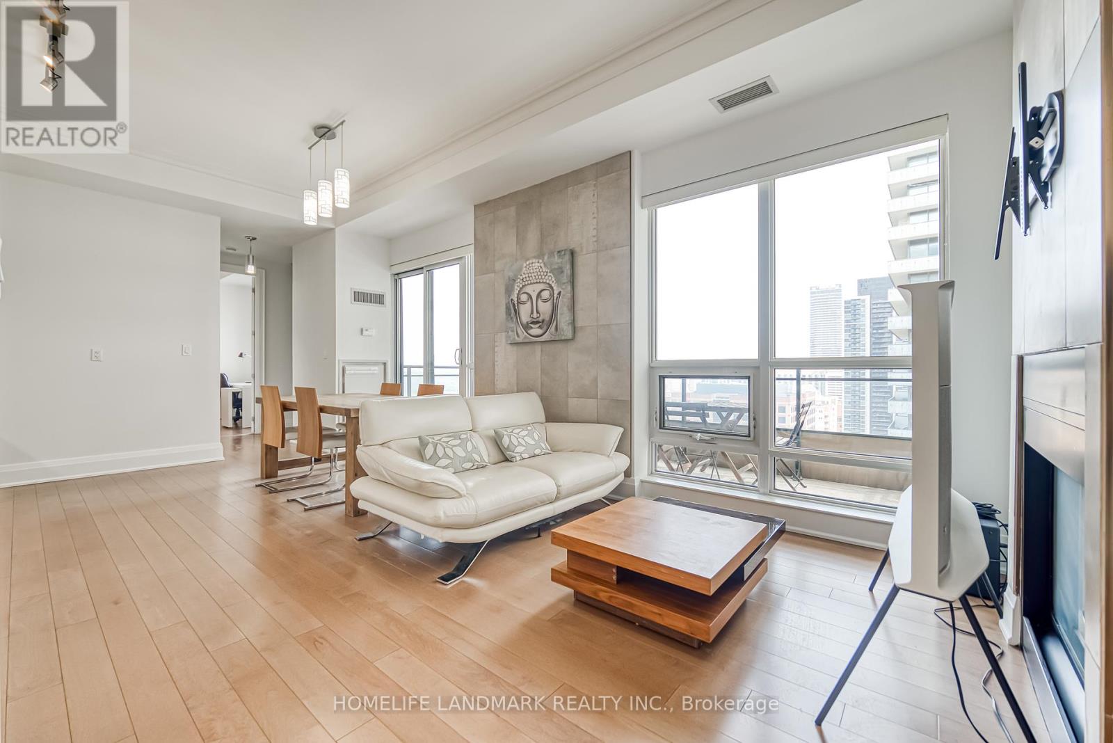 $1,135.58 MonthlyLuxurious 2-Bed + Den in the Heart of Bloor-Yorkville for sale. Welcome to this rare and refined 2-bedroom, 2-bathroom lower Penthouse suite with spacious den, offering approx. 1,120 sq.ft. of interior space plus two private balconies each with gas, water, and electrical lines for seamless indoor-outdoor living. One of only three suites on the floor, this split-bedroom layout ensures privacy while providing an expansive open-concept living area, ideal for entertaining or relaxing.Interior highlights include 10 ceilings, custom Downsview Kitchen cabinetry, marble countertops & backsplash, SS appliances , two-way gas fireplace, pot lights, crown moulding, elegant baseboards, and hardwood floors throughout. The versatile den is perfect as a home office or media room.Located just steps from Yonge & Bloor, with direct access to subway lines, world-class shopping, dining, and cultural destinations. A sophisticated urban sanctuary in one of Torontos most prestigious neighbourhoods. One parking and locker included (id:51158)