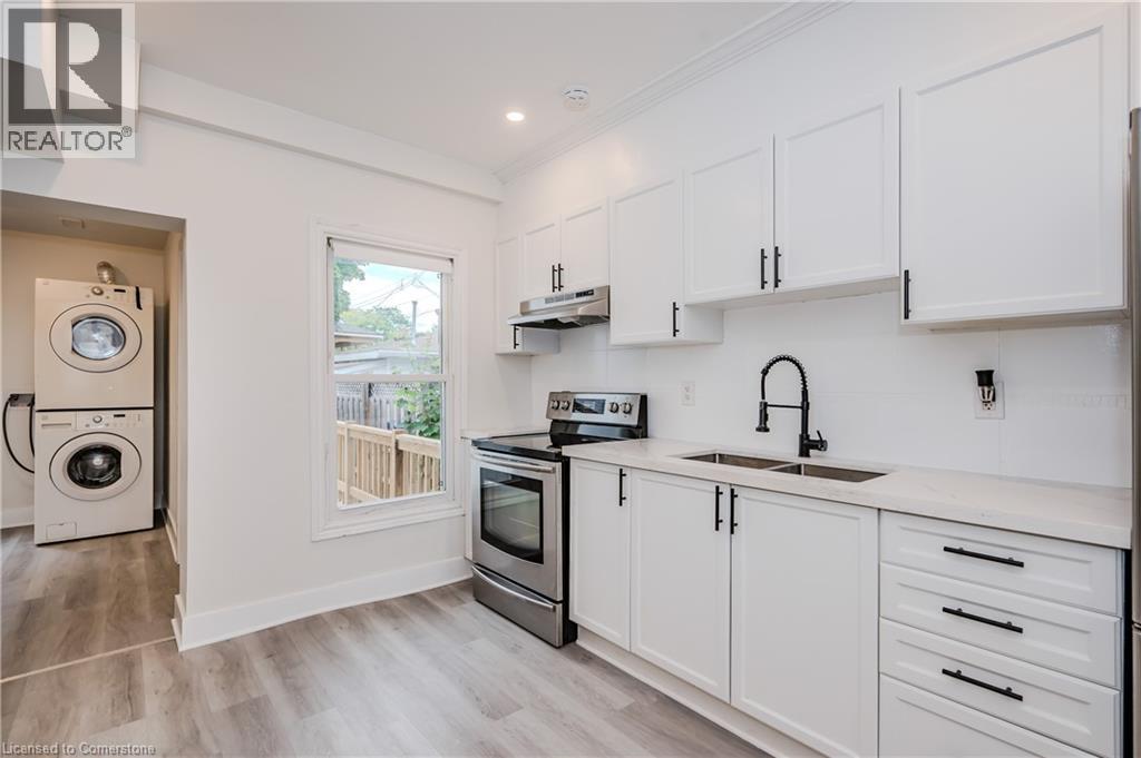 Welcome to your dream home! This newly renovated gem boasts modern sophistication and convenience in every corner. Step into an open concept layout, illuminated by energy-efficient LED pot lights, creating a warm and inviting ambiance throughout. The heart of this home is the stylish kitchen featuring sleek quartz countertops, perfect for whipping up culinary delights and hosting gatherings with friends and family. With 2 bedrooms plus a versatile room on the main floor, you have the flexibility to use it as an office for remote work or as a cozy third bedroom to accommodate guests or family members. Indulge in the luxury of a brand new washroom complete with water-efficient fixtures, ensuring both sustainability and comfort. Convenience is key with main floor laundry facilities, making chores a breeze. Step outside onto your brand new deck (2024), where you can simply unwind and soak up the sunshine in the large price space. The freshly laid sod adds to the charm of the outdoor space, providing a lush backdrop for relaxation and entertainment. Located within walking distance to grocery stores and shopping at The Centre on Barton. This home offers the ultimate in convenience and accessibility. Perfect for first-time buyers or those seeking a cozy retreat in a vibrant community. Don't miss your chance to make this your forever home. Designated front parking on street w/ city permit is available! Updated Electrical & Plumbing, Roof (2020)+(2024 for the back extension and Washer and Dryer) Bathroom (2024), Deck (2024) New Sod (2024), deep lot with private backyard! Located within walking distance to grocery stores and shopping at The Centre on Barton. This home offers the ultimate in convenience and accessibility. Schedule a viewing today! (id:51158)