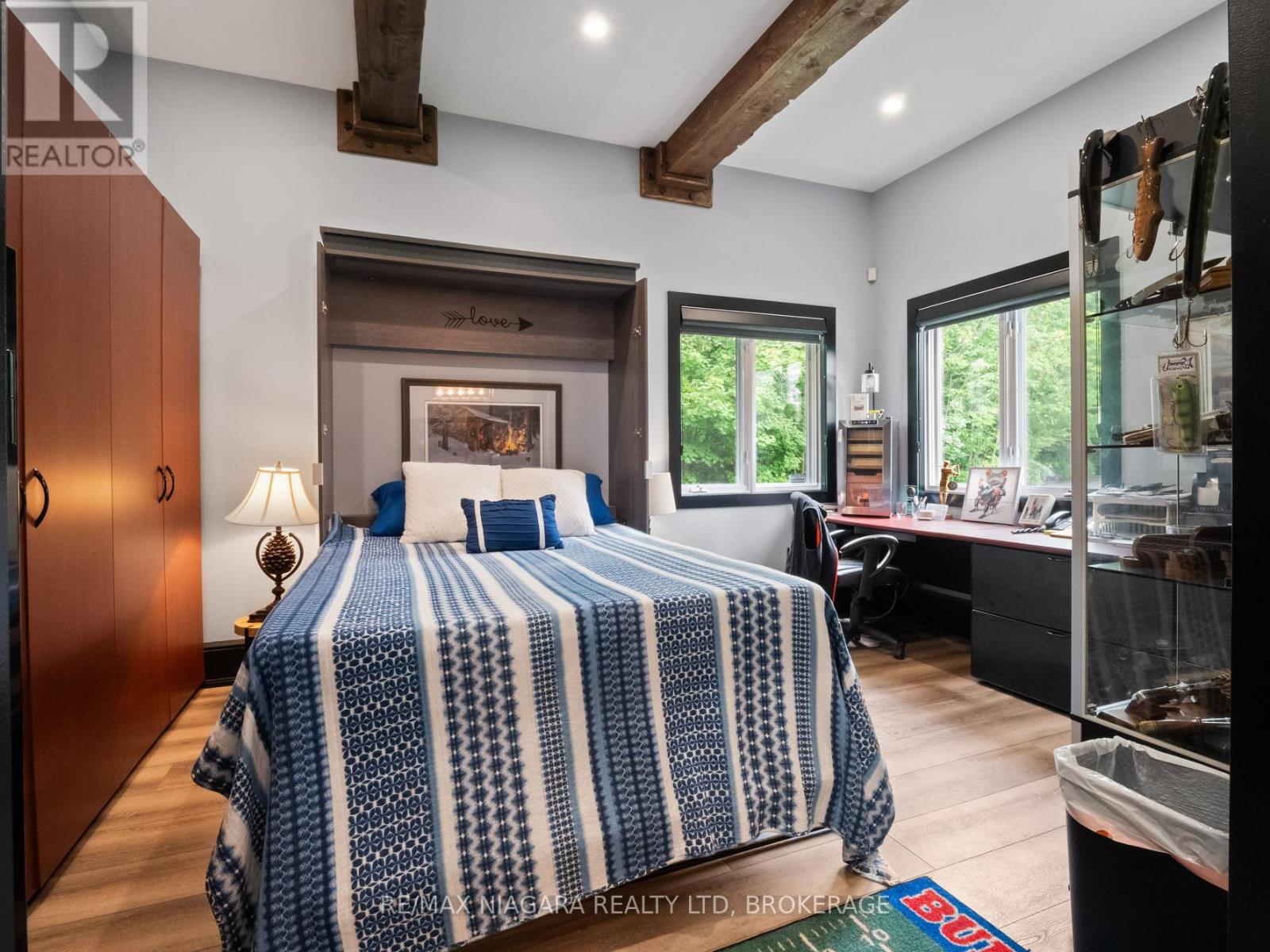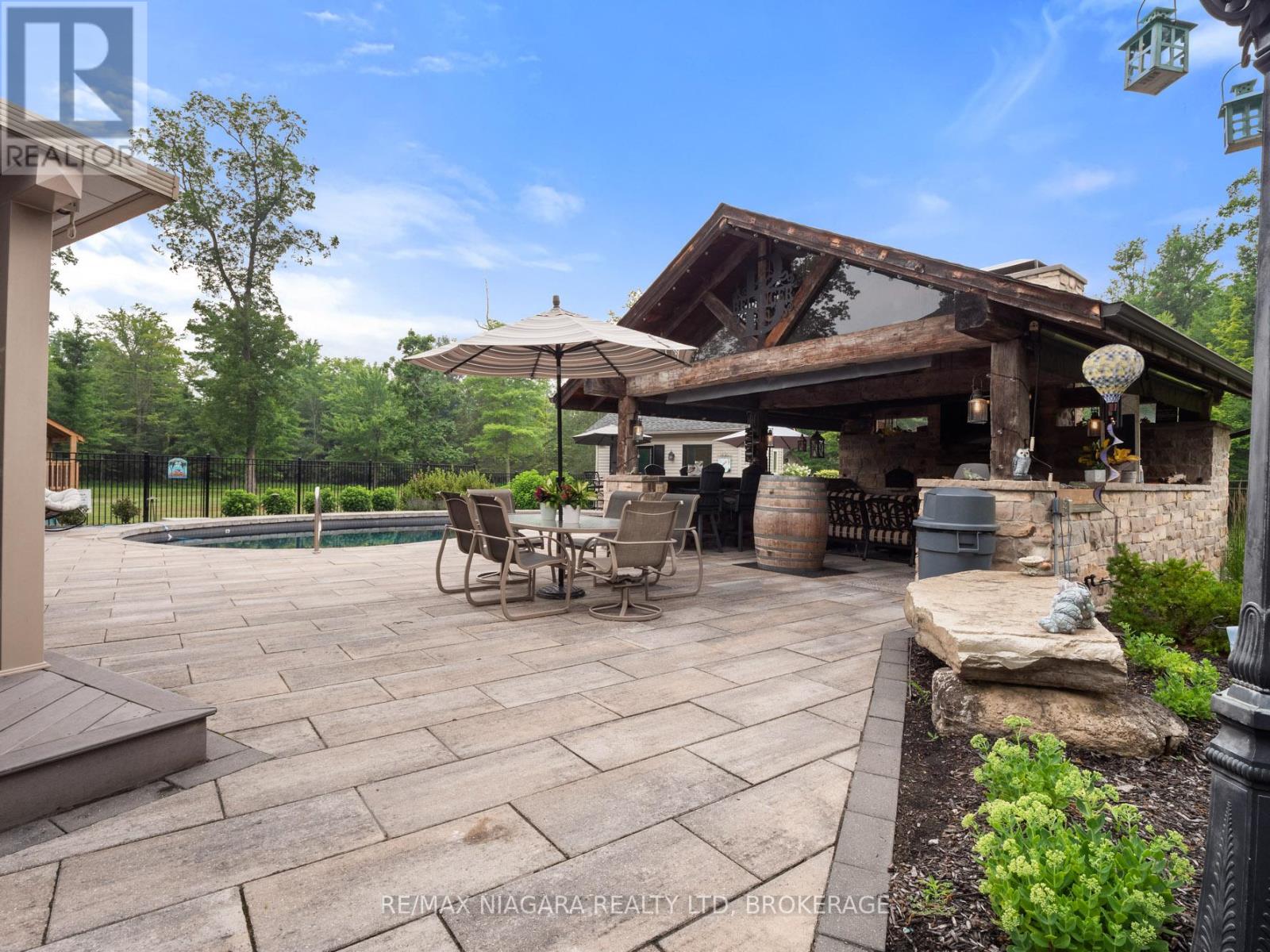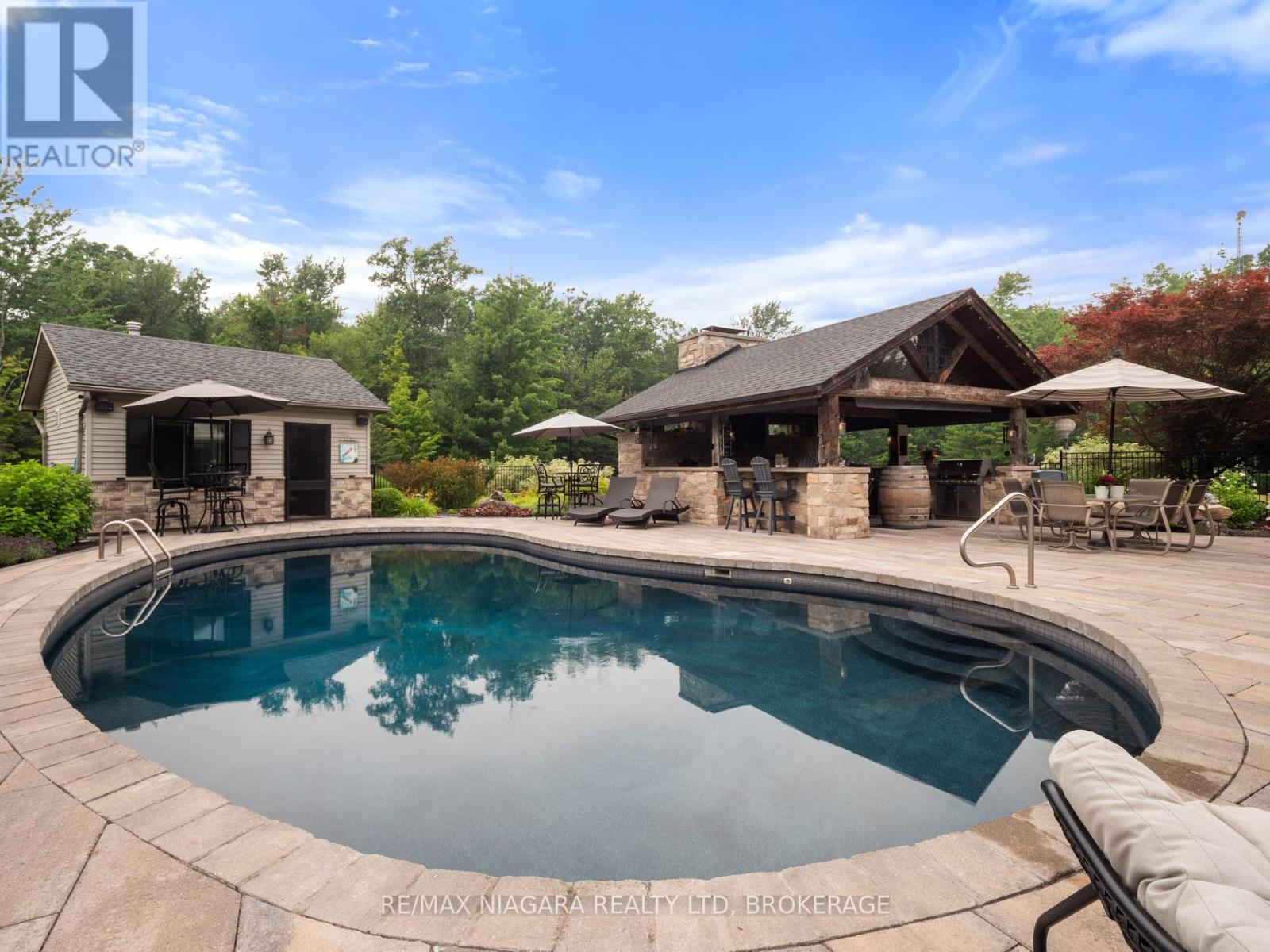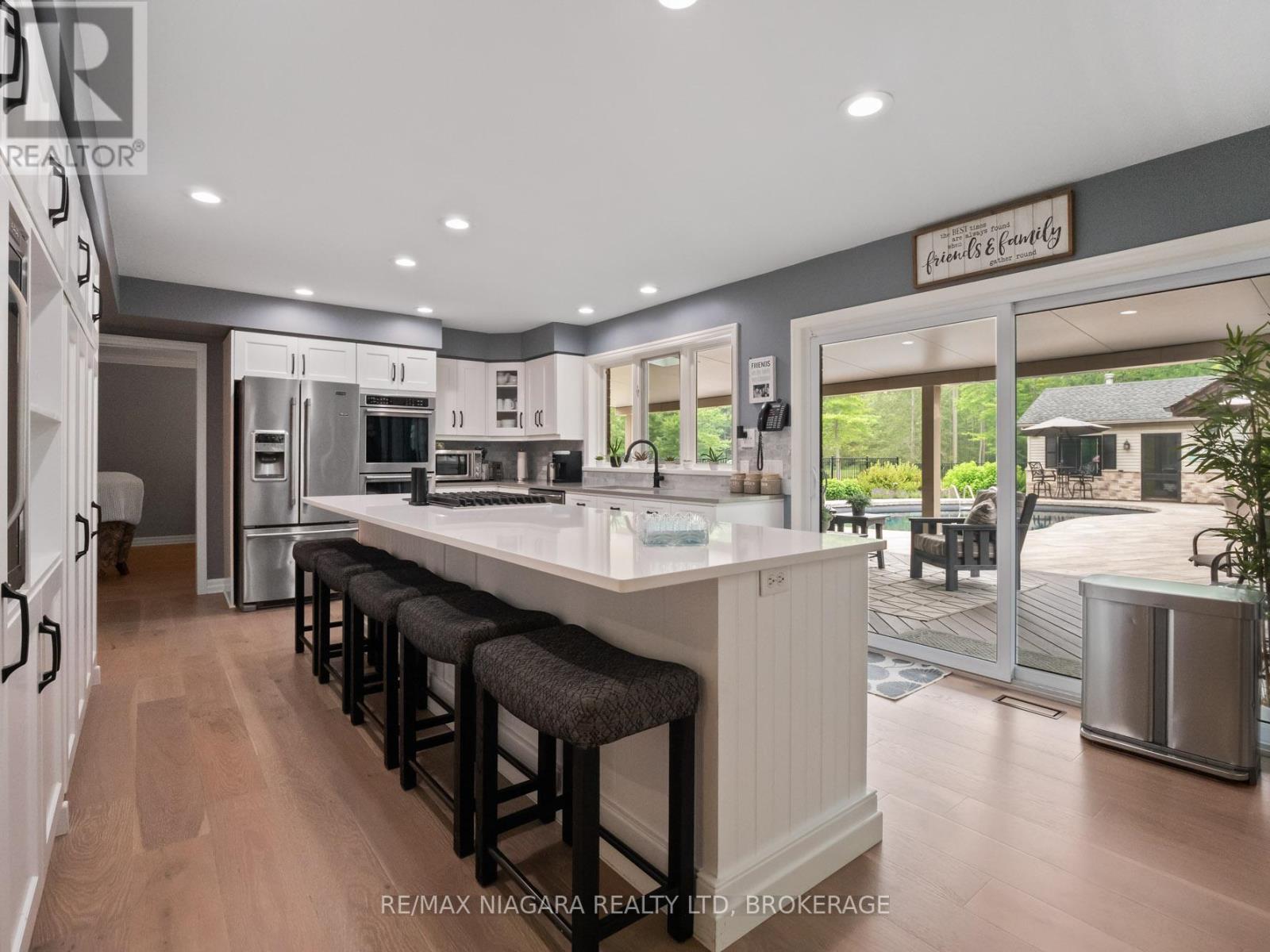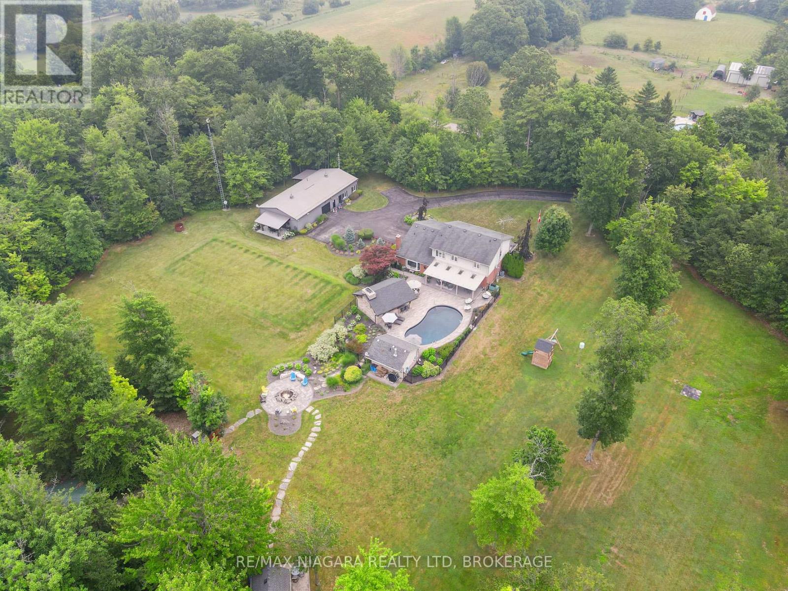 Experience the perfect blend of luxury, functionality, and rural tranquility at this meticulously maintained estate nestled on 10 scenic acres in the heart of Pelham. Located just 10 minutes from the QEW, this remarkable property offers the best of both worlds, peaceful country living with easy access to urban conveniences. The main residence features five spacious bedrooms, an upgraded kitchen with built-in appliances, and a warm, inviting main-floor family room. Engineered hardwood flooring was added in 2024, while custom blinds (2021) provide both style and comfort throughout the main level. A fully finished basement with a wet bar offers ideal space for entertaining or relaxing. Main-floor laundry and a two-car attached garage add to the home's everyday functionality. Step outside to a true outdoor oasis. The large covered front and rear porches provide year-round enjoyment, with the rear porch overlooking a refinished concrete inground pool (2019) featuring a new heater (2024). The pool house includes a convenient bathroom, and the Bose outdoor sound system creates an immersive entertainment experience. A custom gazebo showcases an outdoor kitchen, wood-burning fireplace, and commercial-grade heater, making it fully usable even during winter months. Pull-down patio blinds provide shade and comfort on sunnier days. Families will love the unique outdoor playhouse wired for electricity, TV, and music creating an imaginative retreat for children. A new fence was added around the pool in 2023 to ensure safety and privacy. The detached building is divided into two fully insulated and heated sections: one serves as a spacious workshop, while the other is a beautifully finished one-bedroom guest suite. Completed in 2020, the suite features on-demand hot water, its own furnace and A/C, and upgraded insulation (2024), making it an ideal in-law suite, multi-generational living space, Airbnb rental, or potential satellite office. Luxury Certified. (id:51158)