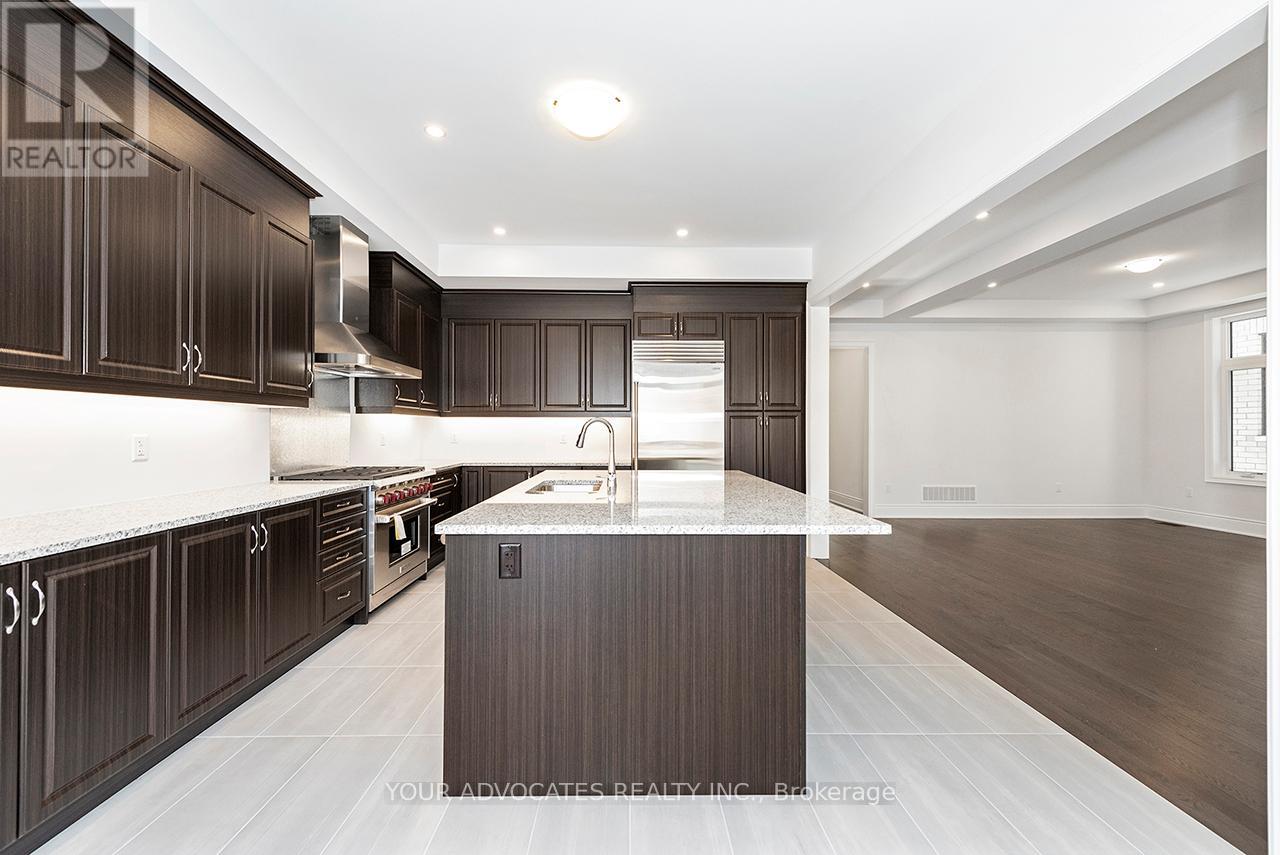 Brand new, never-lived-in detached 2-storey luxury home built by CountryWide Homes, offering approximately 4,272 sq ft of refined living space on a 114' deep lot. This stunning residence features 5 spacious bedrooms, each with its own ensuite, plus a rare main-floor guest suite with private bathroom and walk-in closet-ideal for extended family or multigenerational living. Thoughtfully designed layout includes 10' ceilings on the main floor, smooth ceilings throughout, stained oak staircase, and wide-plank engineered hardwood flooring on main and second levels. Chef-inspired kitchen boasts premium Sub-Zero, Wolf, and Cove appliances, large island, servery, and walk-in pantry. Separate side entrance with staircase to basement, cold cellar, and rough-in for future 4-piece basement bathroom offer excellent potential. Over $100,000 in upgrades and extras included. Tandem garage, 200-amp electrical service, capped gas line for future BBQ, and Tarion New Home Warranty. This home is a MUST see!! (id:51158)