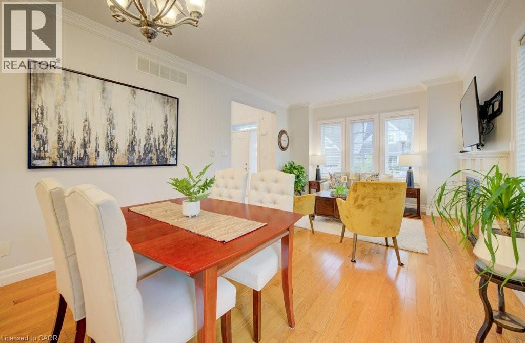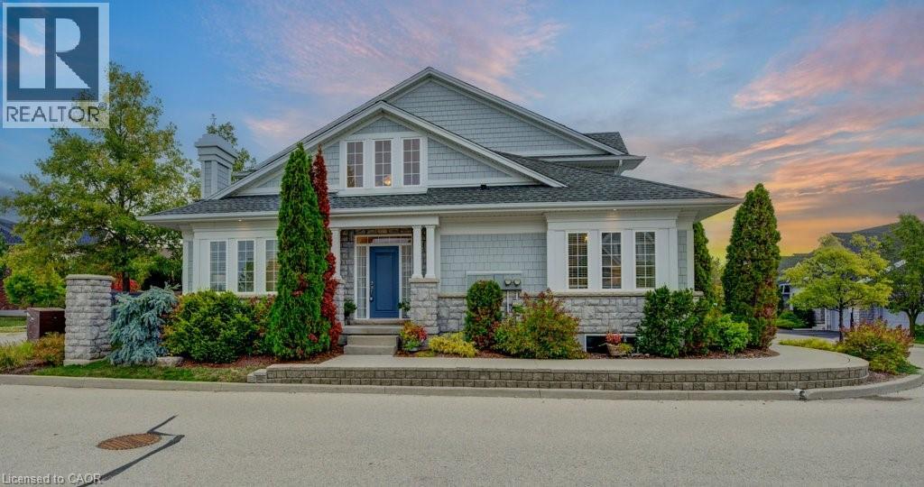 **OPEN HOUSE Sat, Oct 4th, 2-4 pm** Bright and spacious and beautifully finished executive end-unit townhome in The Villas of Grand Chicopee offers refined living with space for the whole family. With stunning stonework, shake and shingle siding, and professional landscaping, the exterior makes a lasting first impression. Step inside to a soaring two-storey foyer filled with natural light, featuring large windows and an elegant oak banister that sets the tone for the rest of the home. The main floor boasts a sunlit, open-concept layout with a welcoming living room complete with oversized windows, hardwood flooring, and a cozy gas fireplace. The adjoining kitchen is both stylish and functional, offering granite countertops, a neutral tiled backsplash, ample cabinetry, a breakfast bar for casual dining, and sliding doors that open to a spacious, private patio—perfect for entertaining or relaxing outdoors. Upscale architectural details, including crown moulding, add character and sophistication throughout. The main-floor primary suite features large windows, a walk-in closet, and a well-appointed 4-piece ensuite with a glass-enclosed shower and a luxurious soaker tub. Additional main floor highlights include a 2-piece powder room and convenient laundry area. Upstairs, two generously sized bedrooms, a full 4-piece bath, and a charming open balcony overlook the foyer, creating a bright and airy upper level. The unspoiled basement, with oversized windows, offers fantastic potential for future living space. A roomy 1 car garage adds convenience and storage. Nestled in a tranquil, natural setting just steps from the scenic Walter Bean Grand River Trail, this home also offers quick access to major routes, making it easy to reach all amenities. A perfect blend of comfort, style, and location—this is executive townhome living at its best. Explore the paths of nature Chicopee has to offer while being minutes from shopping, restaurants and highway access. (id:51158)