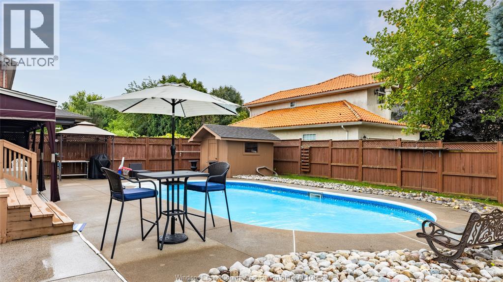 Welcome to this stunning, one owner gem in the heart of LaSalle, located on a quiet street in a highly sought after neighbourhood! Beautiful trails, schools, shopping and restaurants all nearby. This 4+1 bed , 4 bath home has been well loved and is ready for it’s new family. Neutral tones throughout the home, hardwood flooring, beautiful cherry wood kitchen with walk-in chefs kitchen/pantry, living room with gas fireplace, formal dining room, walk-in closet & ensuite with jacuzzi in primary bed. Lower level features an additional kitchen, living area, fruit cellar, electric fireplace and grade entrance, perfect for an in-law suite, large family gatherings, or investment opportunities. Fully fenced & landscaped yard, large shed w/hydro, outdoor kitchenette, in-ground pool & all pool equipment! Updates include roof, furnace, a/c, hot water tank, windows & pool vac. (id:51158)