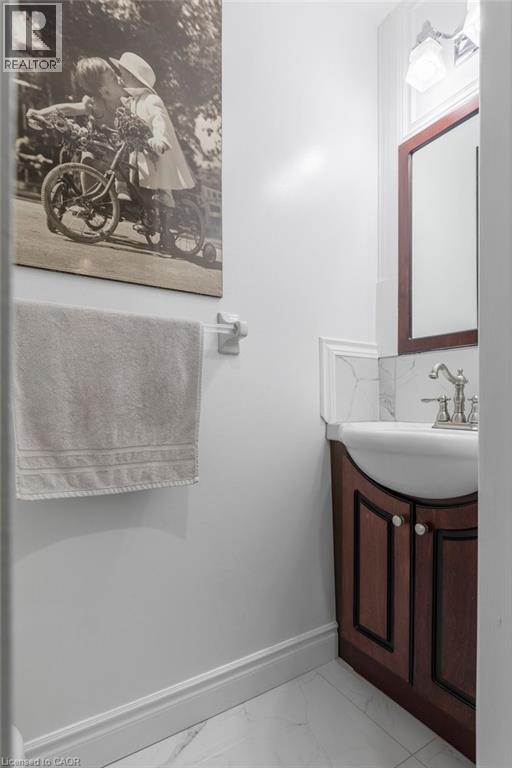 $437.36 MonthlyWOW factor! One of a kind - the only unit with a covered rear deck featuring skylights! Elegantly updated with modern finishes and thoughtful touches. Quiet, compact and dog-friendly Bayberry Village - this unit is located on the interior (not street side). 3 Beds, 2.5 Baths. Offers nearly 2,000 sf finished space! Open Concept Layout! Foyer built-ins great for storage and extra pantry space. Separate dining room or one large living room. Updated kitchen boasts lots of counter and cupboard space including bar counter optimal for seating with pendant lighting & stone accents. Stainless appliances. Gas stove & new microwave/range hood. Electric Fireplace in LR/DR. Garden Doors to private deck. BBQ's allowed. Inside entry to Garage. Powder Room conveniently located between main & lower levels. Finished Rec Room or possible 4th Bedroom. Laundry, Utility with plenty of storage plus under stair storage. Rough-In for 4th bathroom. New porcelain tiles on main. Berber in bedroom level. Oversized primary retreat with cathedral ceiling, 3pc ensuite updated with new vanity and large glass shower plus spacious walk-in closet. 2 secondary bedrooms with large closets and windows. Updated 4pc main bath. New light fixtures. Main hallway kick sweep. Extra storage on landing. Condo replaced Windows 2018, Roof & Garage Door 2025. Many California Shutters. Fees $438/month includes grass cutting, water charges & more! Ample Visitor Parking. Conveniently located minutes to the Redhill & nearby public transit, schools, parks and all amenities. (id:51158)