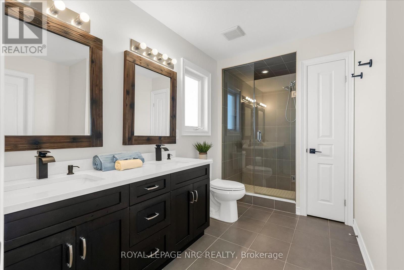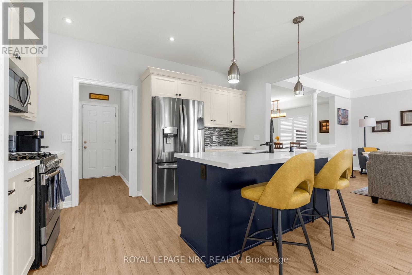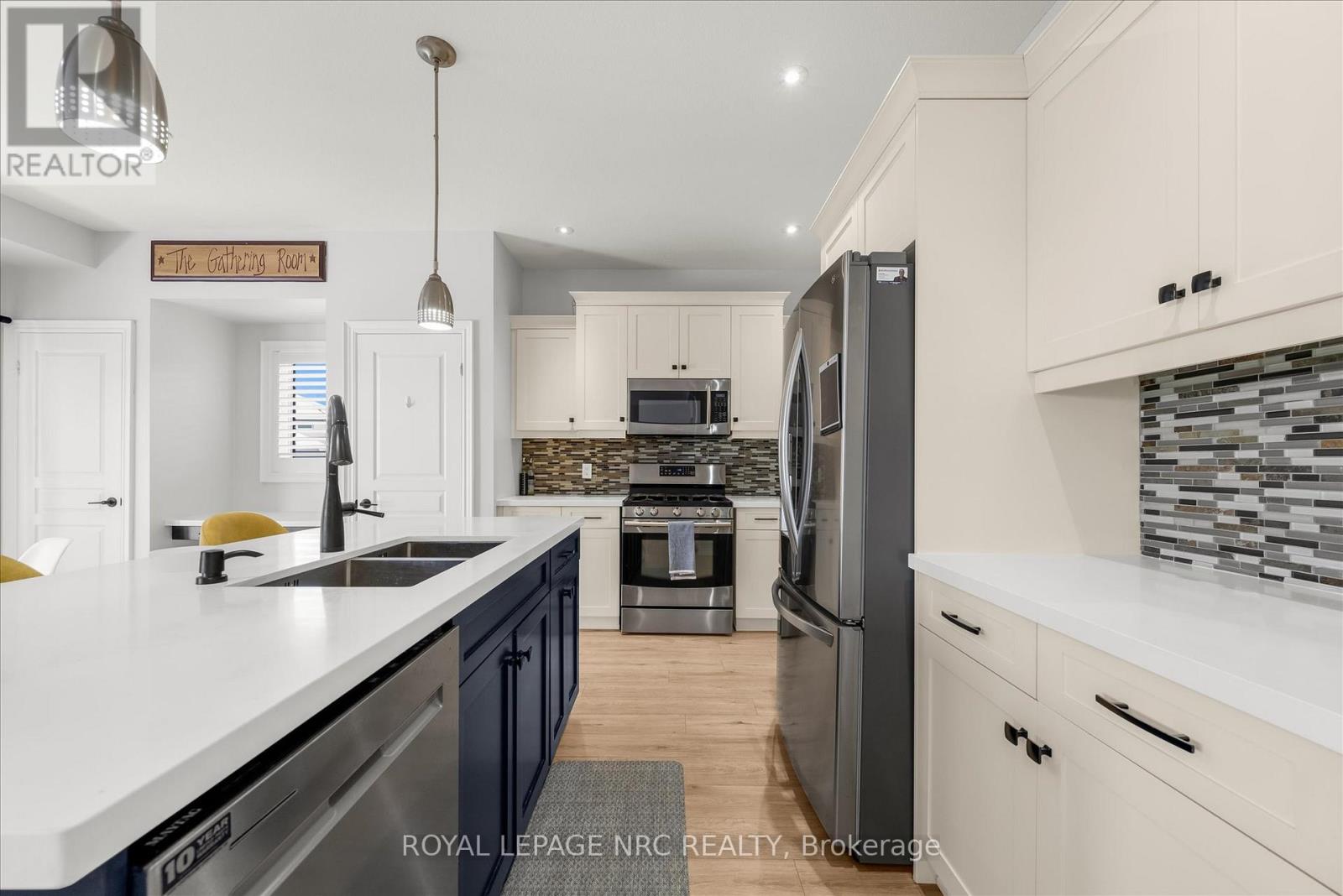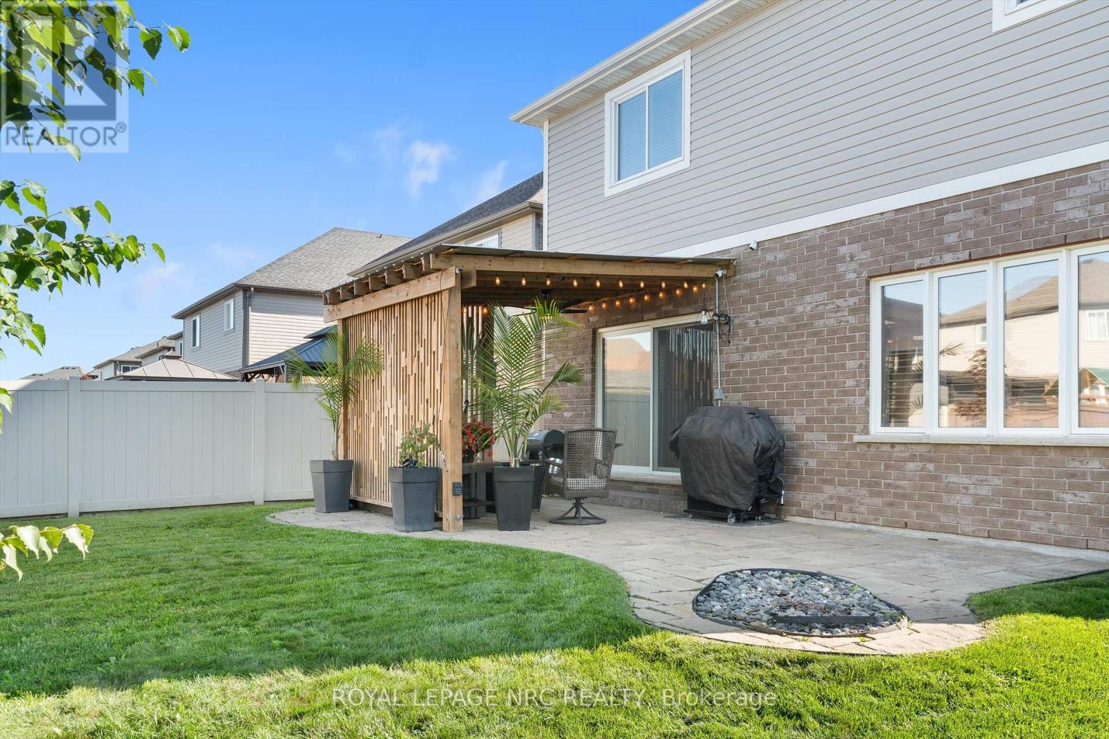 Price improvement! Welcome to Coyle Creek - Welland where space, comfort, and family living come together. This 6-bedroom, 4-bath Energy Star home offers 3,200 sq. ft. of finished living space, including a bright lower level with 2 bedrooms, full bath, and recreation room ideal for in-laws, teens, or extended family. The open-concept main floor features quartz counters, abundant cabinetry (icluding two pantries), and a family-sized dining area. Upstairs you will find the loft, 4 generous bedrooms and a private primary suite, and laundry. Step outside to a landscaped yard with stone patio, covered gazebo, and outdoor fan perfect for summer evenings. Set on a quiet crescent near trails and golf, this is unbeatable value in a desirable Welland neighbourhood. Best 6-bedroom value in Coyle Creek now under $800k (id:51158)