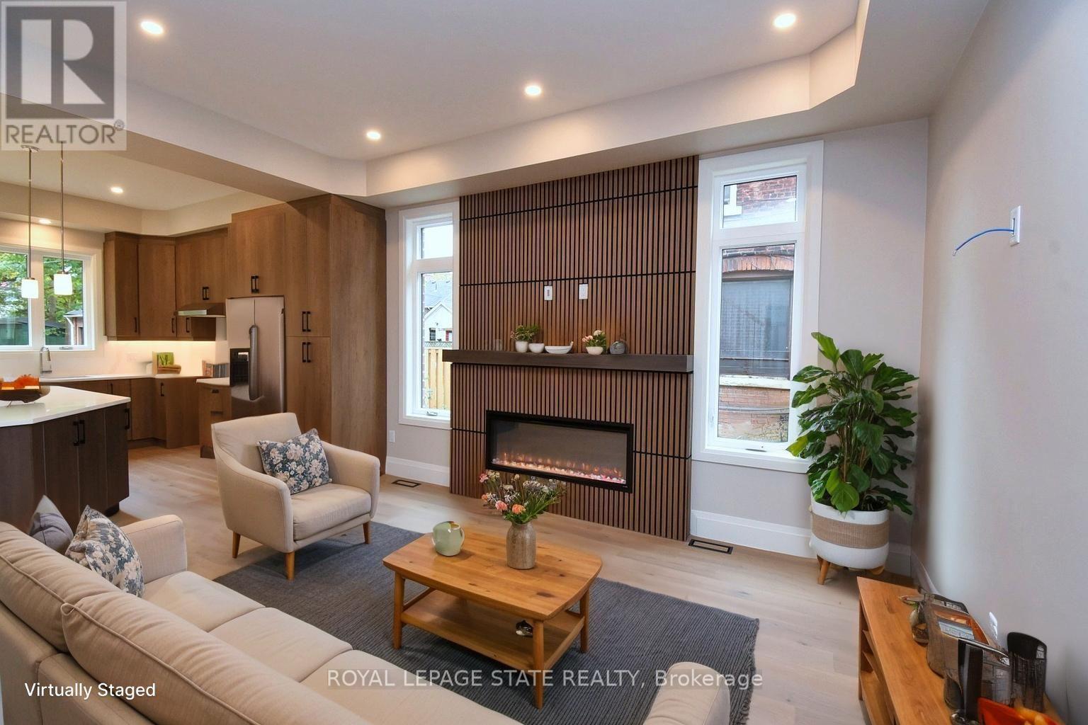 Look at me now! I am finished! This is a gorgeous hidden gem! A quality brand-new build 2-1/2 storey home with all of the wants and must haves, in the ever-popular South-West Hamilton, south of Herkimer near Markland, very spacious home,10 foot main floor ceiling height, pot lights, approximately 2870 square feet above grade, gorgeous kitchen with island, walk-in butler pantry with sink, appliances, dining room with sliding doors to yard, family room with fireplace, open concept design, work from home in your bright private main floor study/office/den, 3-1/2 bathrooms, second floor laundry, can be 3 bedrooms with a bright lofty top floor, "Top Shelf" studio space, or a 4 bedroom home with 2 ensuite bathrooms & walk-in closets, designed &built, this home was created with family in mind, multi-generational living at its best, top to bottom elevator, separate entrance to the lowest level, roughed in bathroom, central air conditioning, oversize garage, 200 amp electrical service and more, a fabulous location near parks, schools and the hospital. All measurements and dimensions are approximate only, plans and room dimensions may vary, taxes have not been set, taxes based upon older previous assessment value, taxes & assessment value are subject to change. Buyer incentive package available. Please see our virtual tour & the pictures of this truly wonderful home! (id:51158)