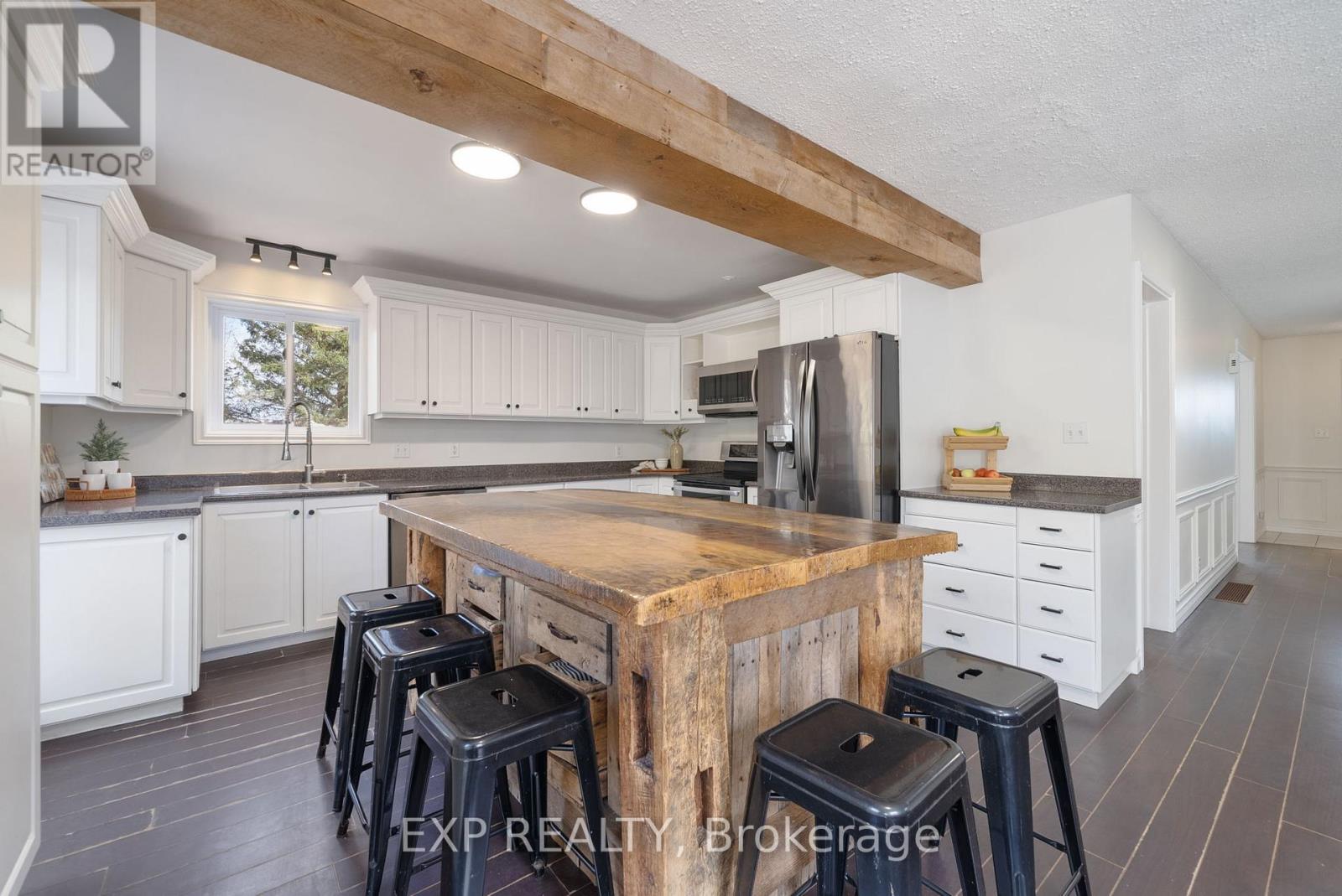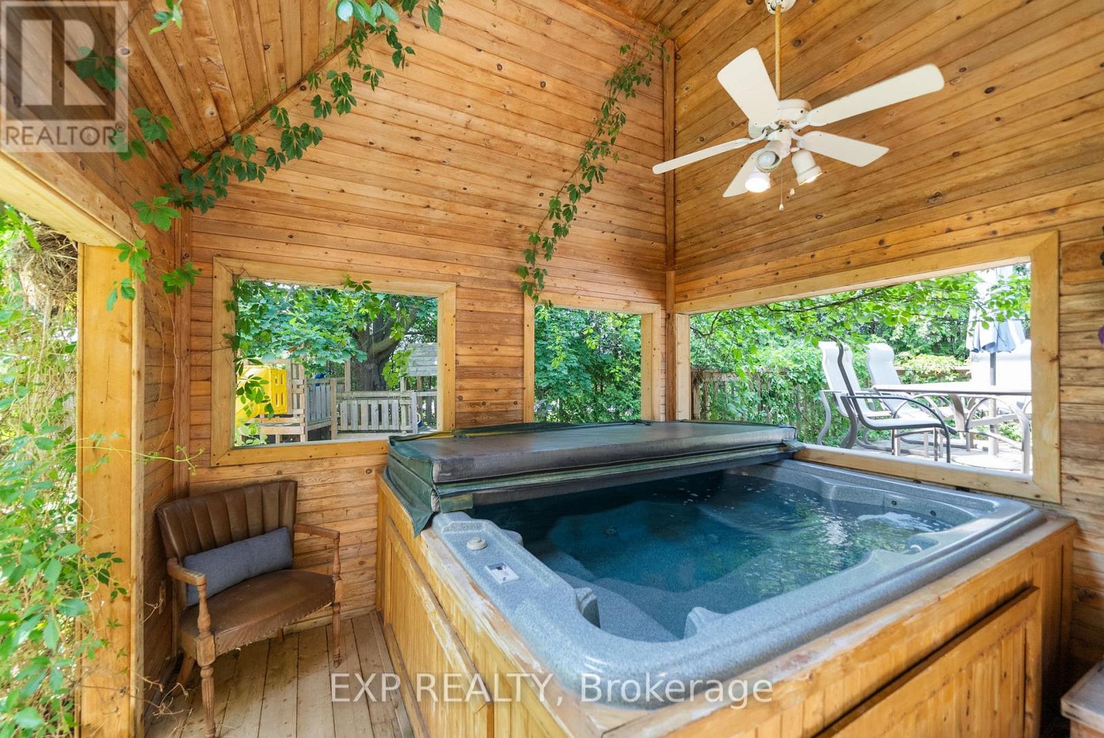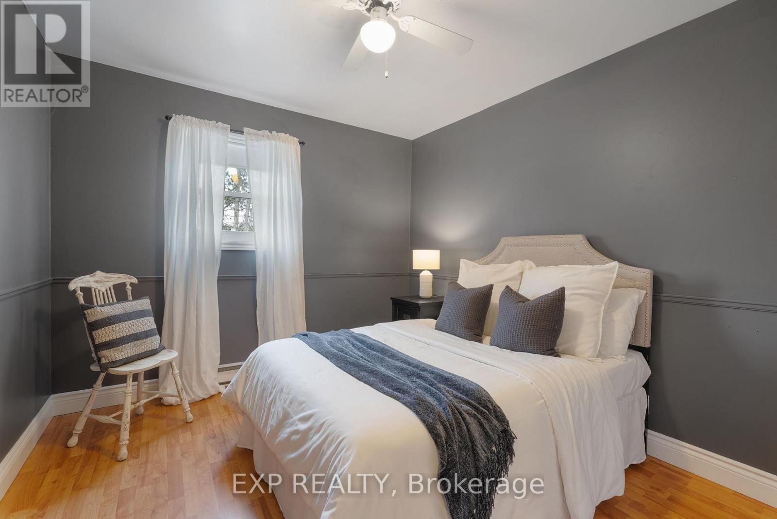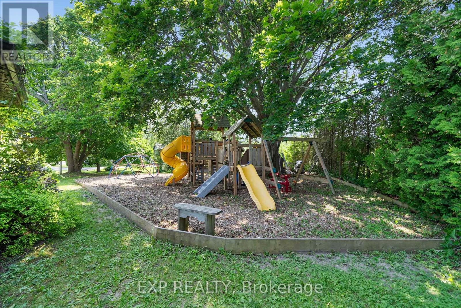 This warm and welcoming 3+1 bedroom, 2 bathroom home is full of character and ideal for family living. Featuring a lofted ceiling in the living room, a kitchen with freshly painted cabinets, reclaimed wood island, and built-in seating, plus a large formal dining room perfect for entertaining. Upstairs, you'll find three bedrooms and a Jack & Jill ensuite, while the finished basement adds a rec room and additional bedroom perfect for guests or a home office. Set on a large corner lot at the end of a quiet cul-de-sac, this property is an outdoor lovers dream, complete with a deck overlooking an above-ground pool, new roof (2025), hot tub gazebo, kids play structure, fire pit, backyard orchard and even a chicken coop! With ample driveway parking and main floor laundry, this home blends function, charm, and fun. (id:51158)