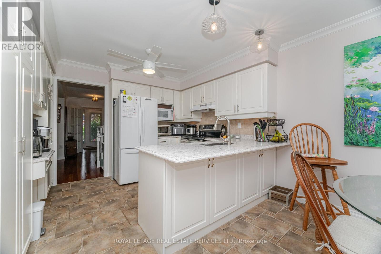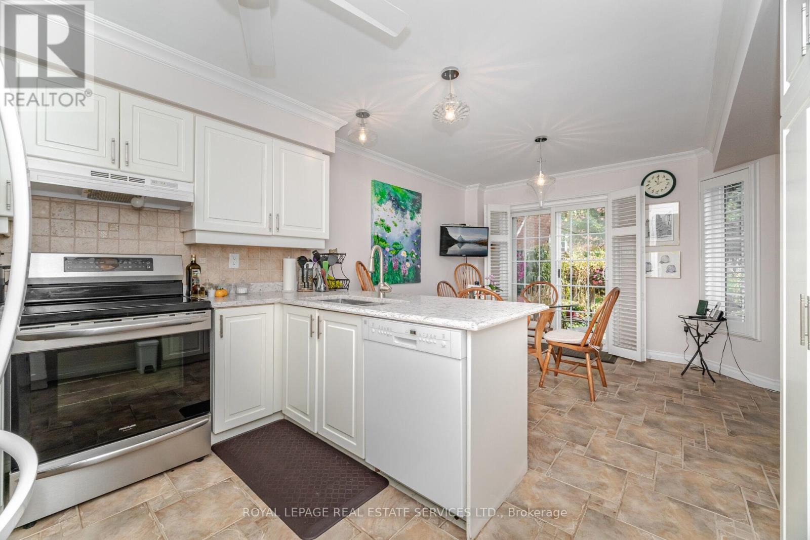 $668 MonthlySet in the coveted Millcroft community and surrounded by the manicured fairways of the renowned Millcroft Golf Club, this executive townhome blends elegance, comfort, and everyday convenience. Walk to the golf course, or enjoy being just minutes from shopping, dining, and major highways making this one of Burlington's most desirable locations. Inside, the inviting living room is anchored by a cozy gas fireplace and flows effortlessly into the formal dining area perfect for entertaining or relaxed family gatherings. The spacious eat-in kitchen is highlighted by quartz countertops, updated cabinetry, and plenty of natural light. Additional features include gleaming hardwood floors, timeless California shutters, and a beautifully finished basement that extends your living space. The home also offers two fully updated bathrooms (2018), showcasing sleek quartz finishes and modern cabinetry. With its perfect balance of style, function, and location, this Millcroft townhome presents a rare opportunity to enjoy luxury living in one of Burlington's most prestigious enclaves. (id:51158)