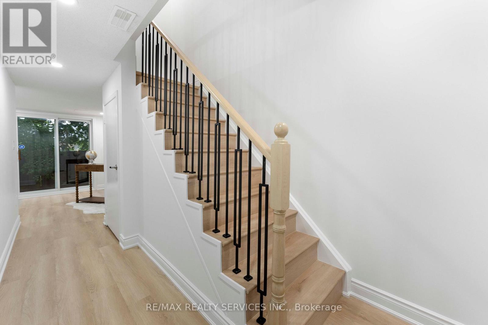 Stunning End Unit Condo Townhouse in a Prime Mississauga Location! This beautifully maintained 3-bdroom, 3-bthroom home offers the feel of a semi-detached in one of Mississauga's most prestigious and family-friendly neighbourhood's. Featuring a bright, open-concept layout and a finished walk-out basement, this home is perfect for family living. Enjoy the peace of having no rear neighbour's and a backyard view. The walkout basement provides flexible space ideal for a home office, recreation room, or even a fourth bedroom. Low condo fees make ownership even more appealing. Located just minutes from top-rated schools, parks, Square One Mall, Frank McKechnie Community Centre & the MiWay terminal. Additional access through Hurontario Street and proximity to the new LRT line and Pearson Airport ensure seamless connectivity. With a kids play area just steps from your door and Huron Park within walking distance, this home truly offers the perfect balance of comfort, convenience and community (id:51158)