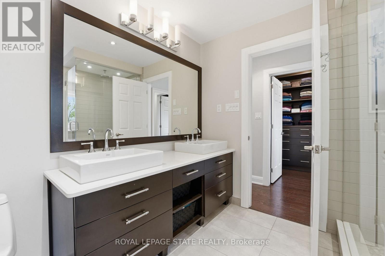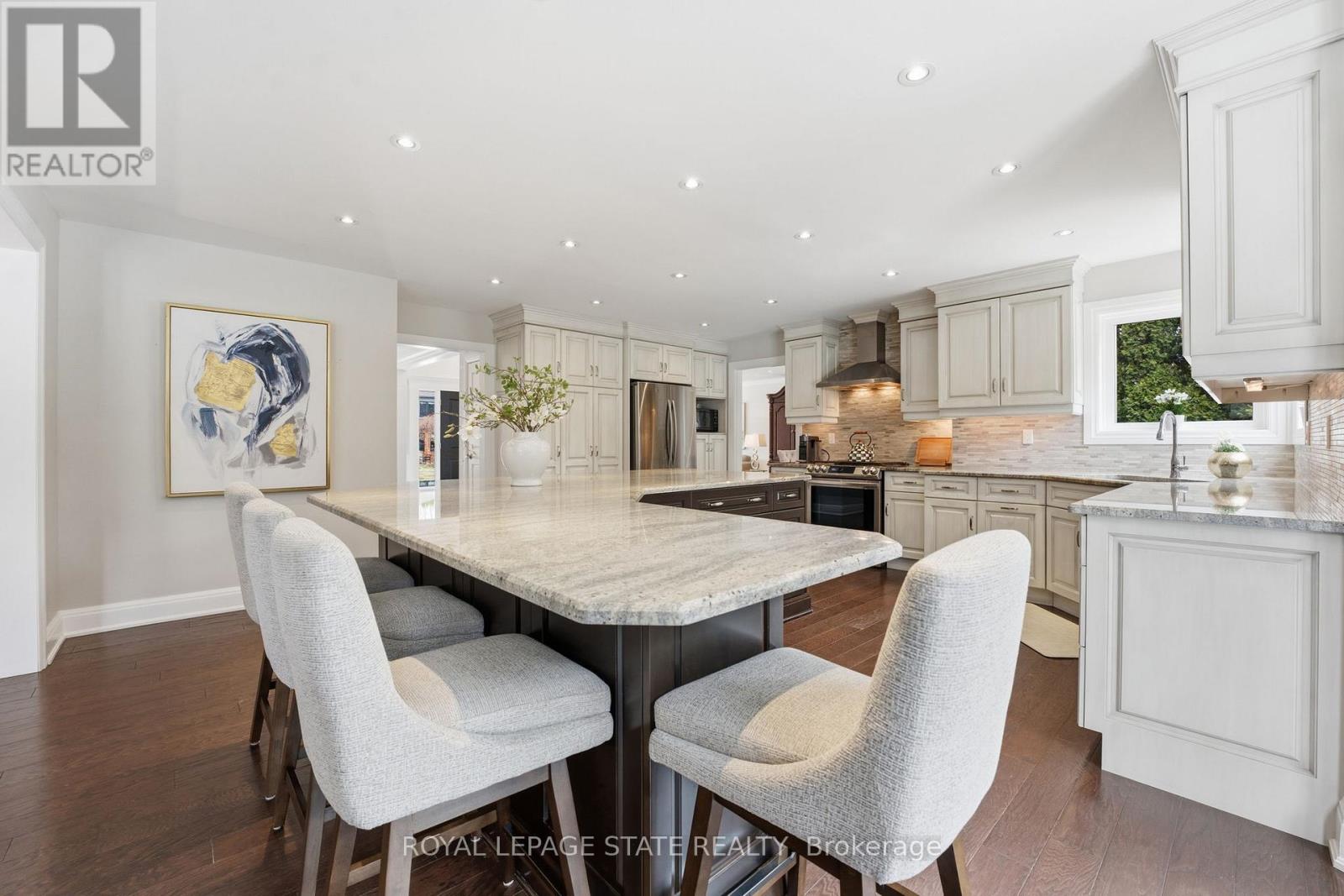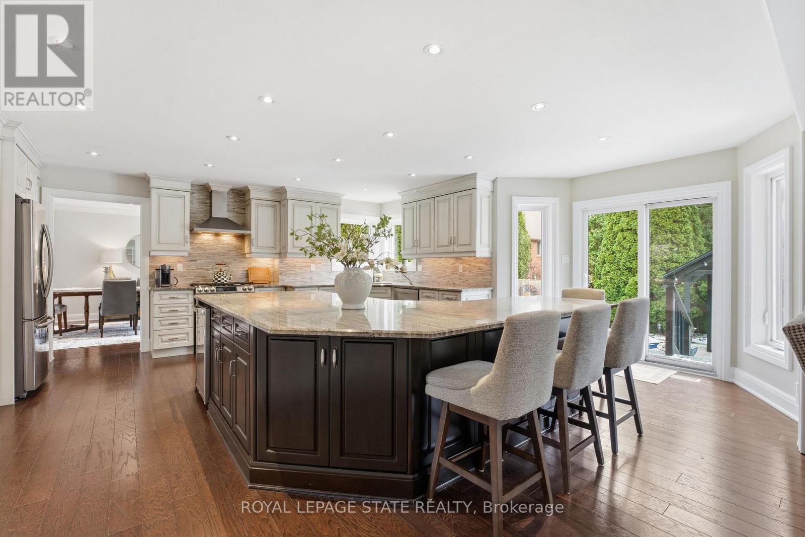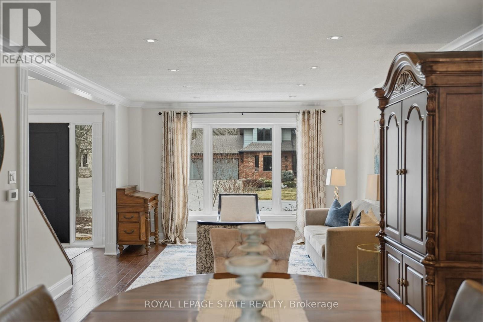 Experience refined living in this exquisite 3+1 bedroom home in highly sought after Deerview Estates. This stunning executive home features a bright and spacious main floor offering space for the whole family. Step into a gracious foyer which opens to an oversized living/ dining room combination and office area. A fabulous gourmet kitchen offers a super sized island, custom cabinetry, granite counter tops and decorative mouldings and pot lights. Patio doors open to a beautifully landscaped backyard with a salt water pool, cabana and patio area perfect for lounging and entertaining in style. The main level also features a full mud/ laundry room with convenient side door access. The second level offers 3 bedrooms, a beautiful primary retreat with a custom walk-in closet and a spa-like 5+ pc. ensuite with a stand alone tub and separate shower. The second bedroom also offers ensuite priviledges. Enjoy a fully finished basement with a 4th bedroom, large recreation room with a cozy wood stove and 3 pc. Bathroom and ample storage space. Updates and features include fresh paint (2025), windows & exterior doors (2019), Roof shingles ( 2017) Owned water heater (2024), Furnace/ Ac/ Humidifier (2021), professional landscaping (2021), pool liner (2021). Located in the sought after Oakhill area just steps to scenic hiking trails in the Dundas Valley, parks, Ancaster Village shops, restaurants and easy highway access. Nothing to do but move in and enjoy (id:51158)