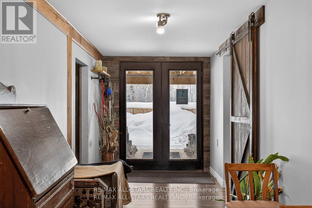 Welcome to this one-of-a-kind post-and-beam home, rich in character and warmth, set on approximately of an acre in a welcoming, family-oriented community near Shadow Lake. From the moment you arrive, wrap-around decks and mature surroundings set the tone for relaxed country living. Inside, soaring vaulted ceilings, exposed beams, and a stunning open-concept layout create an inviting space perfect for everyday living and entertaining. The main level offers 2 well-sized bedrooms, while the full walk-out basement features a bright family room, an additional bedroom, laundry area, and a versatile space currently used as a hair salon - ideal for a home-based business, studio, or hobby room. With a separate basement entrance, the lower level offers excellent potential to accommodate multigenerational living or extended family needs. Outdoors, the property truly shines with bountiful summer gardens, a peaceful pond, and a charming bunkie perfect for guests, teens, or creative space. Located just steps to Shadow Lake with access to a public beach and playground, and with a boat launch just up the street, this home offers a lake lifestyle without waterfront taxes. Conveniently situated minutes to Coboconk for shopping and amenities, approximately 35 minutes to Lindsay, and 40 minutes to Orillia - this is a rare opportunity to enjoy space, flexibility, and the best of Kawartha living. (id:51158)