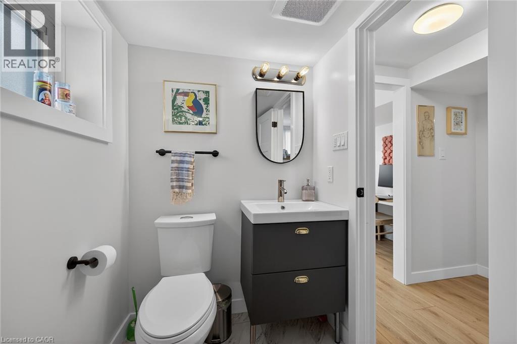 Beautiful and funky all wrapped up in this 3+1 bedroom, 2 bath, 4-level backsplit in the desired Inch Park neighbourhood. Just over 1700sqft of finished living space. Updated kitchen with butcher block counters, subway tile backsplash, open to the breakfast nook. Large, bright living room with gorgeous hardwood floors. Upstairs are 3 good sized bedrooms with hardwood floors and a retro bathroom in immaculate shape. The lower level was completely renovated. The extra bedroom is currently being used as an office with built-ins, sink and an extra stove. The 3-piece washroom was updated and the family room was remodeled as well. The family room has large, above grade windows, pot lights & also includes a walk-up to the single car garage and a separate exit to the yard. The lowest level of the home provides storage room, space for gym equipment and laundry. Outside is a lovely backyard with perennial gardens, cedar hedges, large shed on concrete pad and patio area for summer entertaining. A double car driveway is a rare find in this neighbourhood. Convenient location-walking distance to Inch Park arena, outdoor pool & playground. Also walking distance to Bruce Park, both ideal for young families. A quick commute to downtown via the Jolley Cut and close to many shops & restaurants along Concession St. View today! (id:51158)