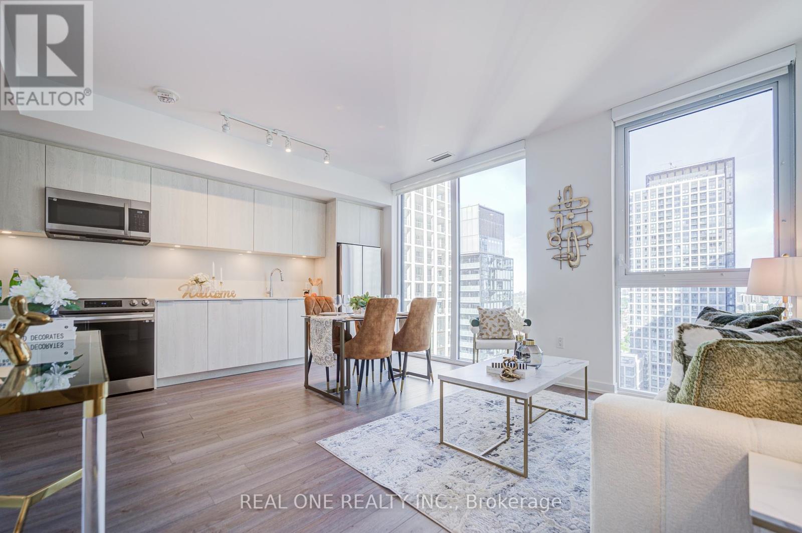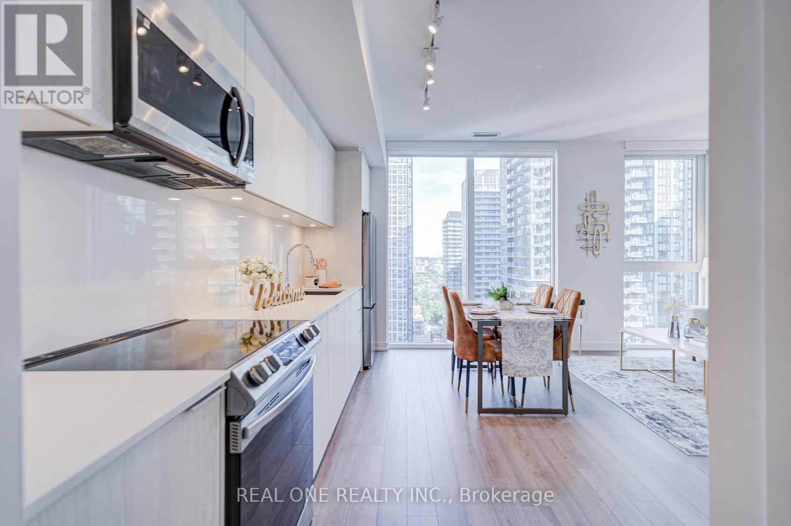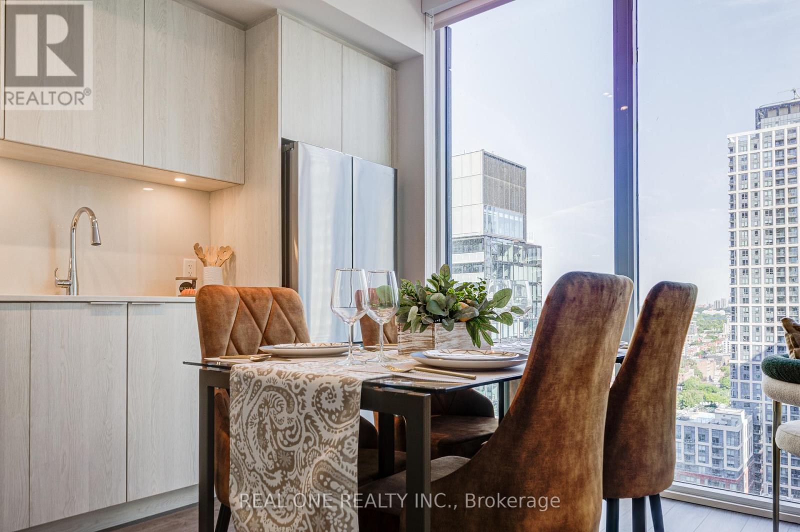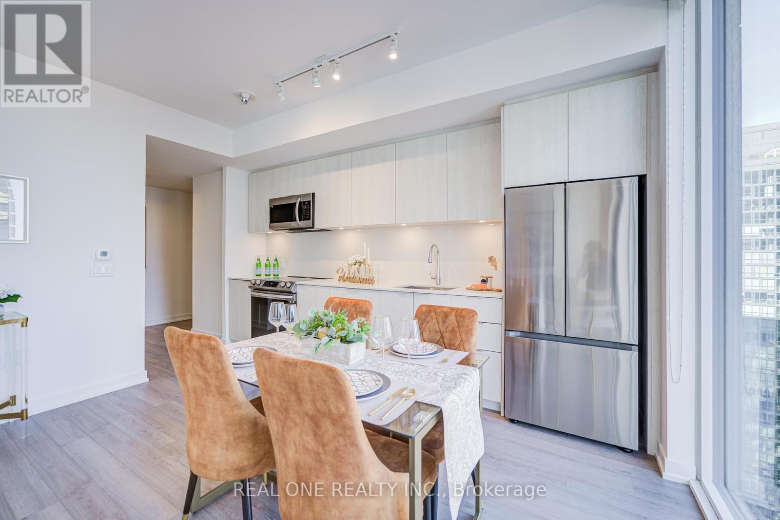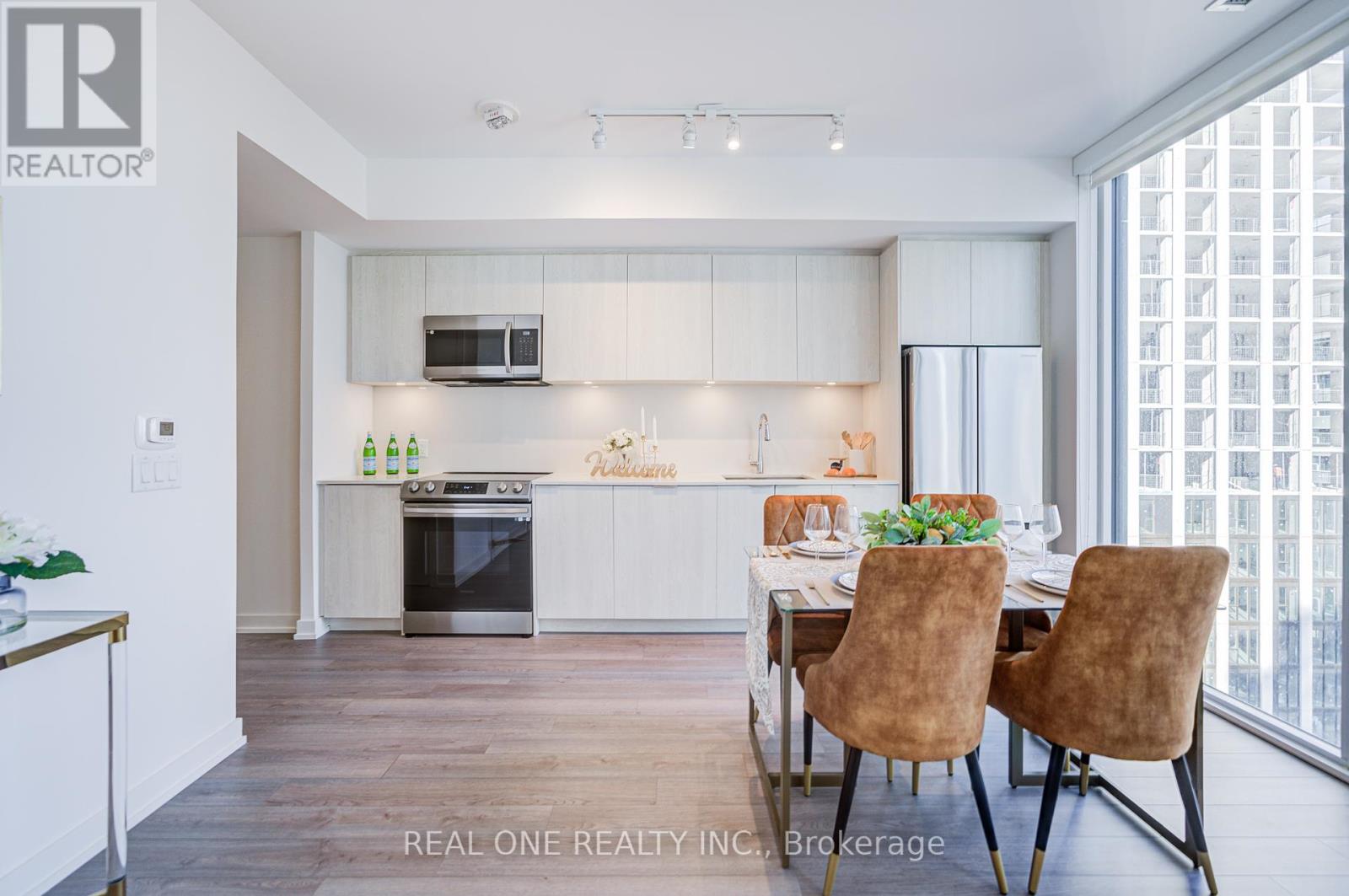 $562 Monthly2 Years Old Luxury 2B2B Condo: The suite features 9-foot ceilings, floor-to-ceilingwindows, and an open-concept layout. The living and dining areas are spacious, and the kitchen is equipped withstainless steel appliances, quartz countertops, and ample cabinet space. Extremely convenient transportation with easy access to the Financial District,the University of Toronto, and the CN Tower. Light-filled 3rd floor with a state-of-the-art fitness centre and relaxing yoga studio. Unique amenities include bike lockers, parcel pick-up service, meeting rooms,and communal workspaces. 42nd floor features stylish lounges for socializing and private dining room with afully equipped catering kitchen. Indoor and outdoor spaces ideal for both formaldinners and casual gatherings. (id:51158)