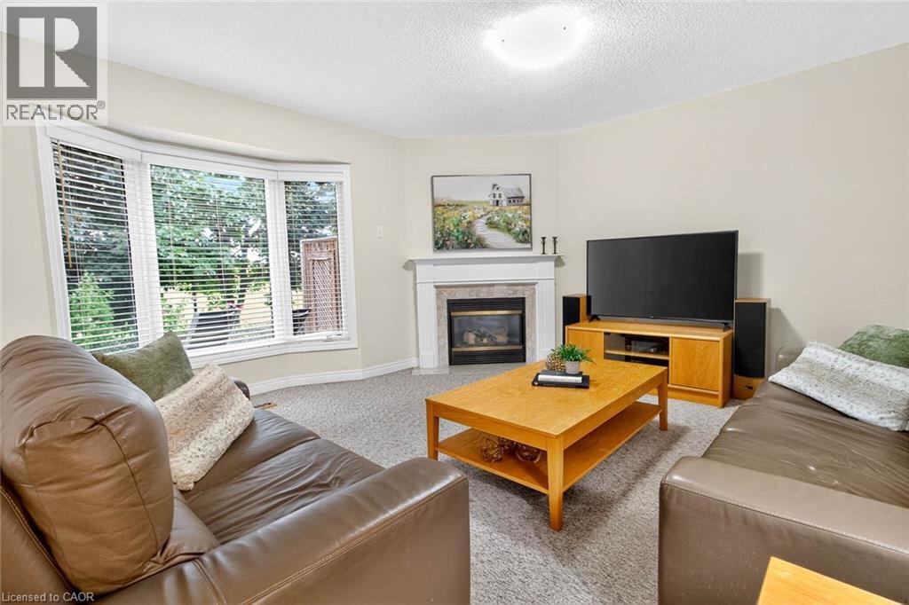 A True Gem! Nestled in sought after Drury Park, backing onto greenspace, this bright and spacious 2-bedroom bungaloft boasts an open-concept design. The lovely kitchen, complete with a backsplash and center island, overlooks the inviting dining and living areas. The open-concept living and dining room features a cozy gas fireplace and walk-out to a private backyard oasis, perfect for relaxation, while the charming front porch offers a welcoming retreat. The generous primary bedroom includes a 3-piece ensuite and his-and-her closets. Plus a versatile loft with a 4-piece bathroom and additional his-and-her closets overlooks the picturesque backyard. The finished basement offers a recreation room, den, and a 4-piece bathroom, plus ample storage with a large cold room. Beautifully landscaped front and back, this home is close to shopping, hospitals, parks, and all essential amenities. Located in a coveted enclave of bungalows, this property is a rare find in a prestigious adult lifestyle community. A must-see! (id:51158)