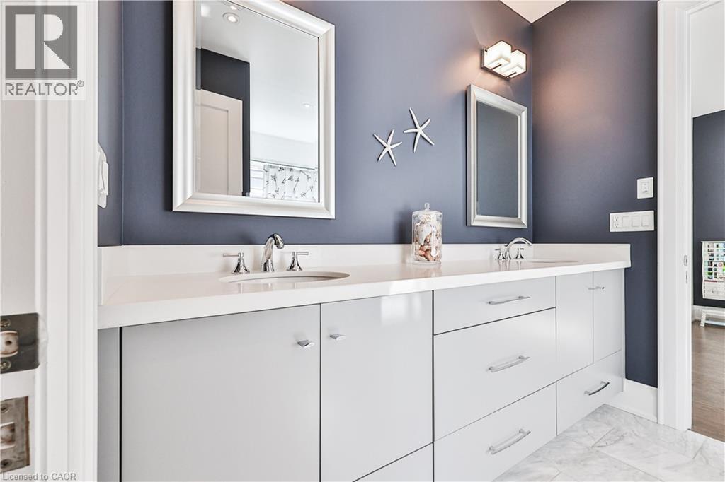 Experience refined luxury in this exceptional executive residence, perfectly positioned in the heart of downtown Bronte. Thoughtfully designed for the modern, discerning homeowner, this two-storey home seamlessly blends contemporary style with timeless elegance, all just steps from the lake, charming boutiques, and premier amenities. The sun-filled main level features an expansive open-concept layout, ideal for both everyday living and sophisticated entertaining. Gracious living and dining spaces are complemented by a stunning chef-inspired kitchen equipped with premium Miele built-in appliances, sleek quartz countertops, and bespoke cabinetry—perfect for culinary enthusiasts. A private home office or study offers a quiet retreat for work, reading, or relaxation. Upstairs, the second level unfolds into a tranquil private haven. The primary suite is a true showstopper, boasting dual spa-like ensuites and generous walk-in closets designed with both comfort and function in mind. Three additional spacious bedrooms, each complete with its own beautifully appointed ensuite, provide exceptional privacy and comfort for family and guests alike. The fully finished lower level extends the living space with a versatile recreation room ideal for entertaining, a dedicated gym area, an additional family room, guest bedroom, and full washroom—perfect for hosting visitors or multi-generational living. Step outside to a covered terrace featuring a cozy gas fireplace, creating an inviting setting for year-round outdoor entertaining. The professionally landscaped backyard offers a private, fully fenced oasis with lush greenery and refined hardscaping, providing both serenity and peace of mind. This remarkable home offers a rare opportunity to enjoy sophisticated, modern living in one of Bronte’s most coveted locations—where every detail has been meticulously curated for comfort, style, and effortless luxury. (id:51158)